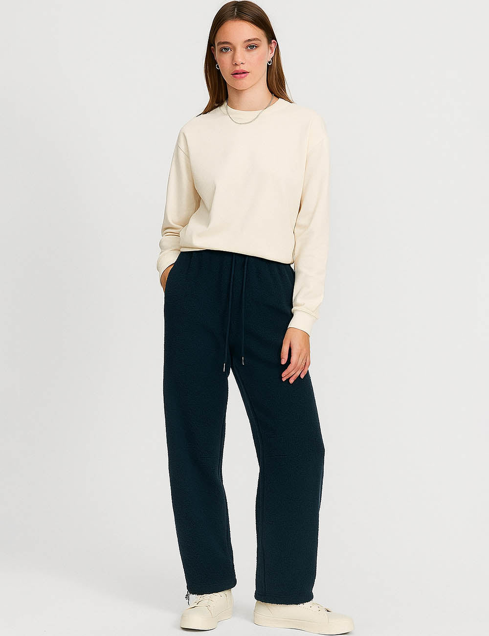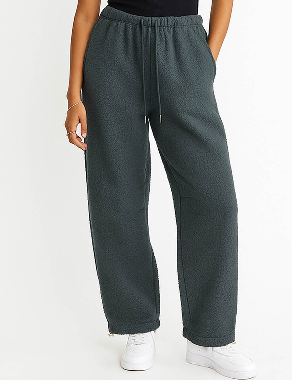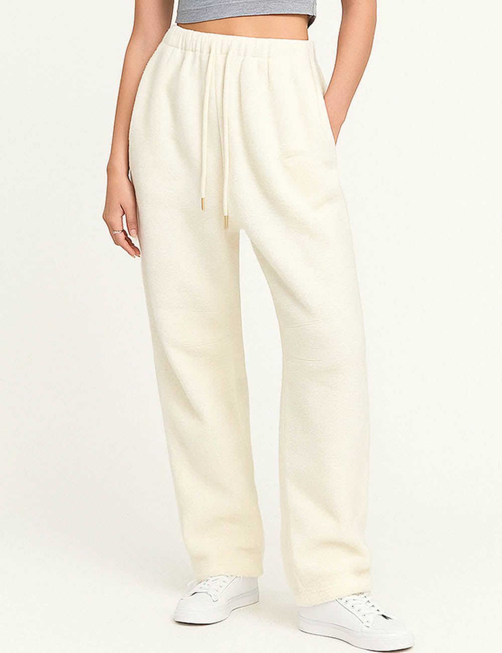 Ladies Fleece Elastic Waist Drawstring Hem Pants