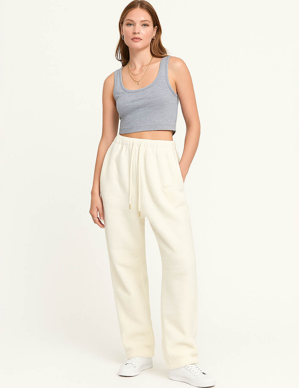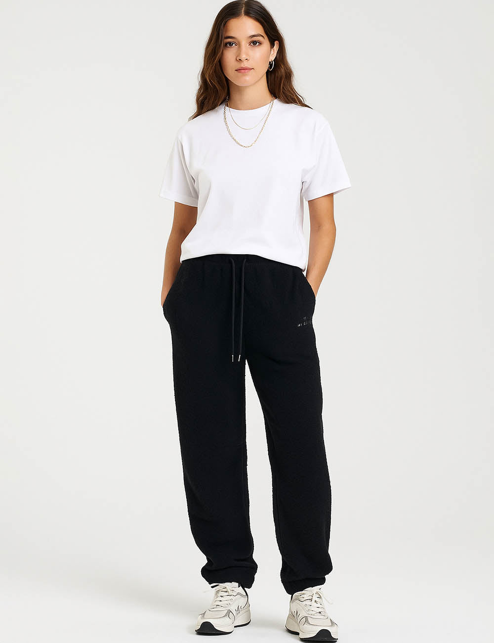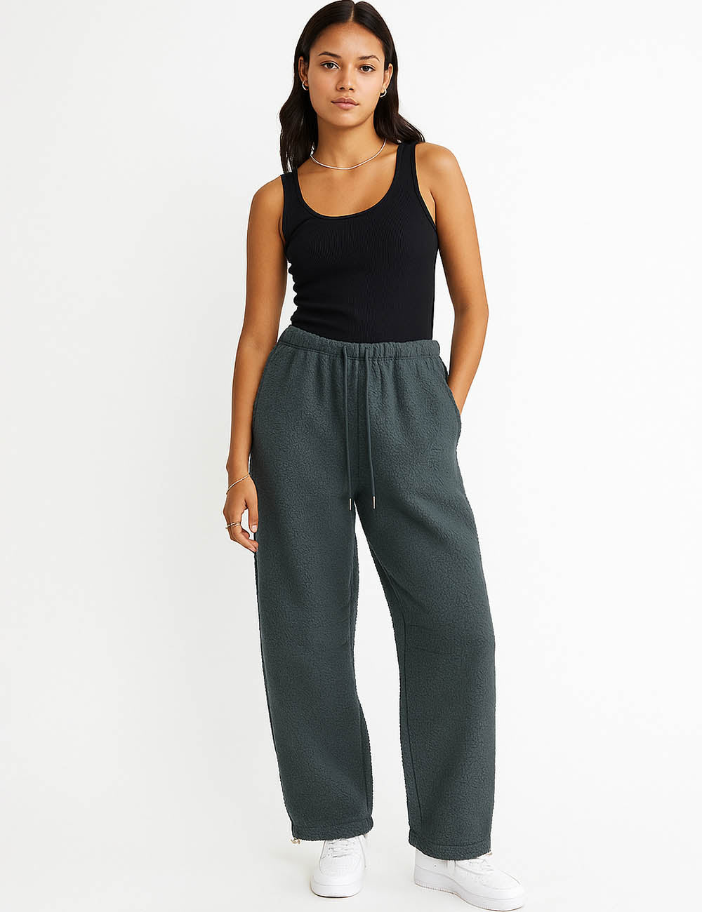 Ladies Fleece Elastic Waist Drawstring Hem Pants
