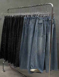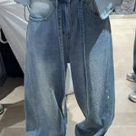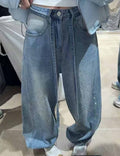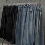 Ladies Fleece Lined Rhinestone Wide Leg Denim Pants