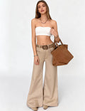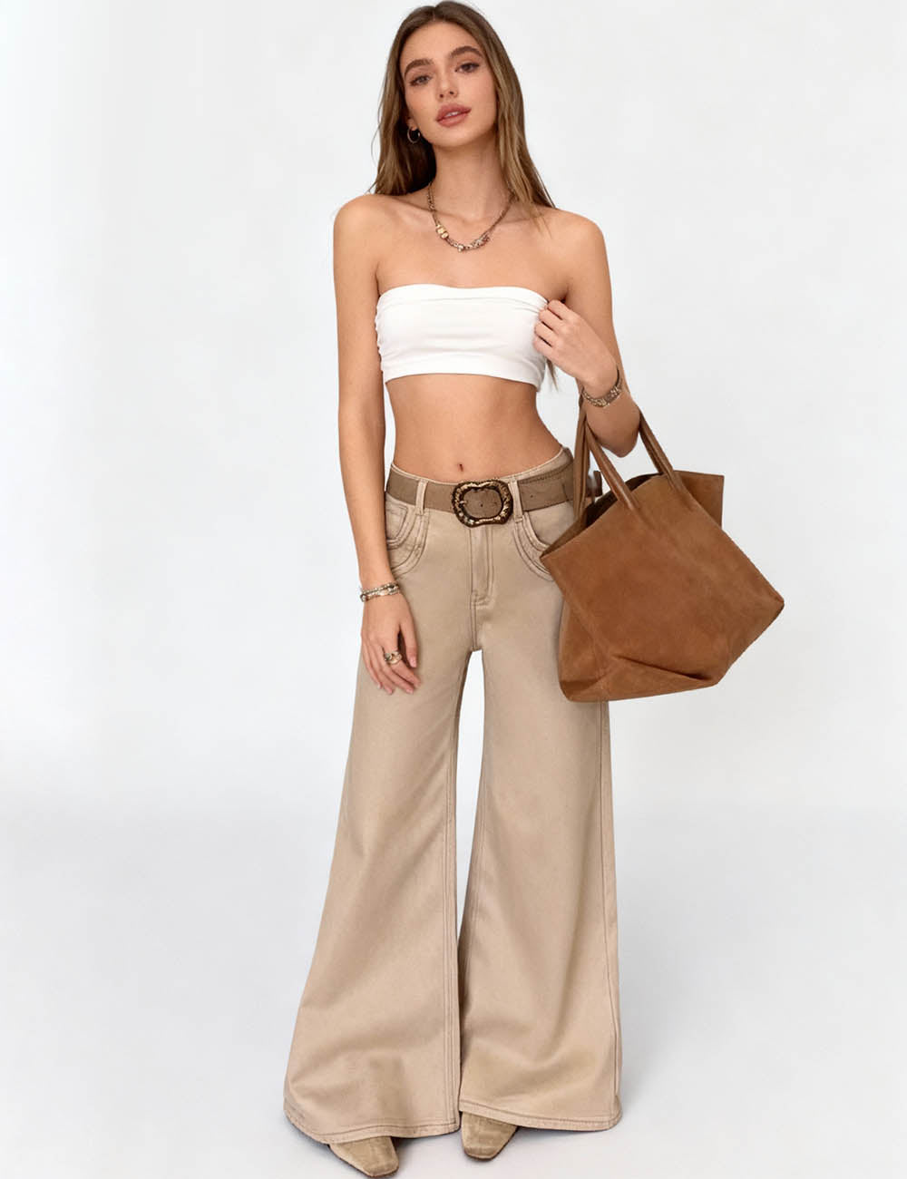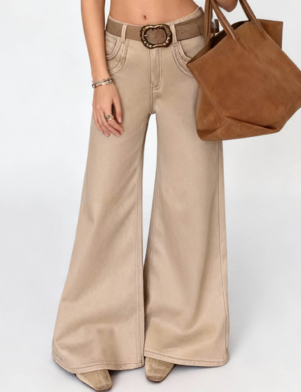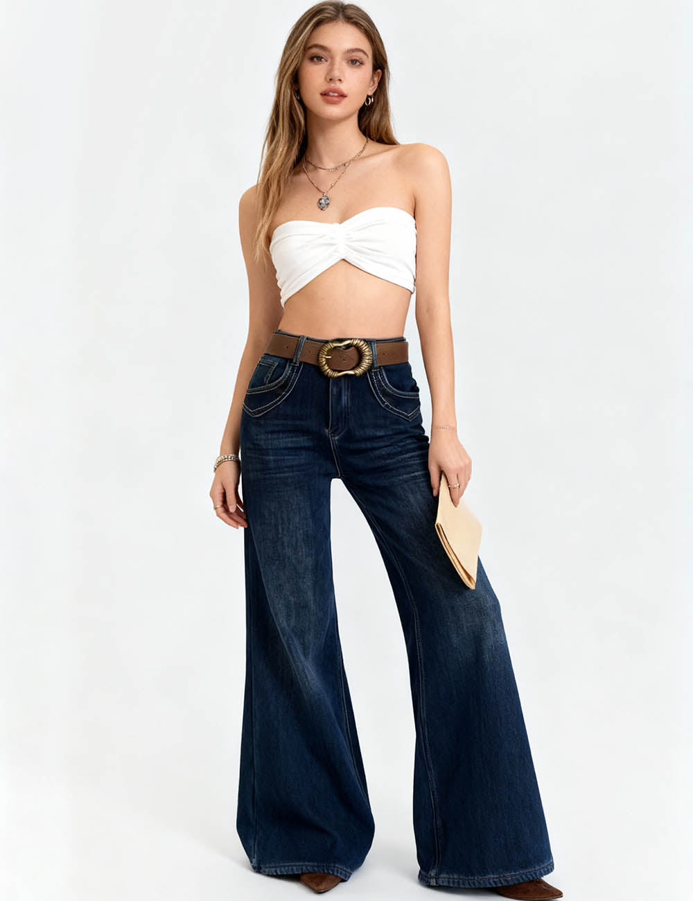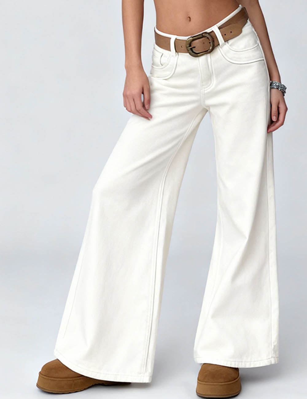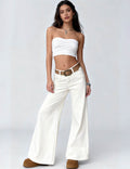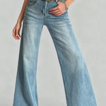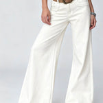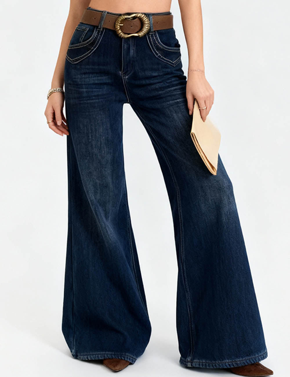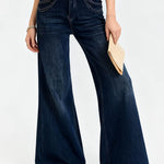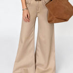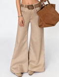 Ladies Fleece Lining Jeans Button Wide Leg Denim Pants