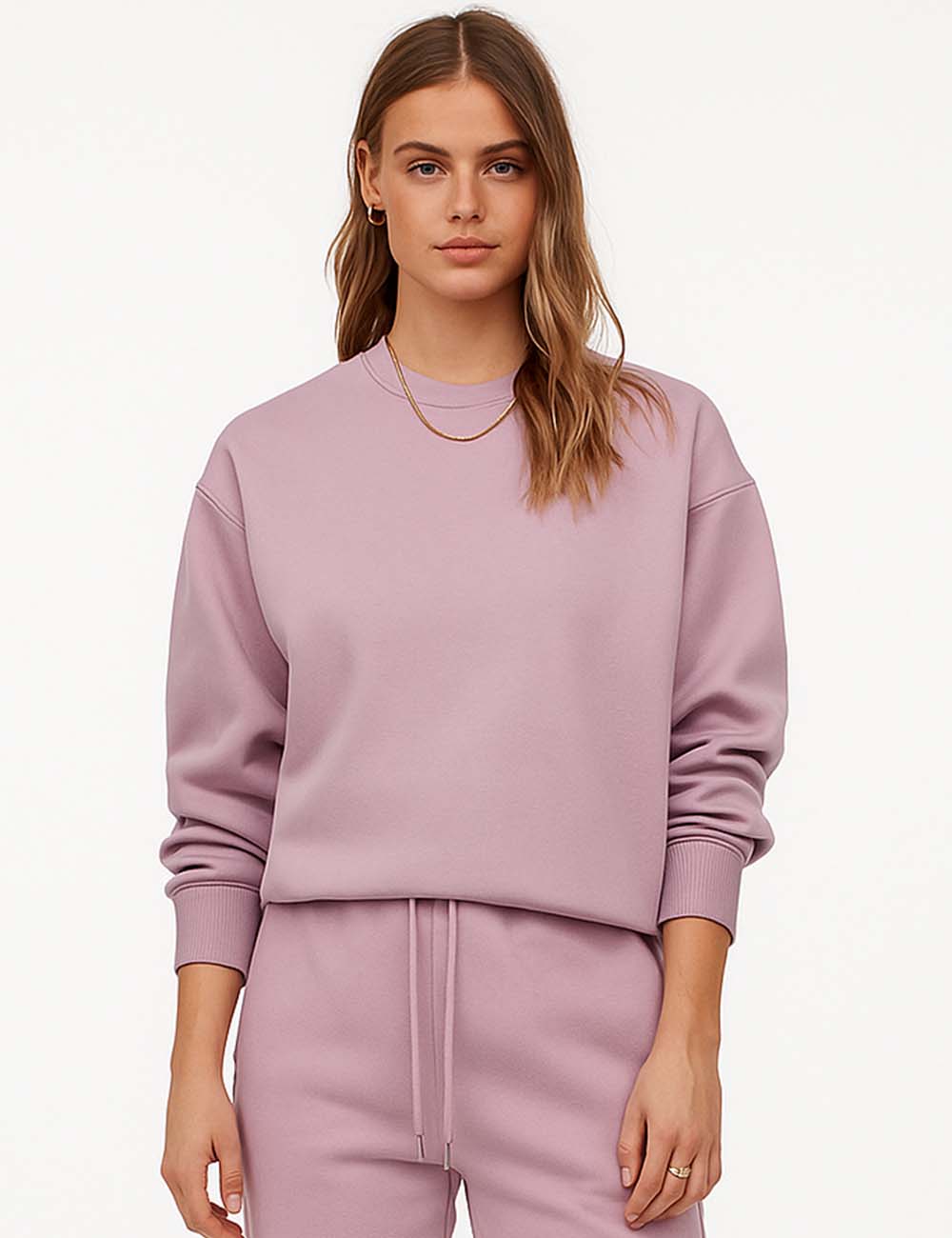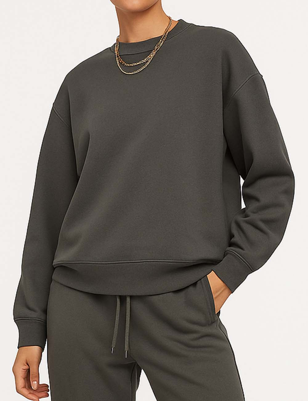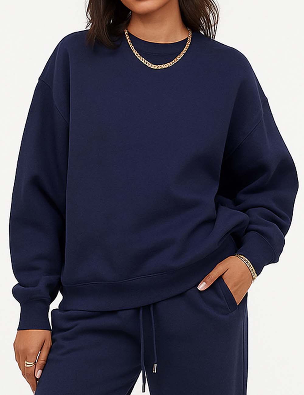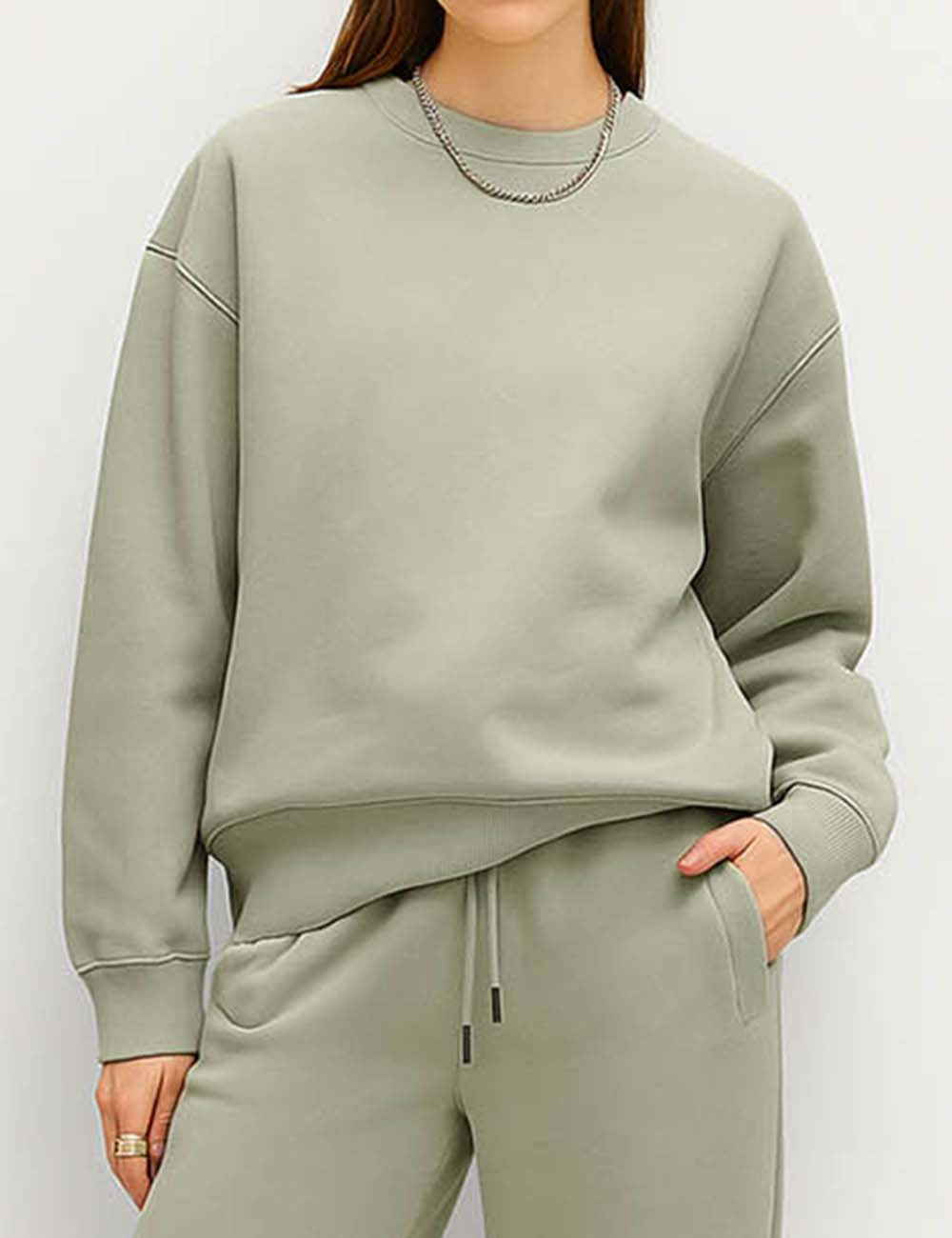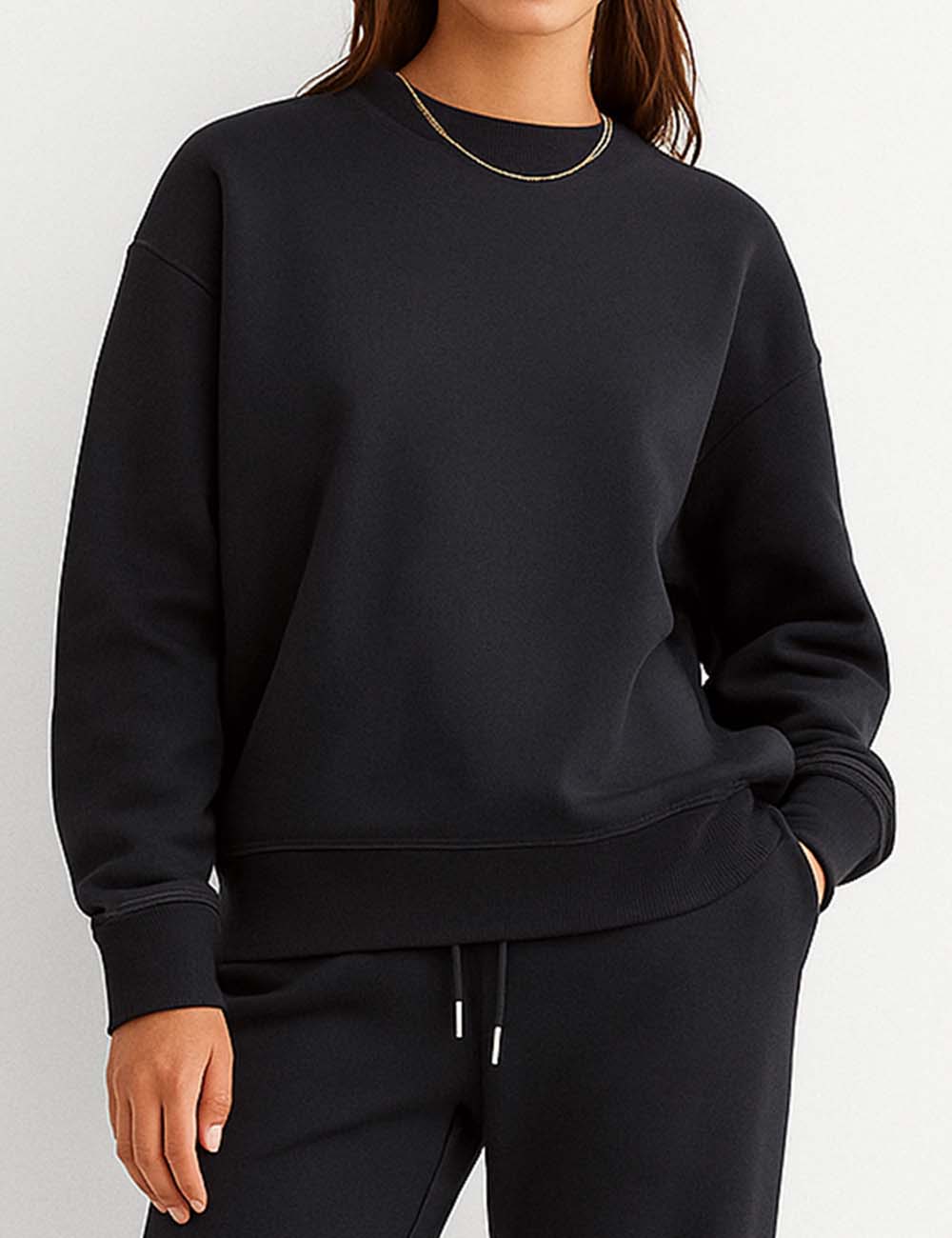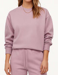 Ladies Fleece Lining Solid Color Round Neck Sweatshirt