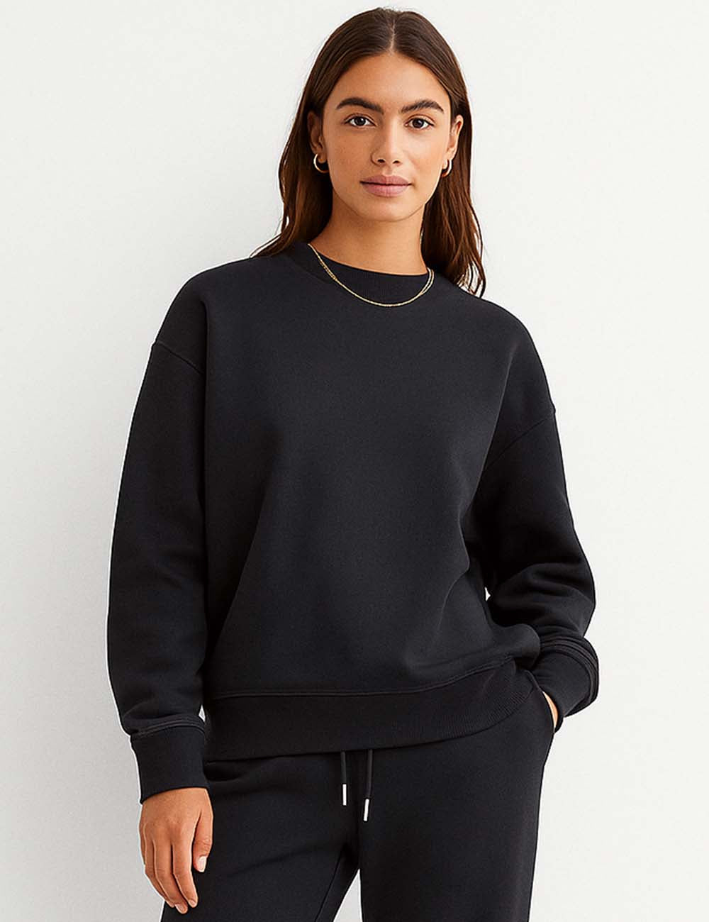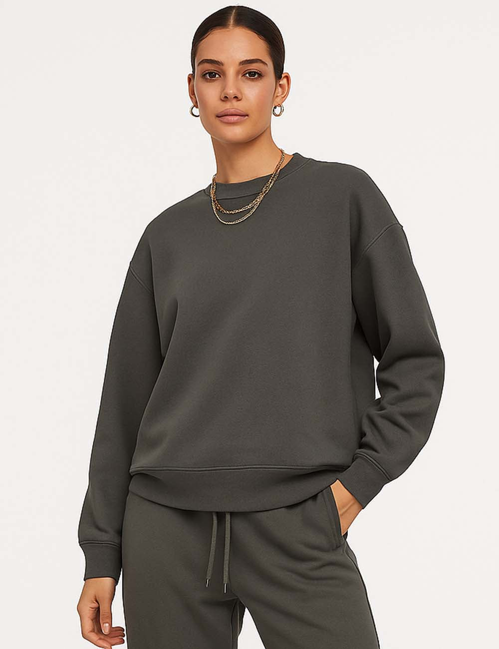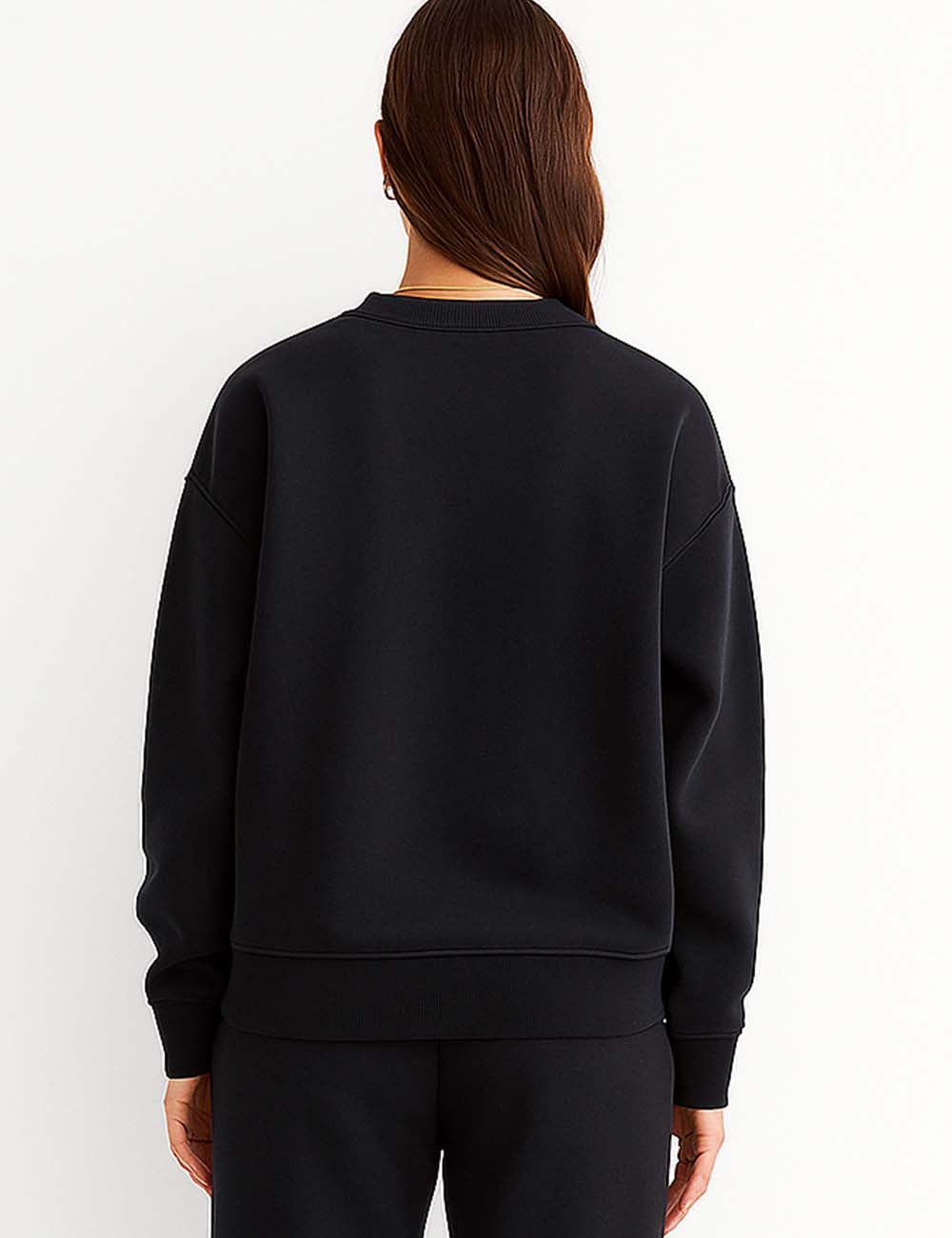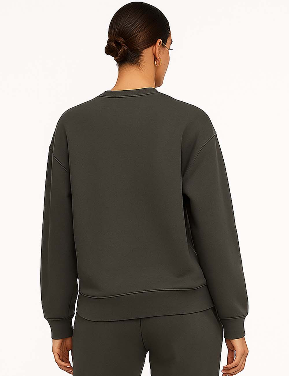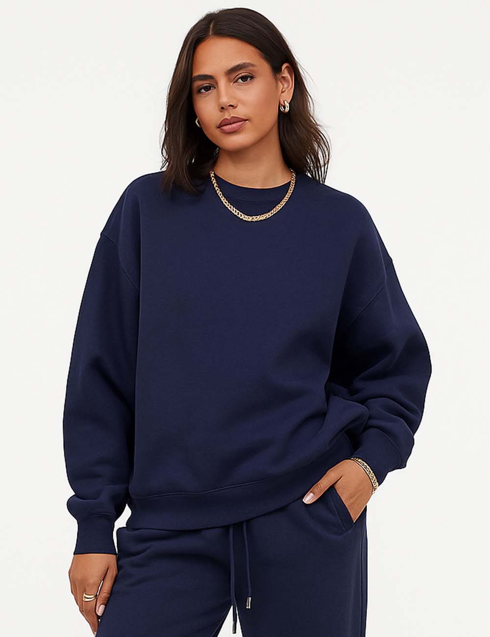 Ladies Fleece Lining Solid Color Round Neck Sweatshirt
