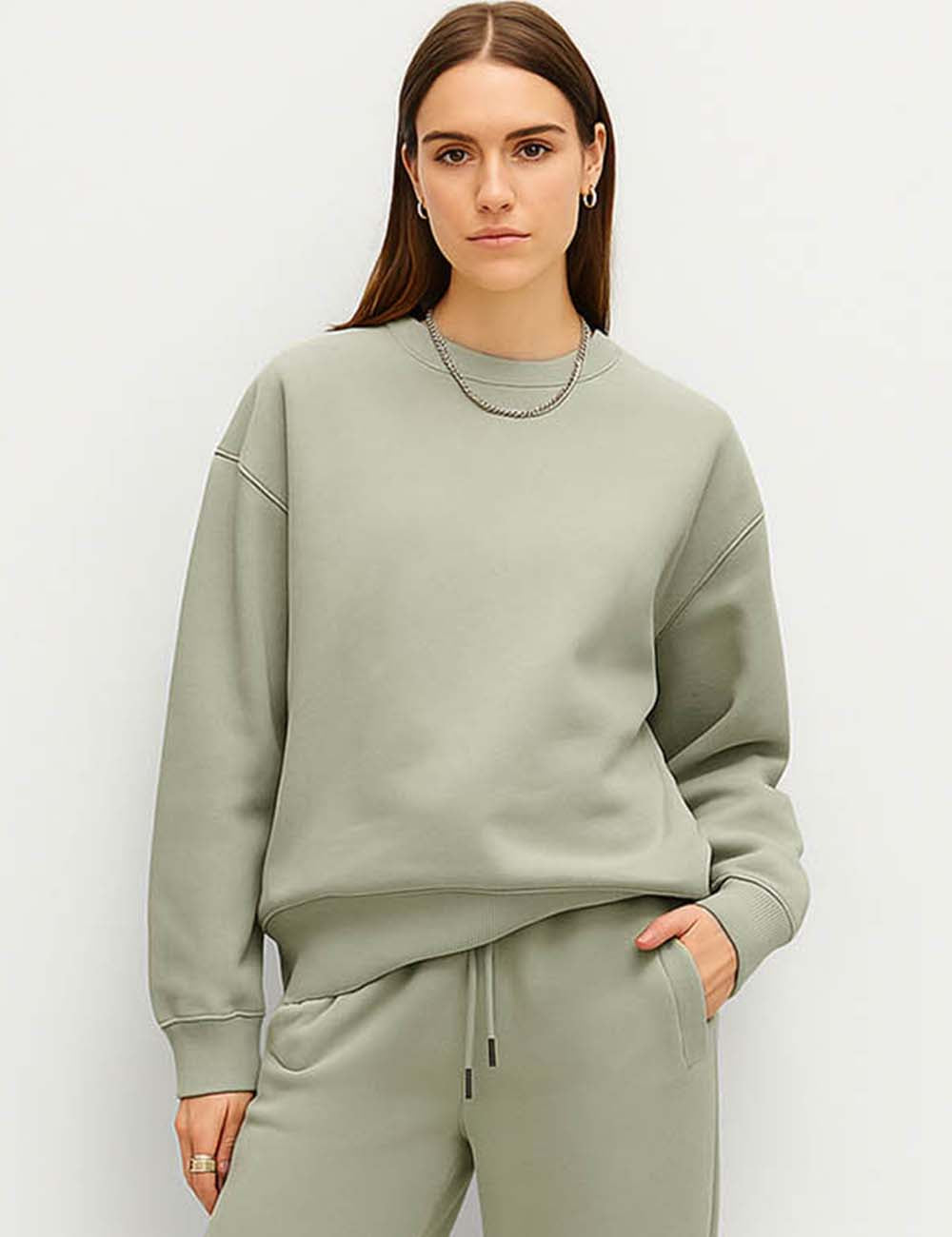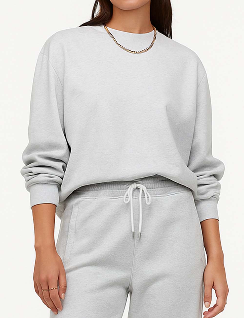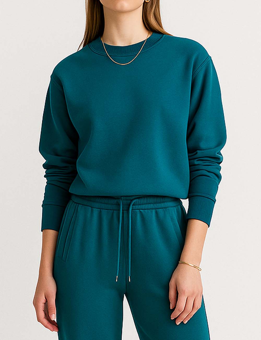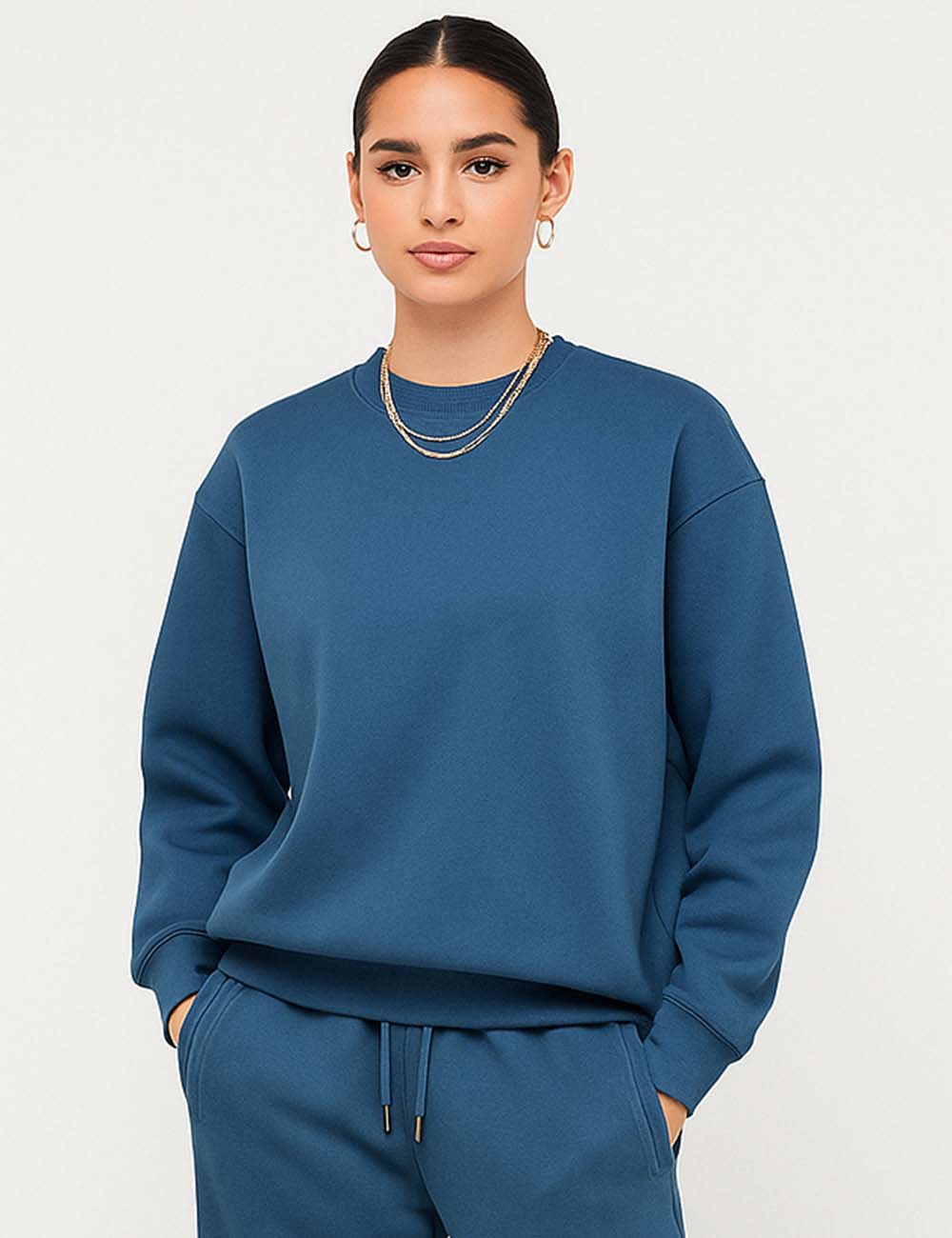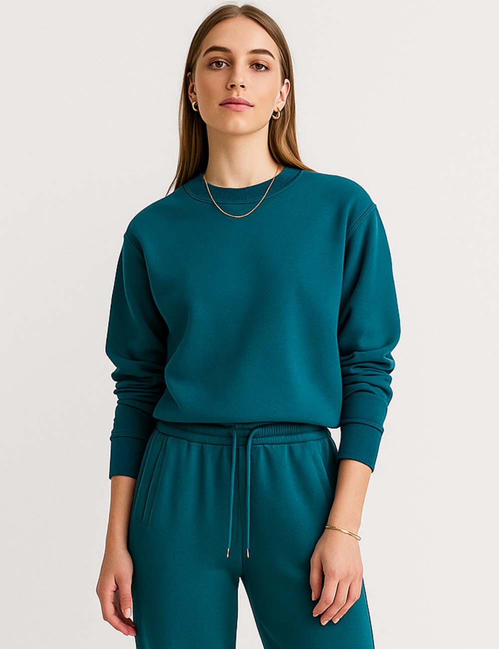 Ladies Fleece Lining Solid Color Round Neck Sweatshirt
