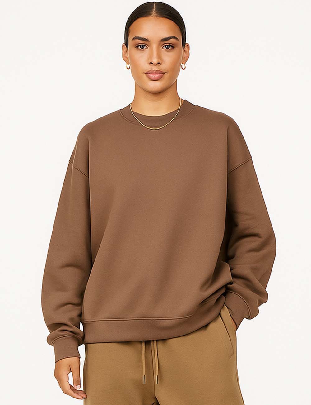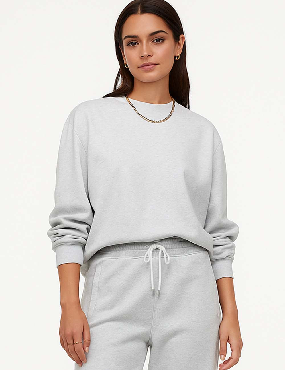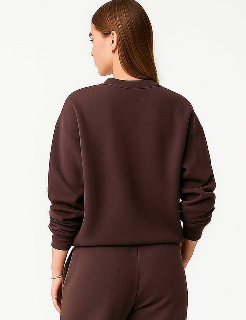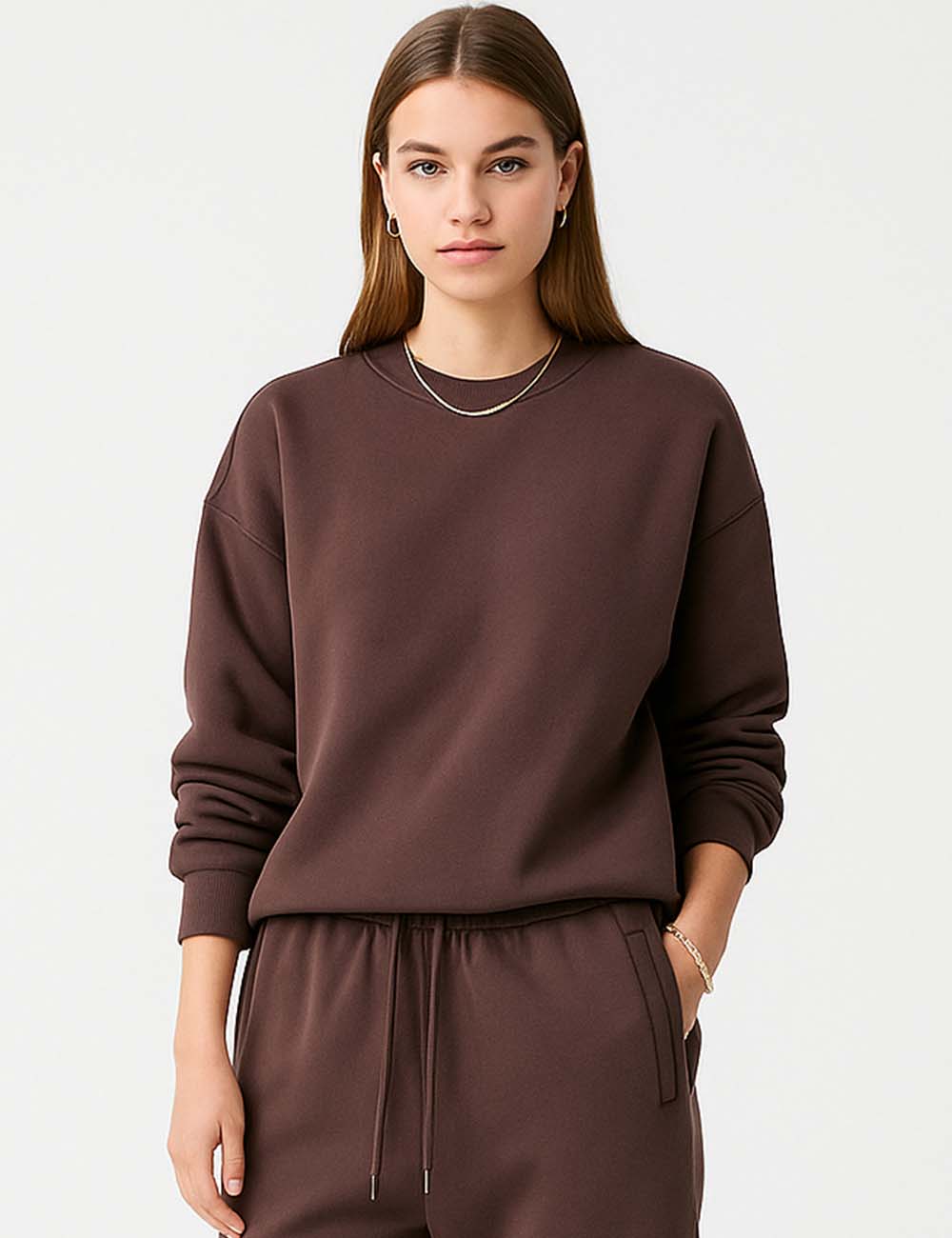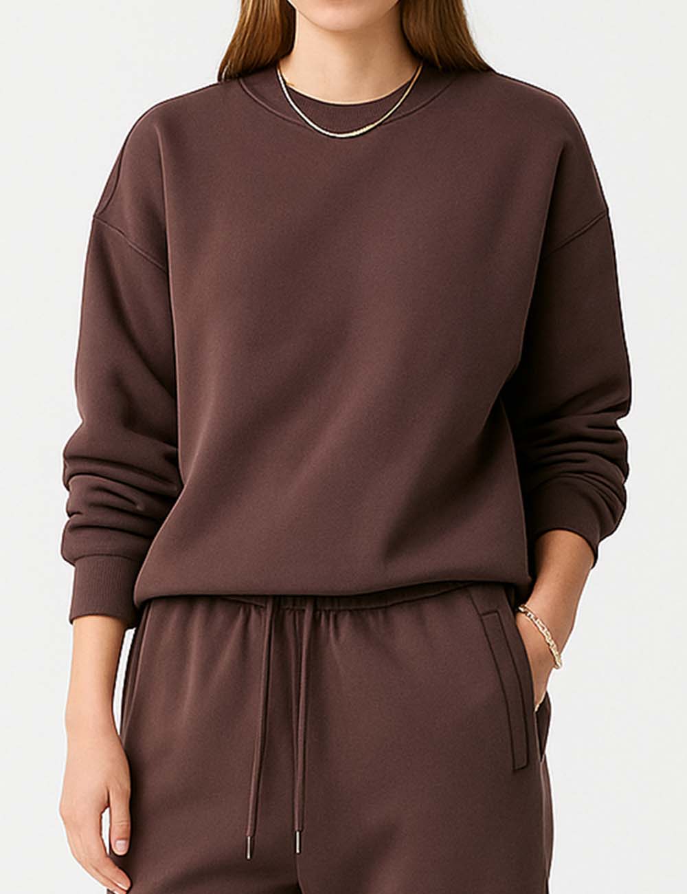 Ladies Fleece Lining Solid Color Round Neck Sweatshirt