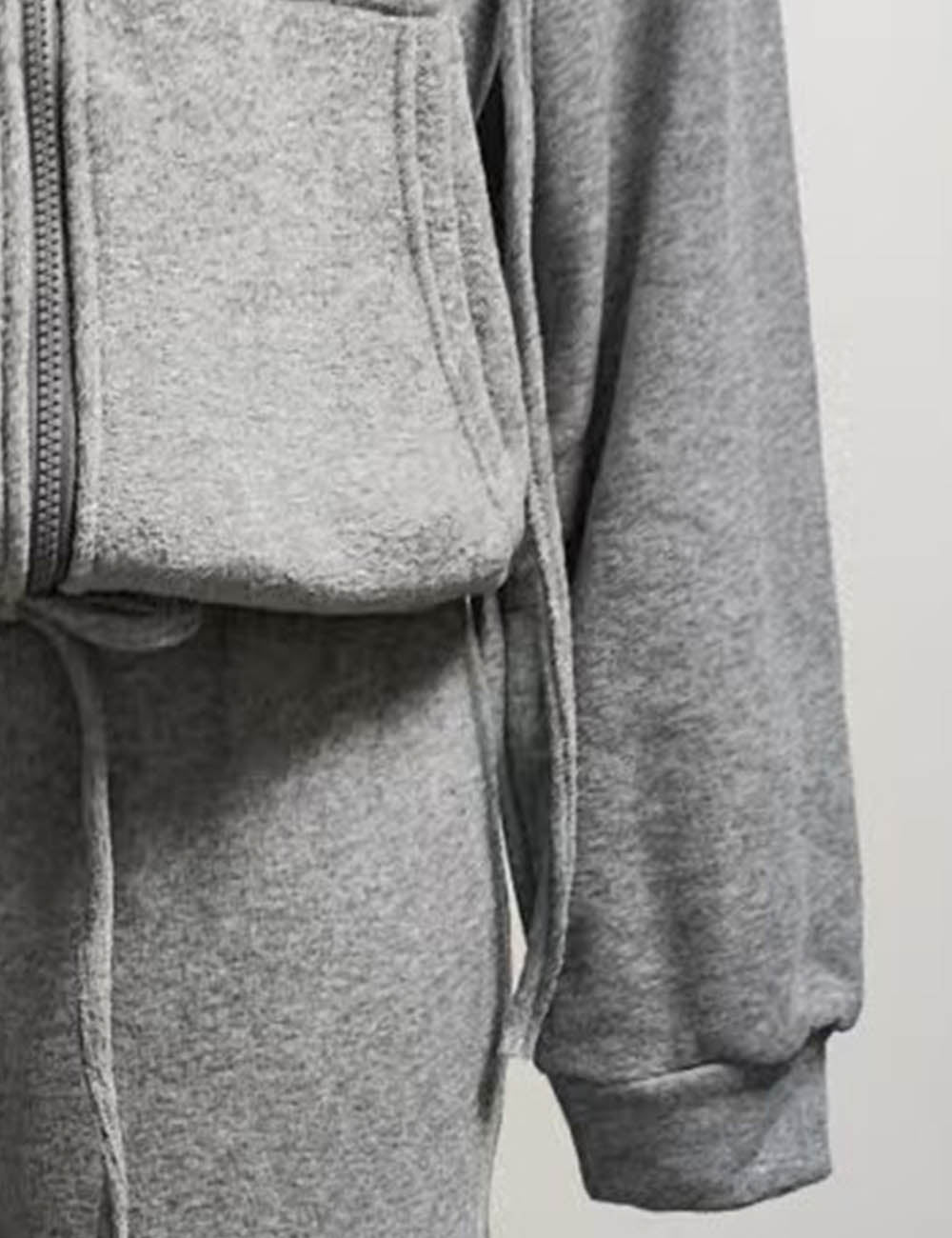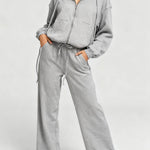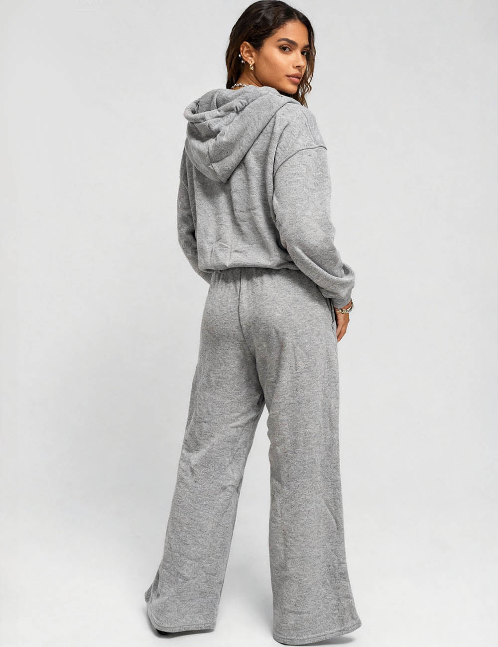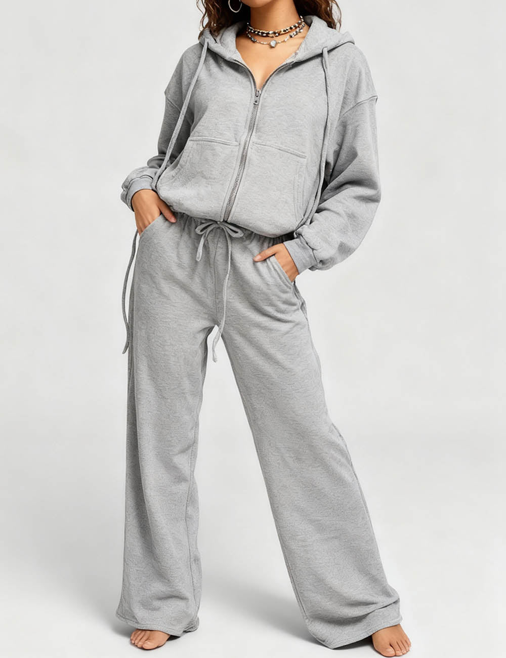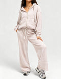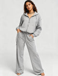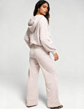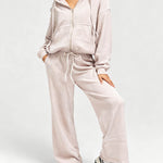 Ladies Fleece Zip Hoodie Sweatshirt Tie Waist Wide Pants Set