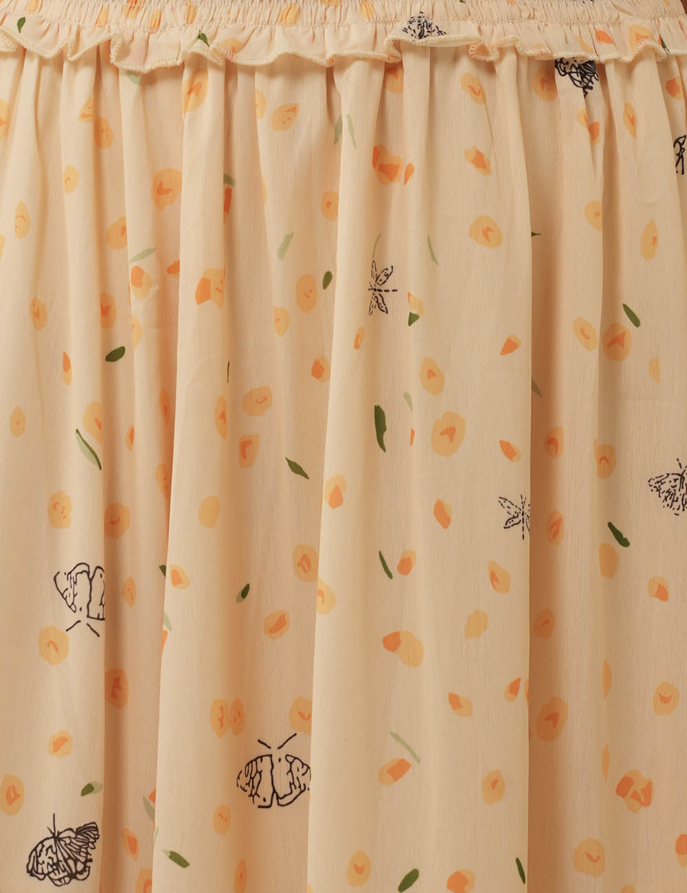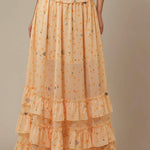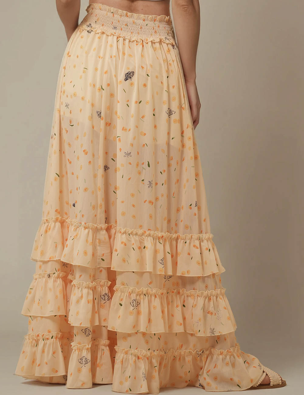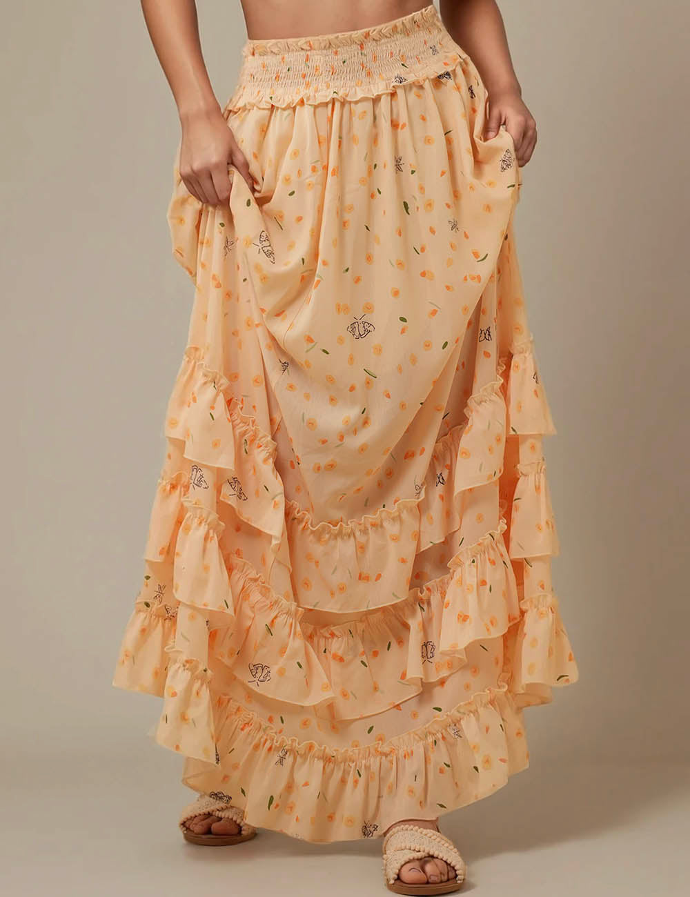Ladies Floarl Chiffon Citrus Bloom Ruffle Maxi Skirt SKST5M5S