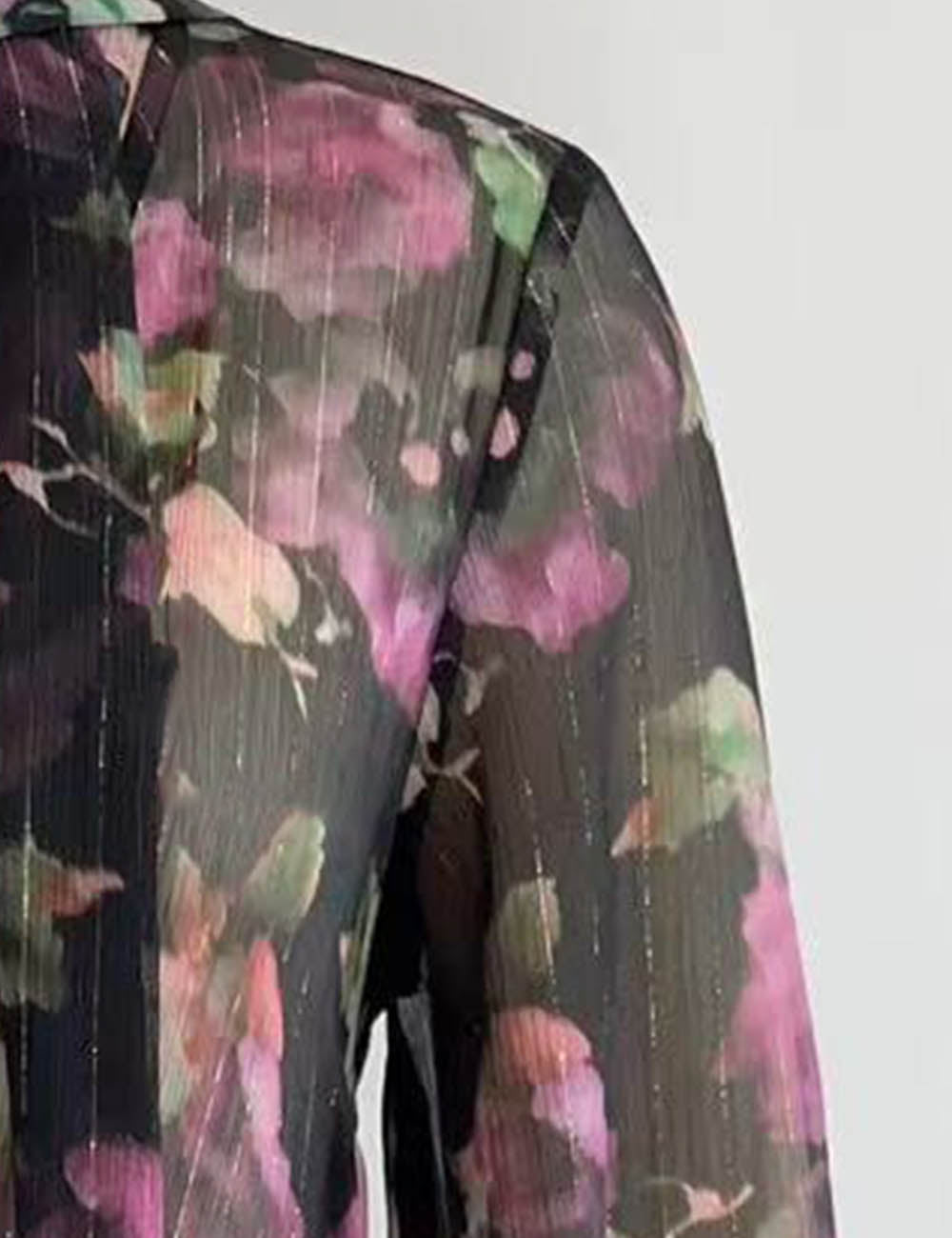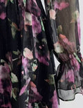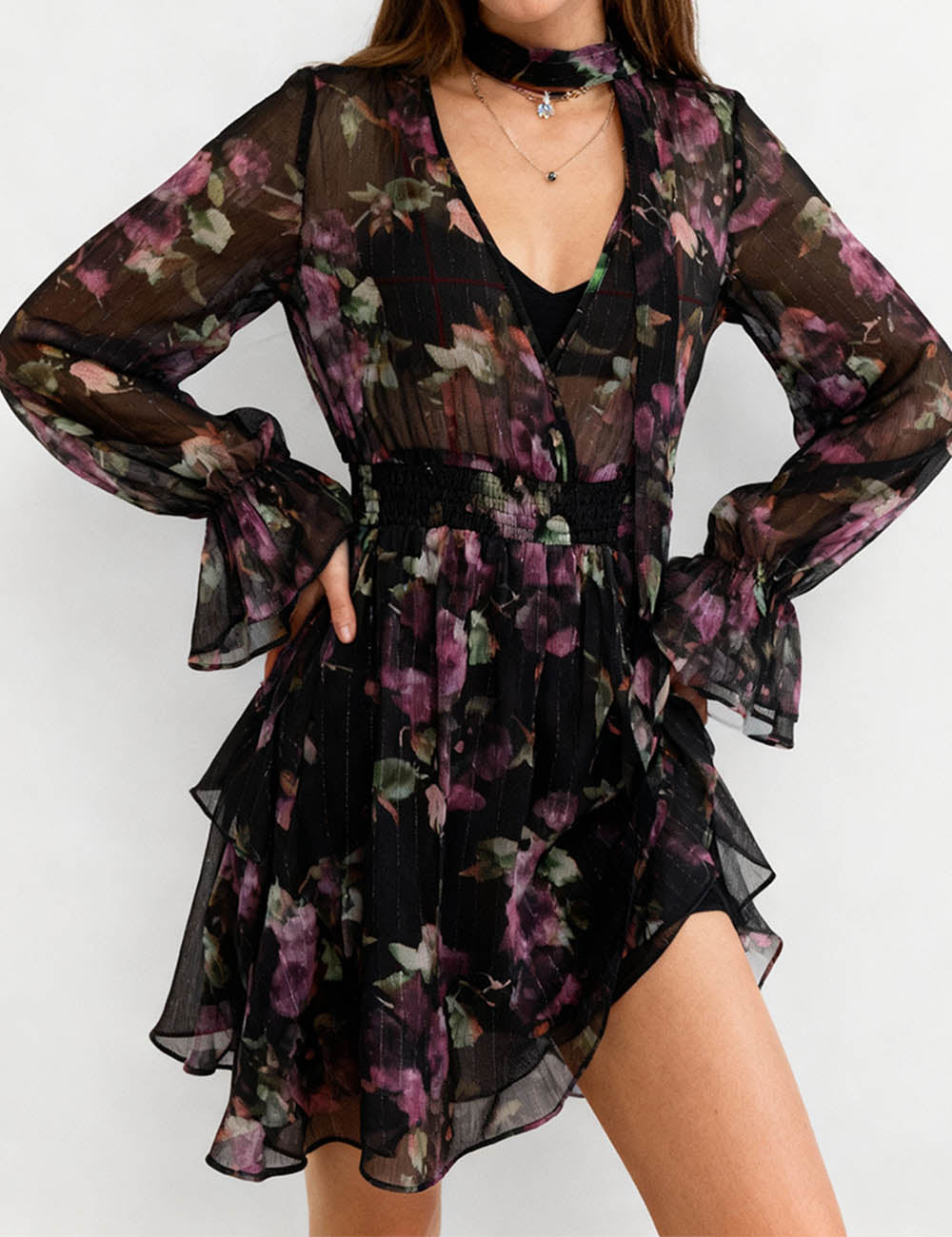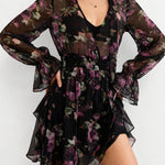 Ladies Floral Chiffon V-Neck Flared Sleeves Mini Dress