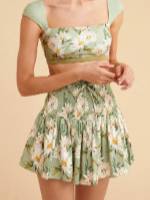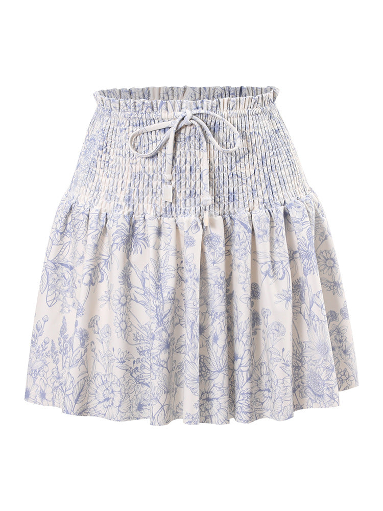 Ladies Floral Elasic Waist Swim Cover Skirt SKSW40088S