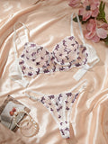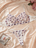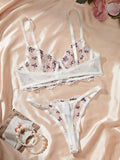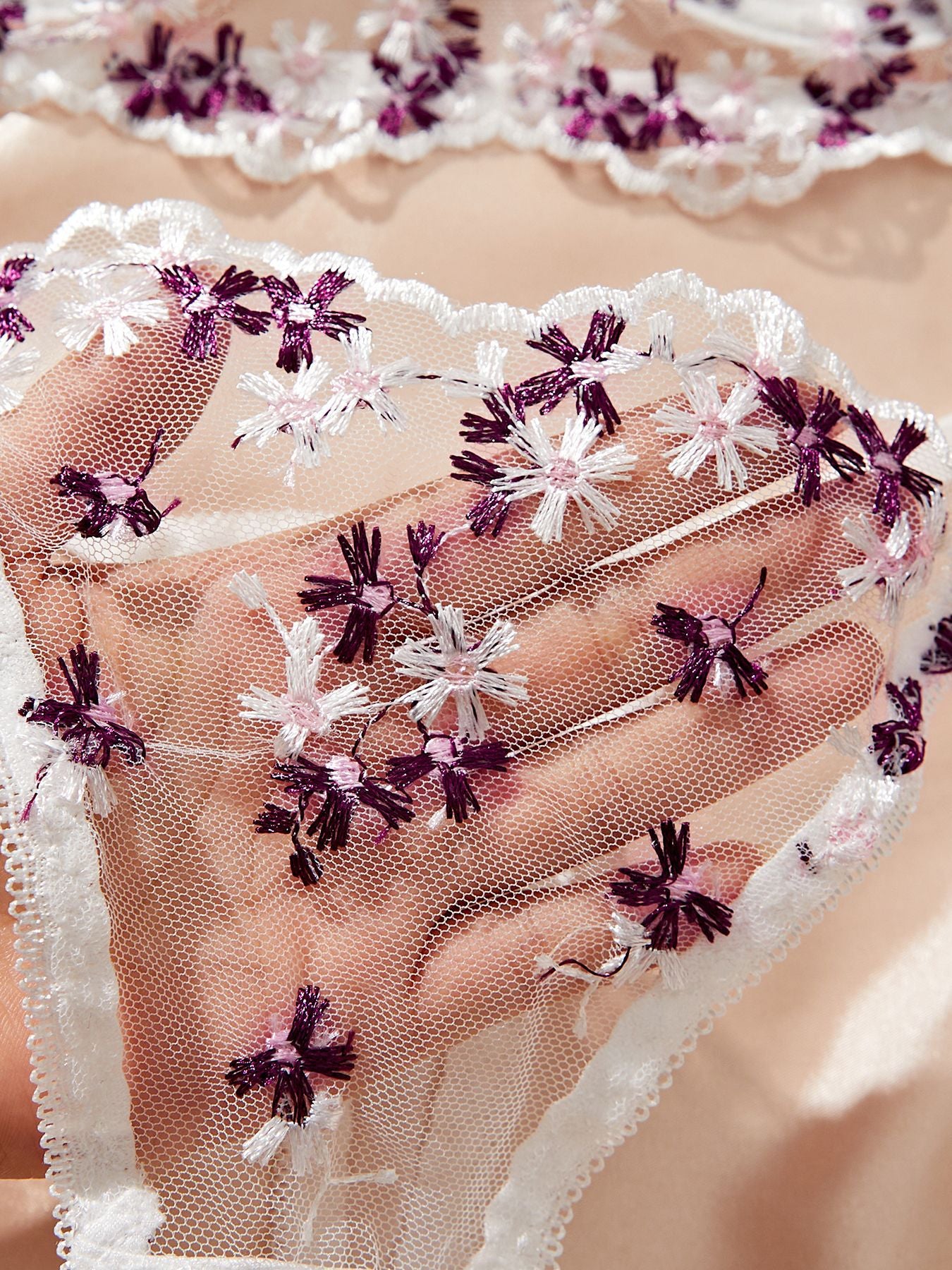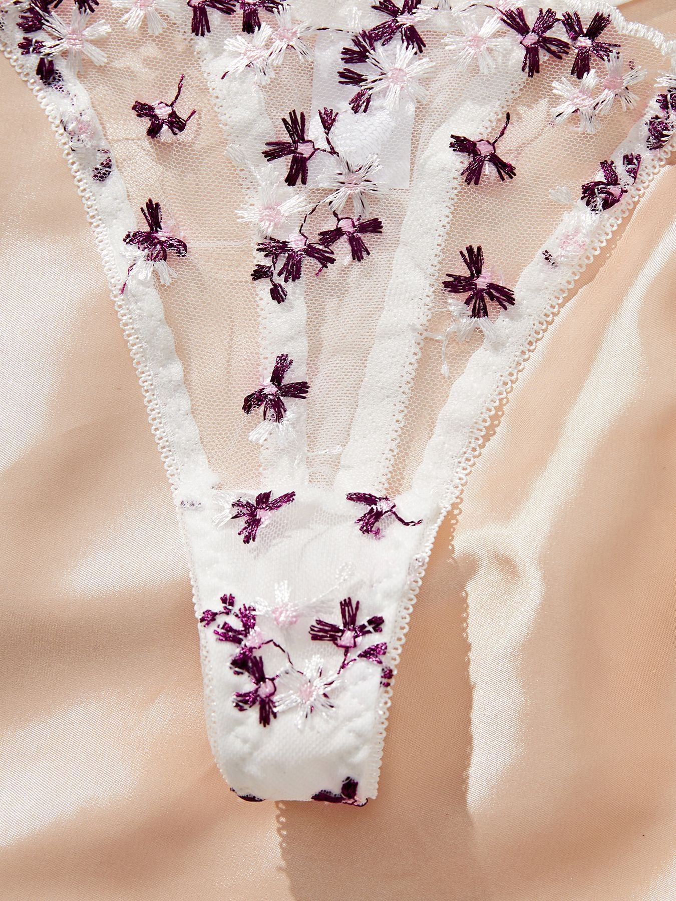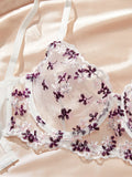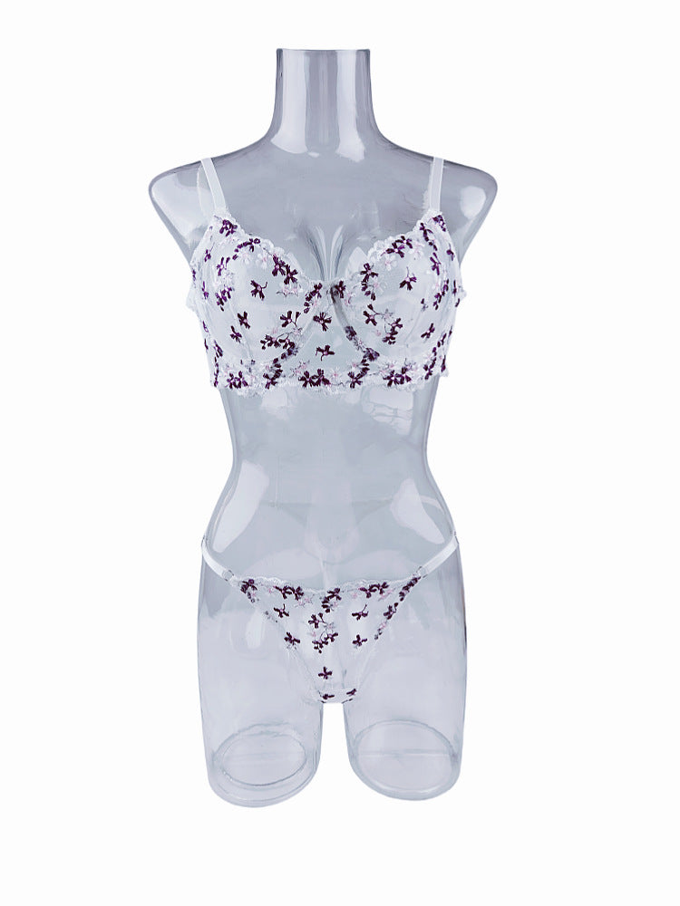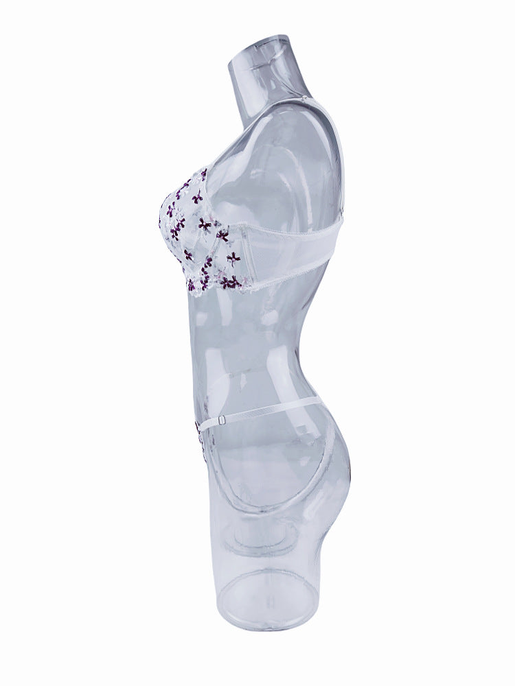 Ladies Floral Embroidery color Block Lingerie Set SKLG4034