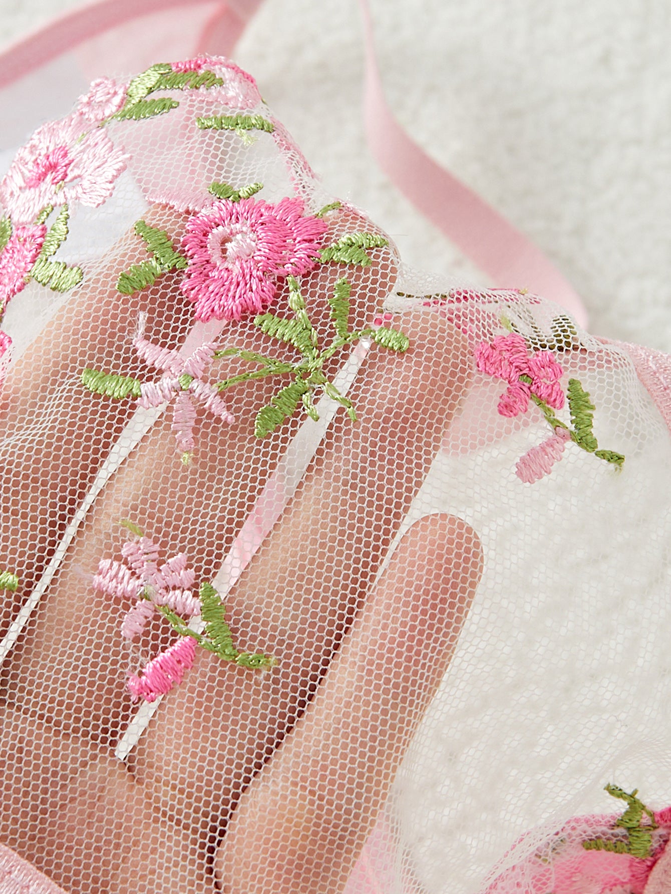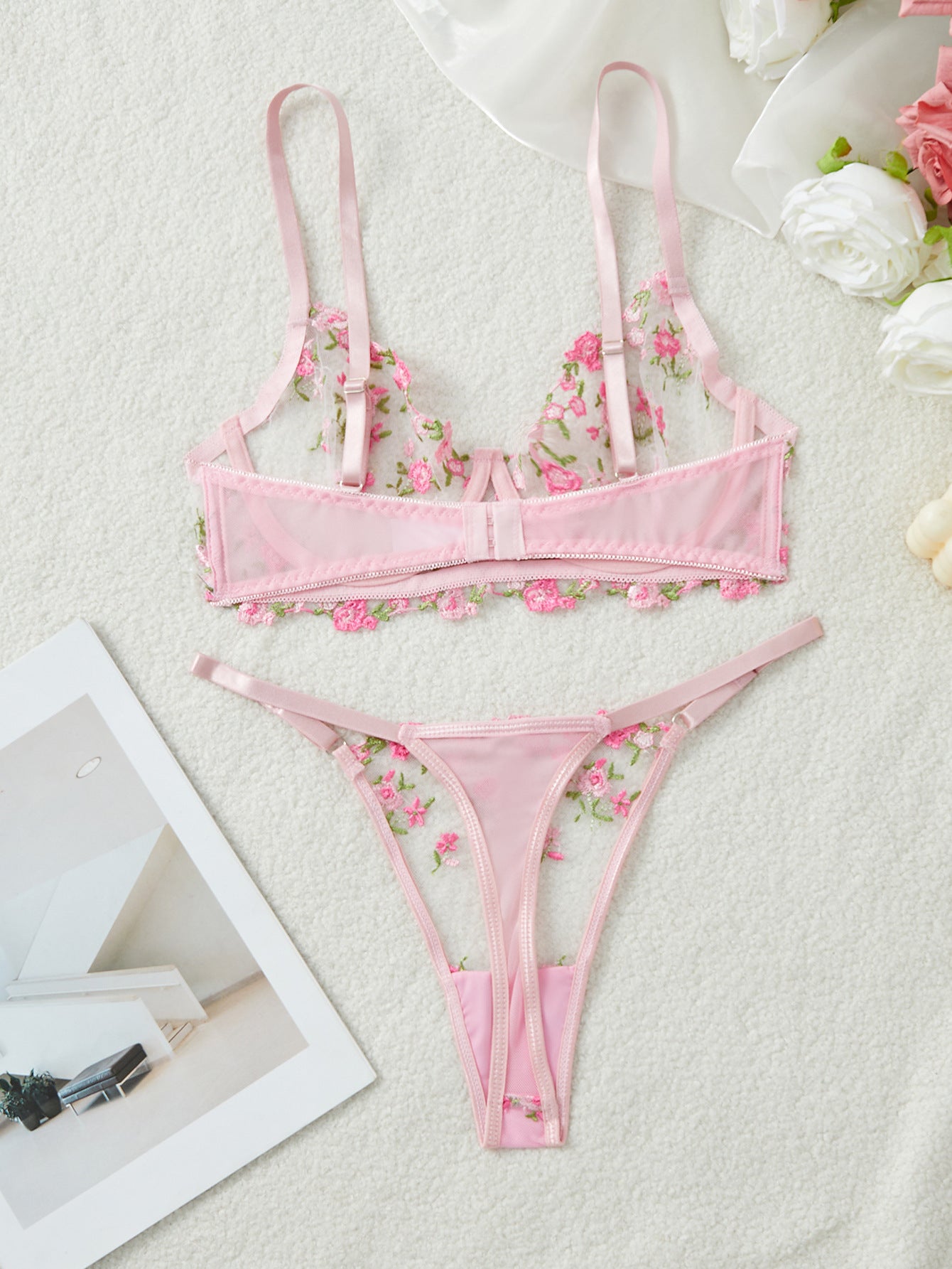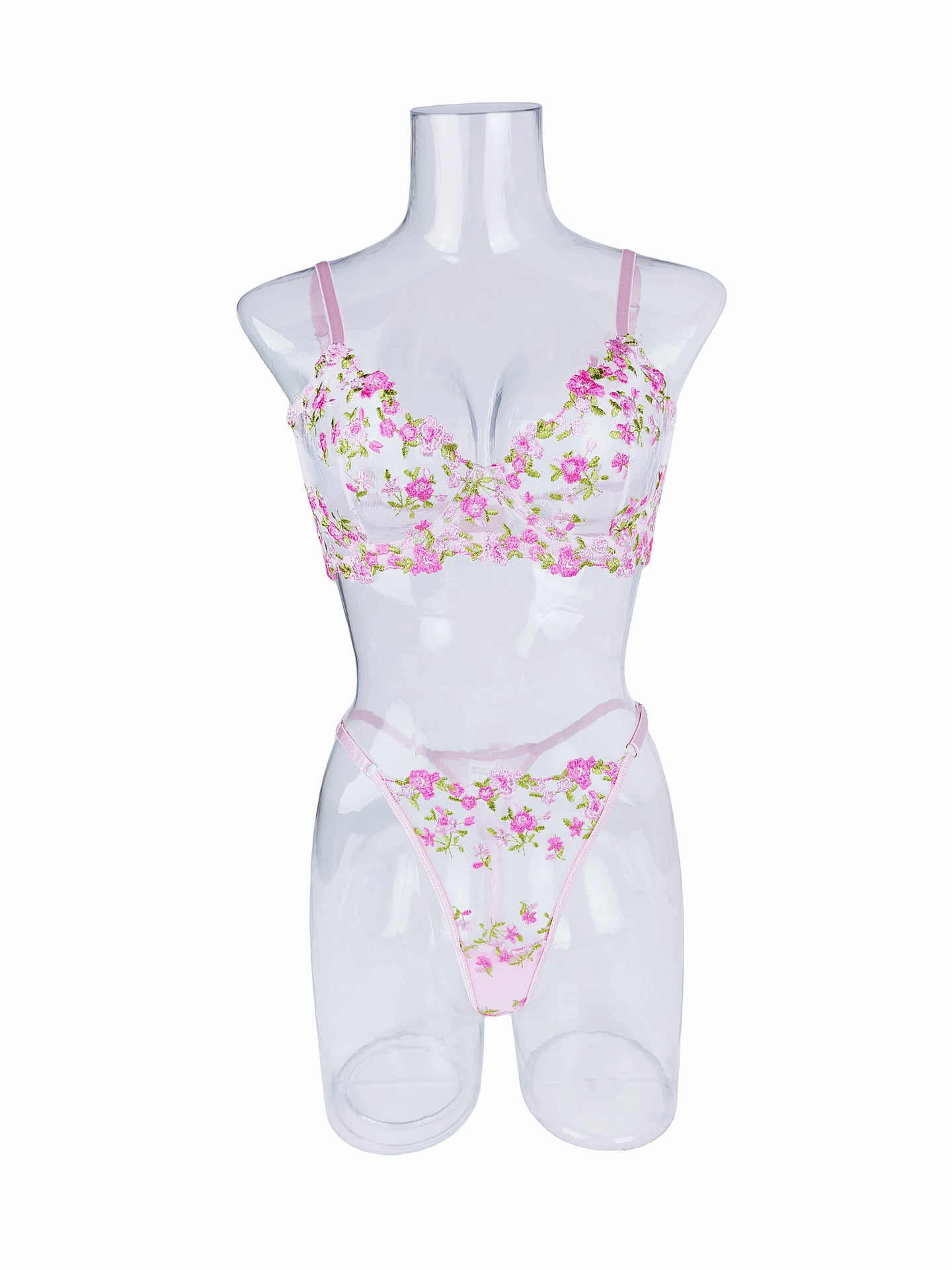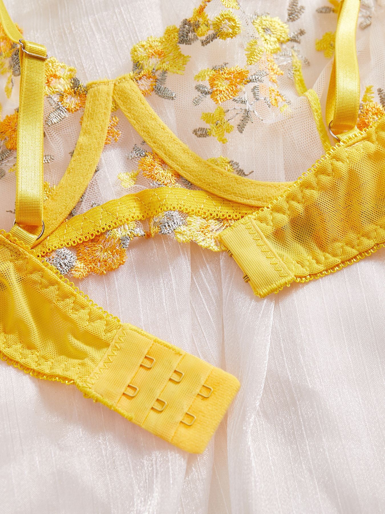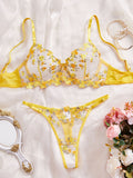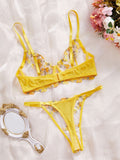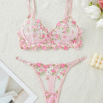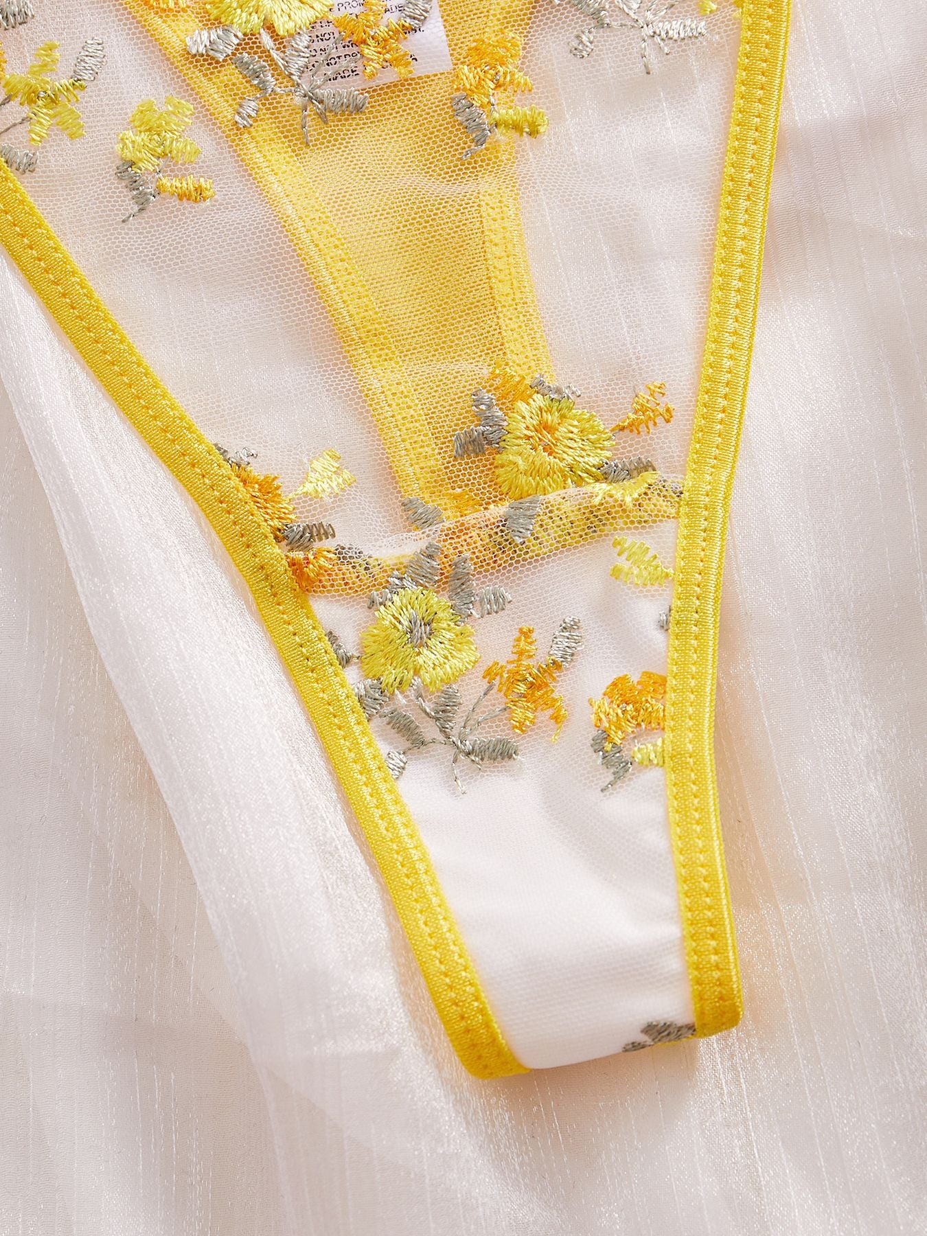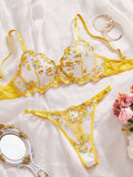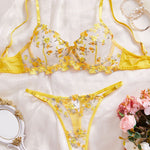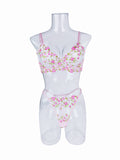 Ladies Floral Embroidery Color Block Lingerie Set SKLG4035