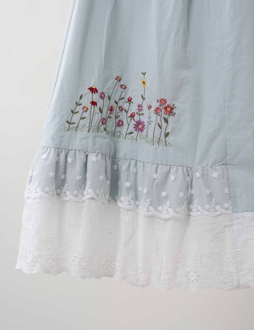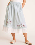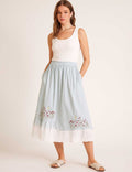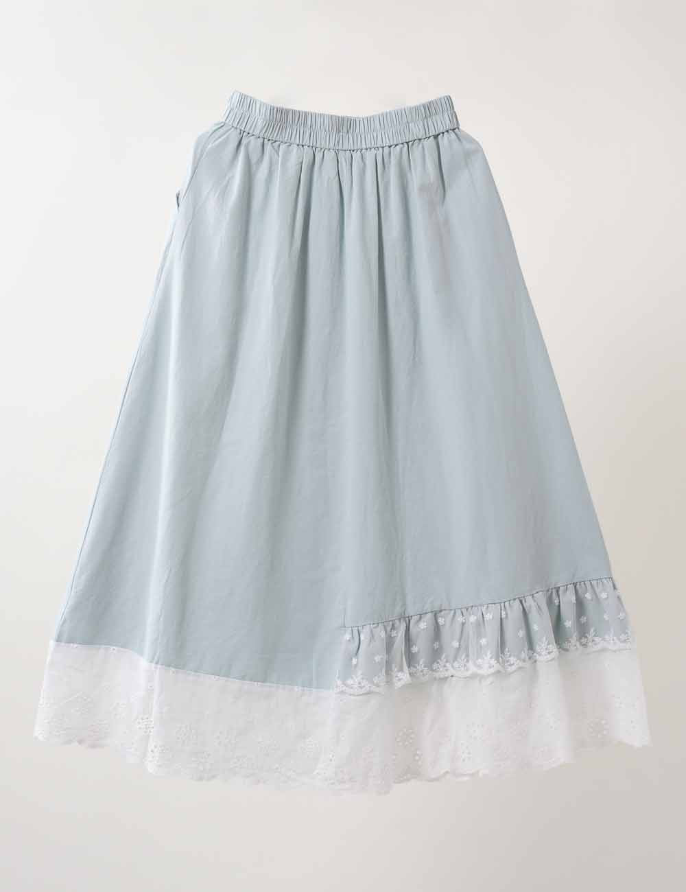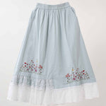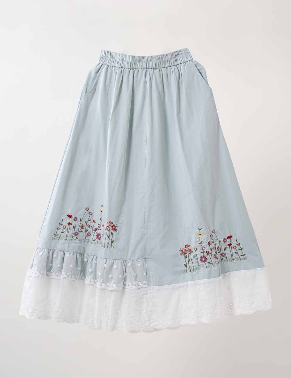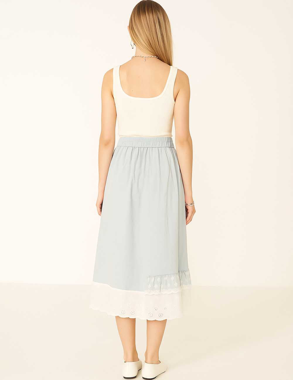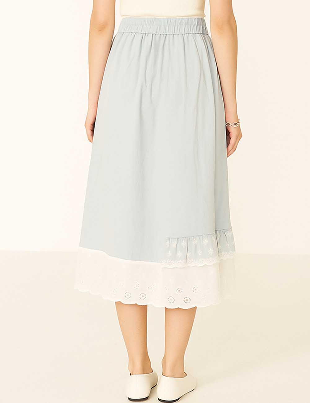 Ladies Floral Embroidery Lace Splice Scalloped Midi Skirt