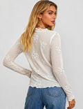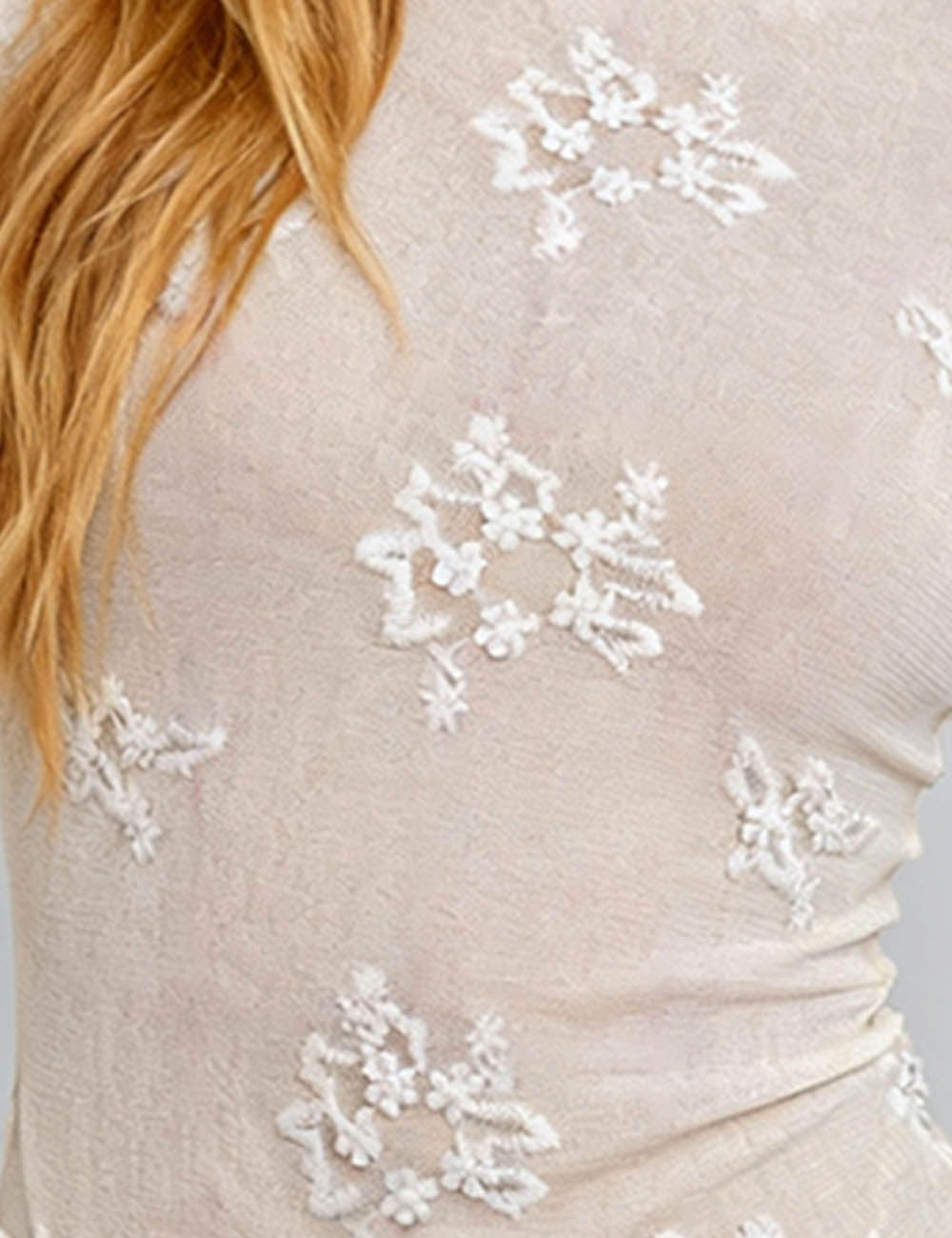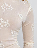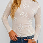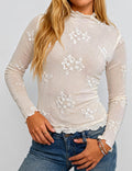Ladies Floral Embroidery Mock Neck Sheer Layering Top
