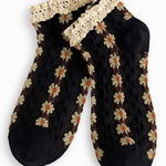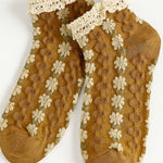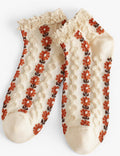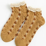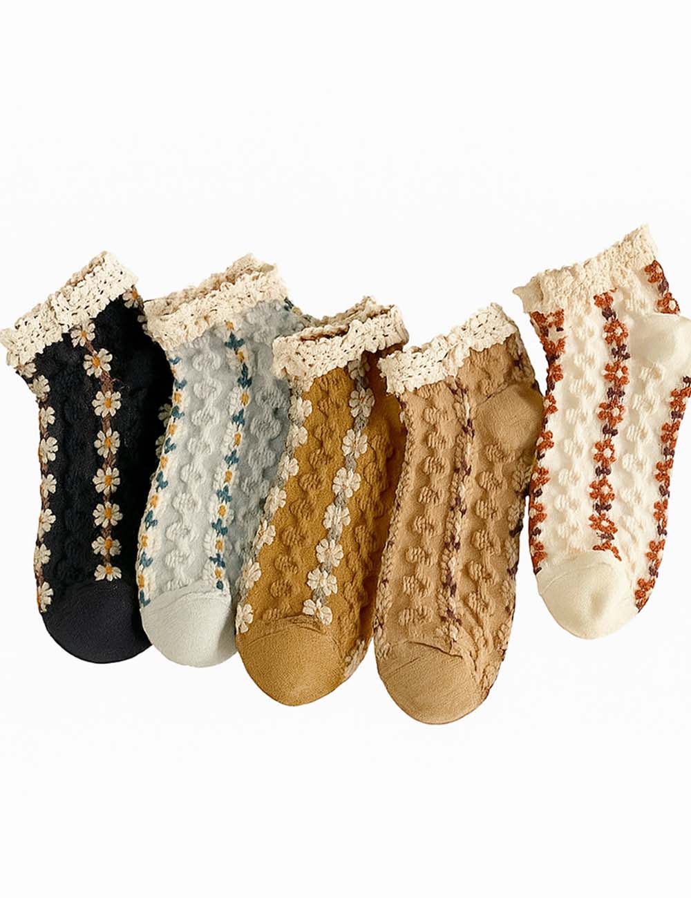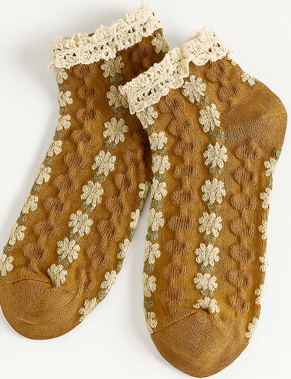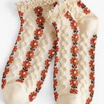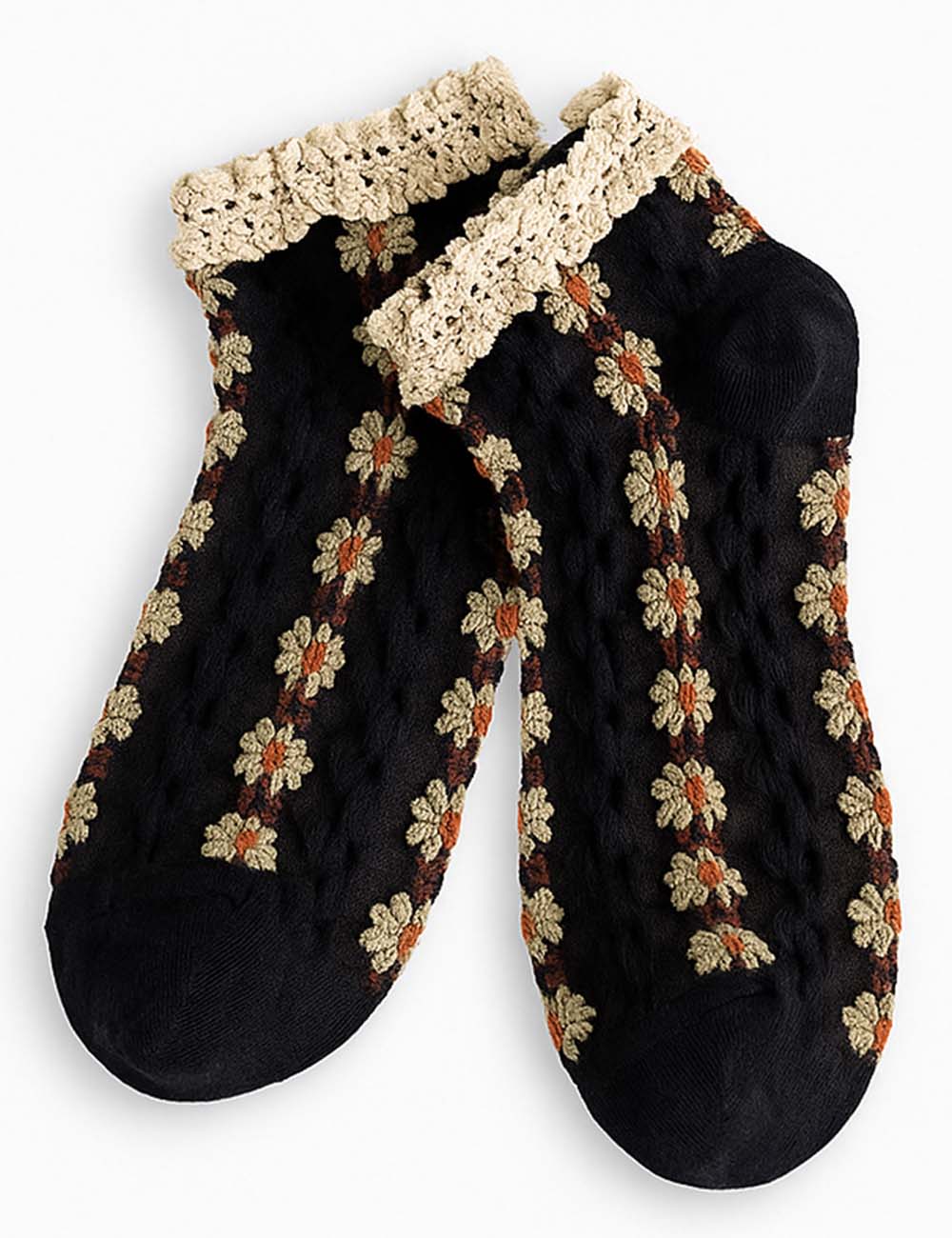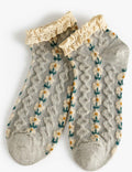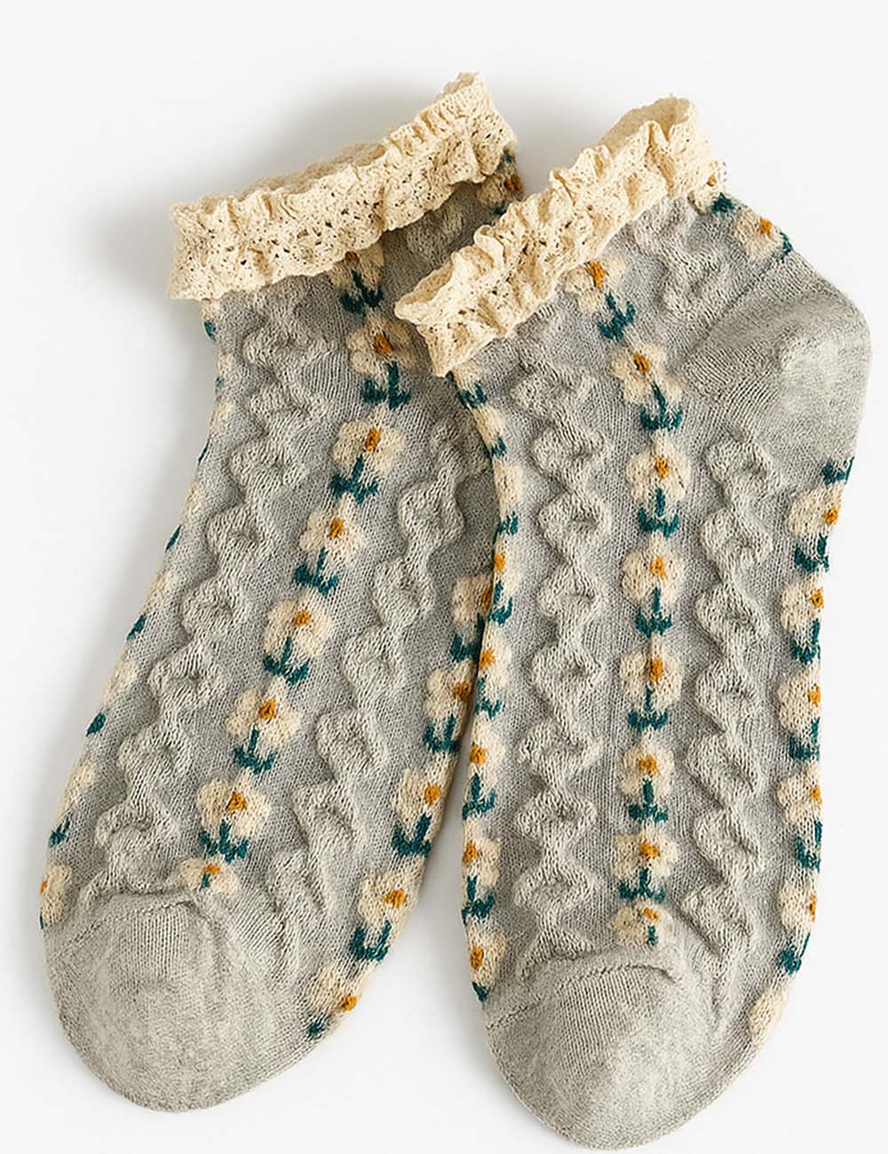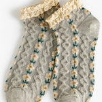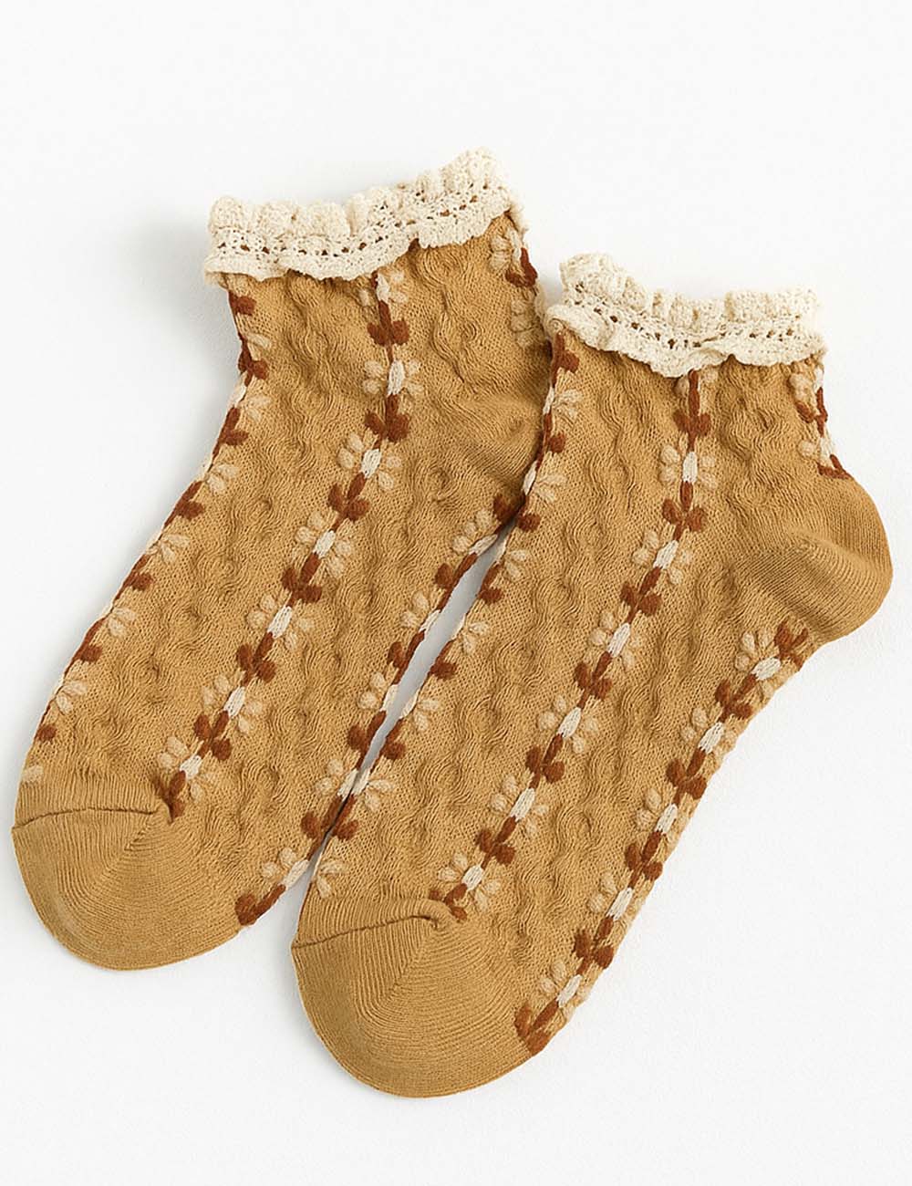 Ladies Floral Embroidery Ruffled Trim Knit Ankle Socks