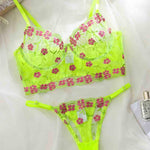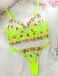 Ladies Floral Embroidery See Through 2PCS Lingerie Set 8HF4169