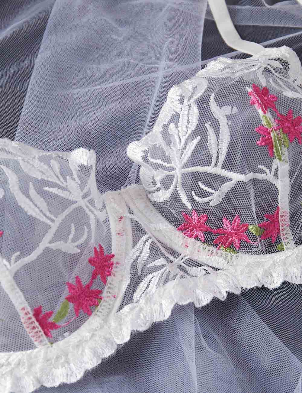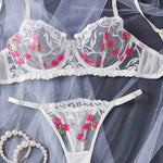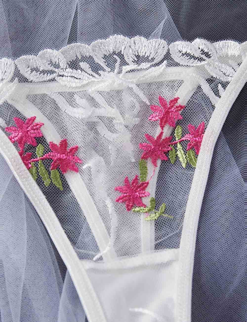 Ladies Floral Embroidery See Through 2PCS Lingerie Set 8HF4253