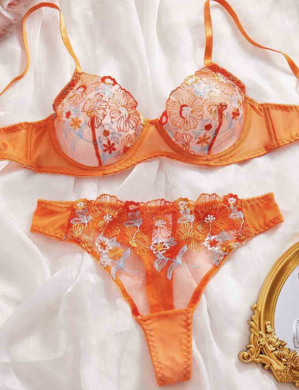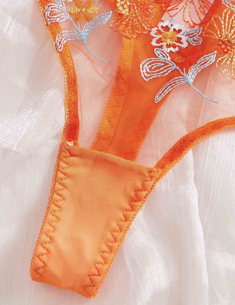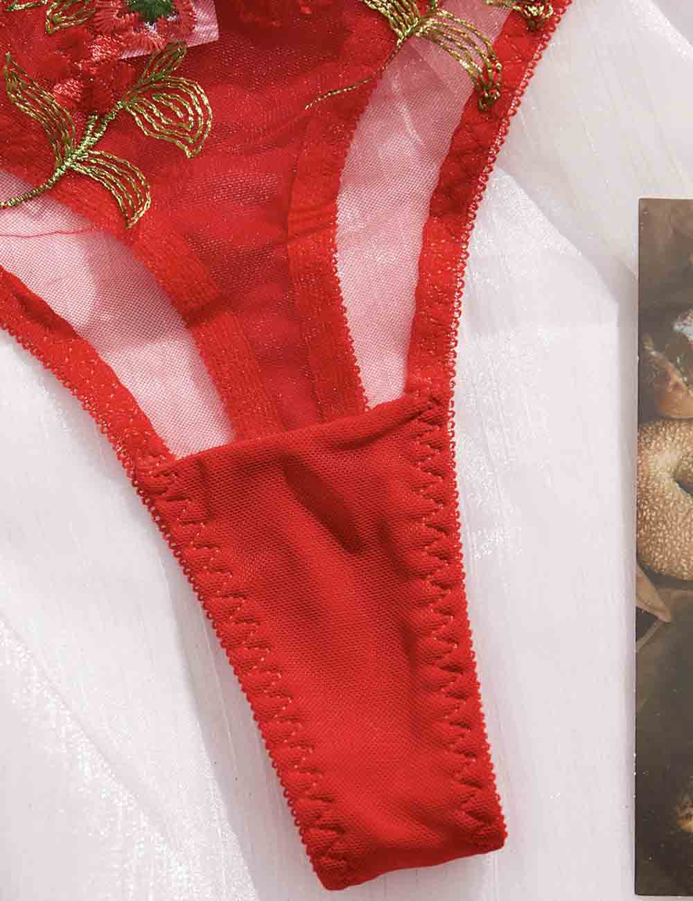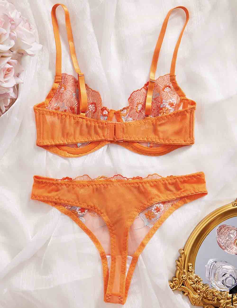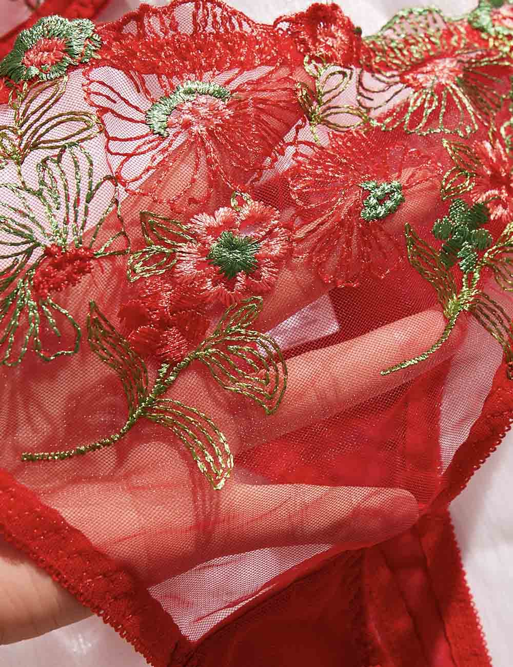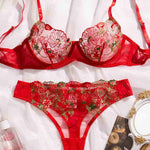 Ladies Floral Embroidery See Through 2PCS Lingerie Set 8HF4361