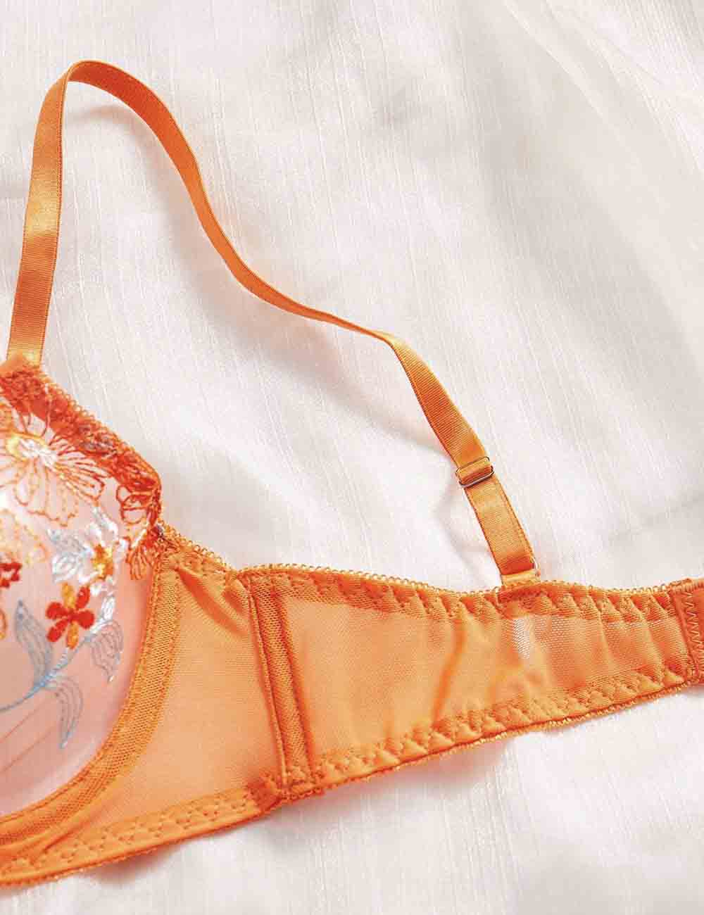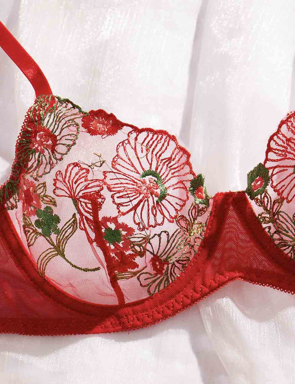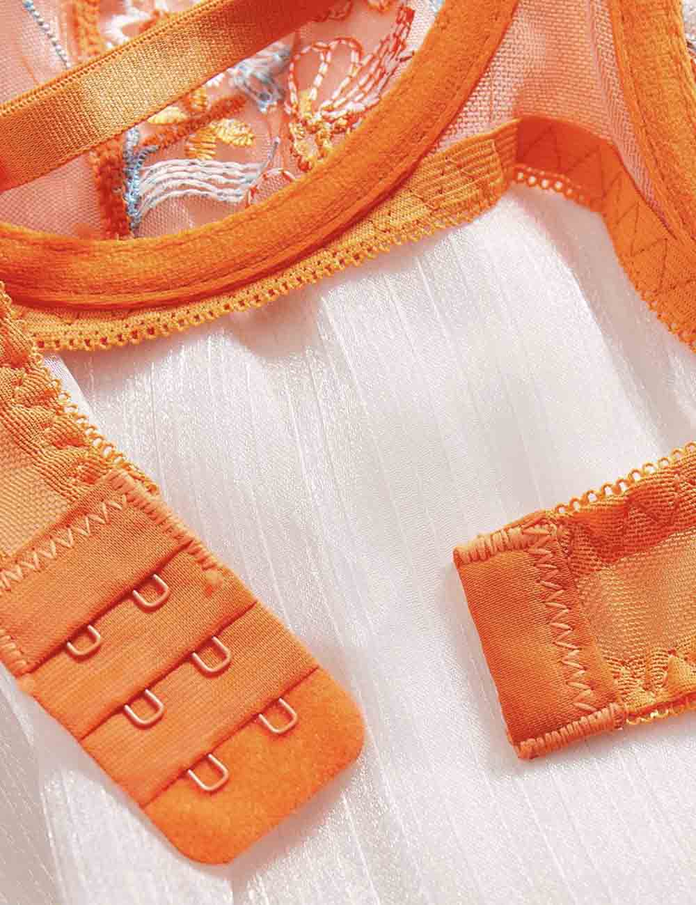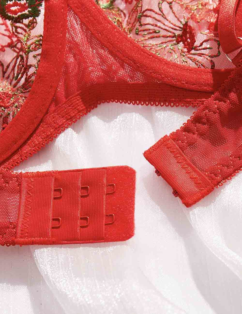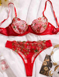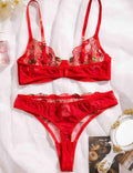 Ladies Floral Embroidery See Through 2PCS Lingerie Set 8HF4361