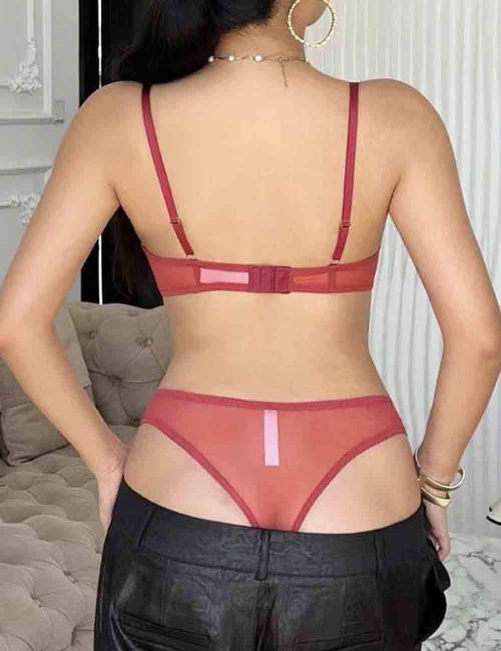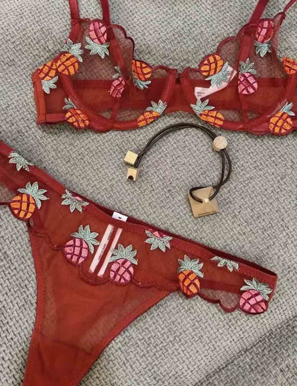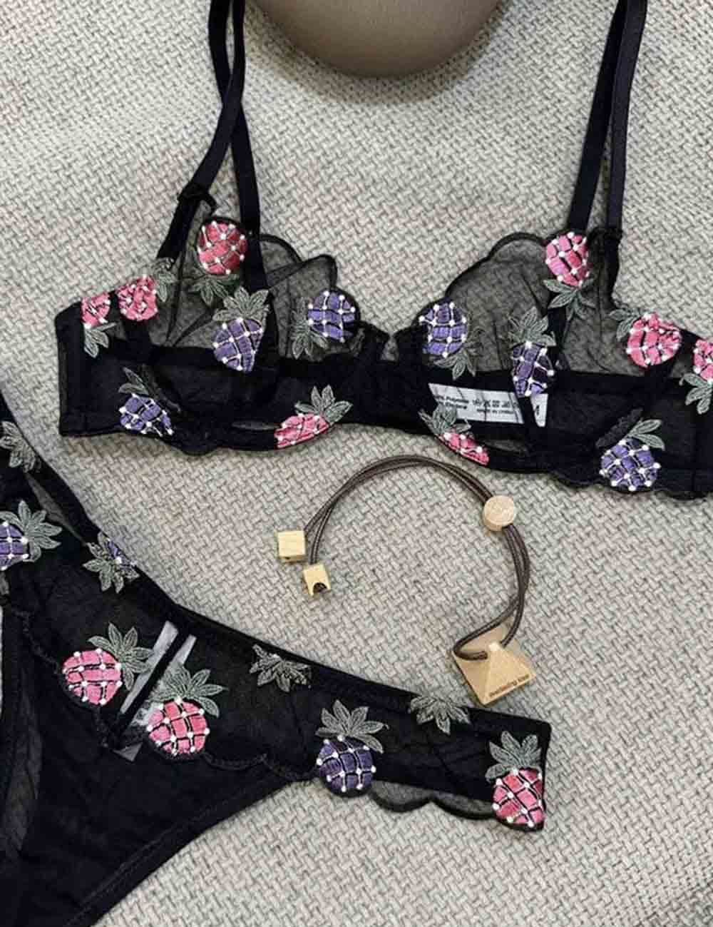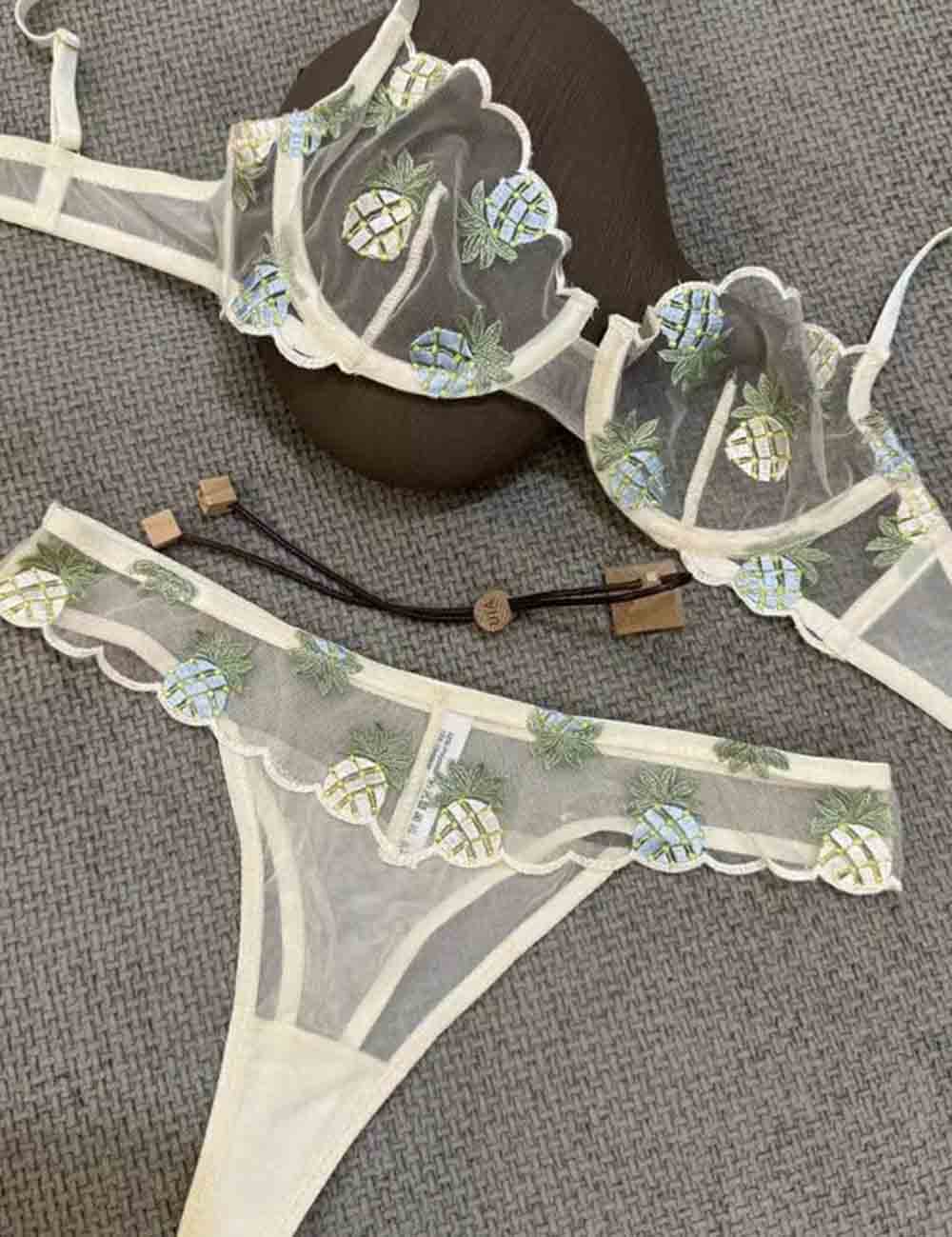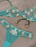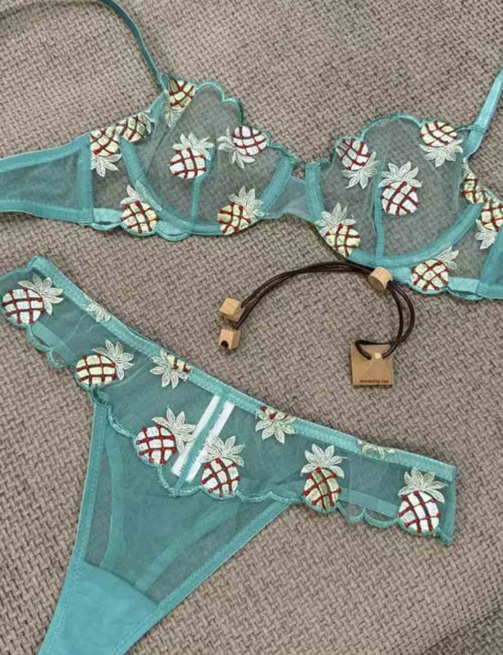 Ladies Floral Embroidery See Through 2PCS Lingerie Set 8W7619