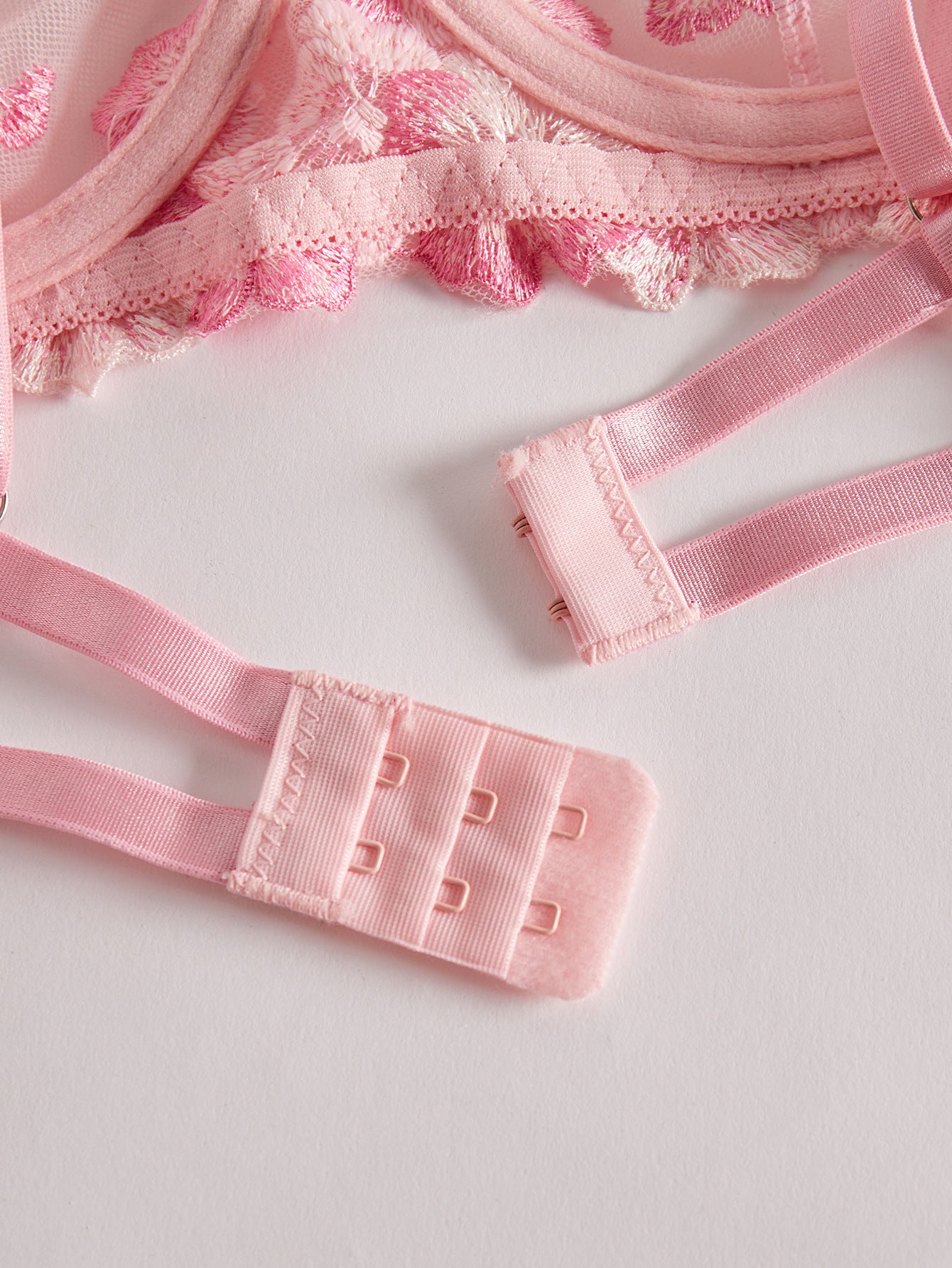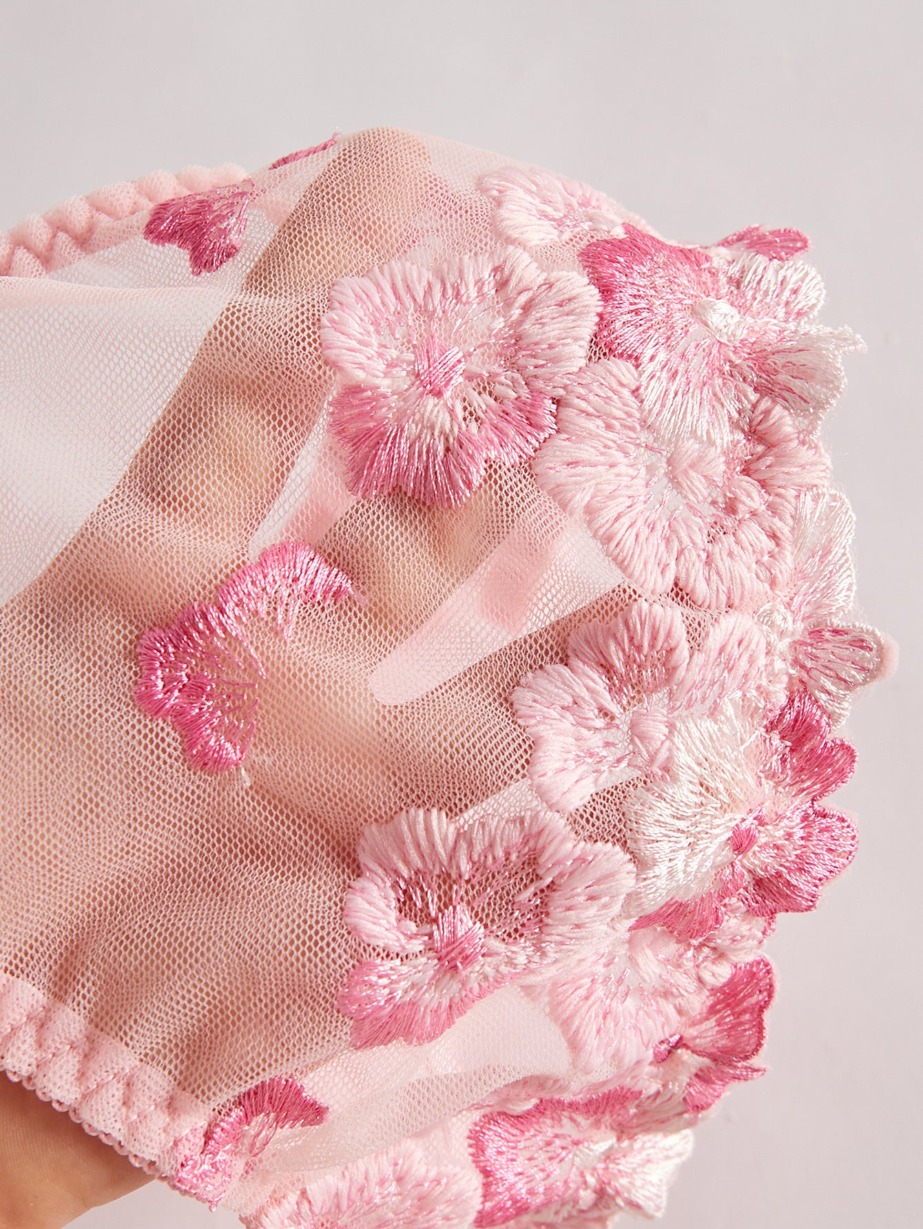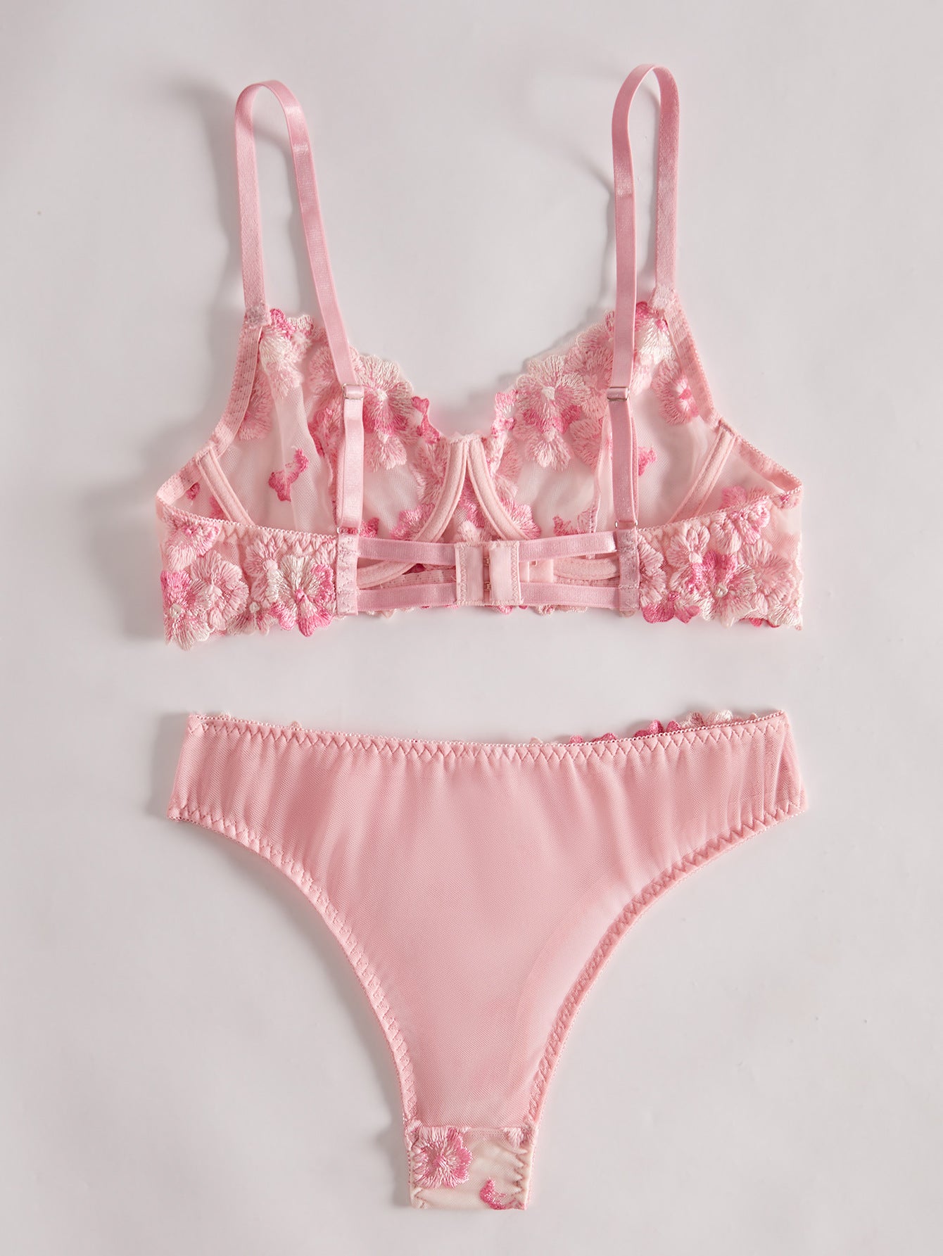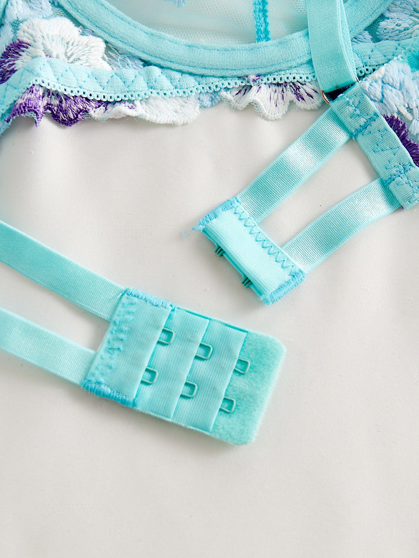 Ladies Floral Embroidery see Through 2PCS Lingerie Set SKLG4122