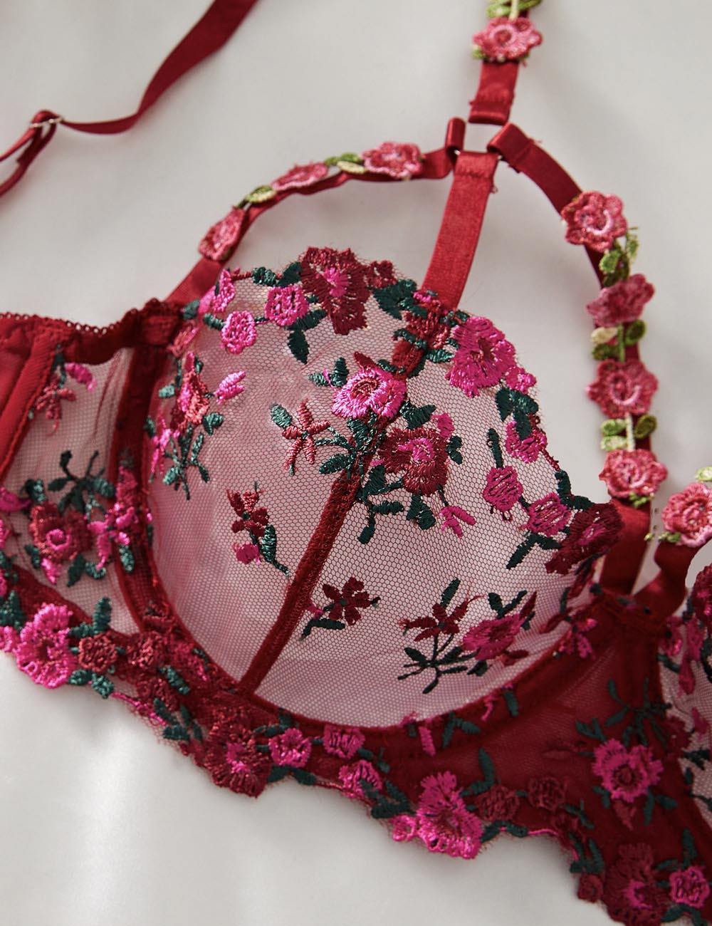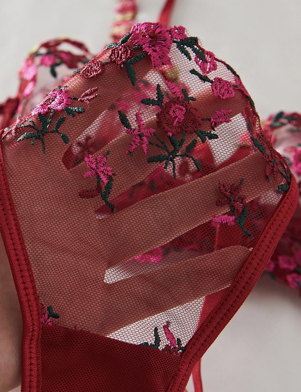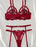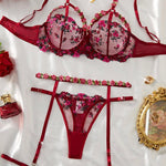 Ladies Floral Embroidery See Through 3PCS Lingerie Set 8XX0170