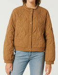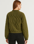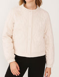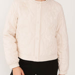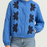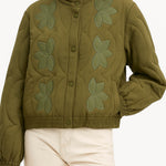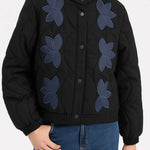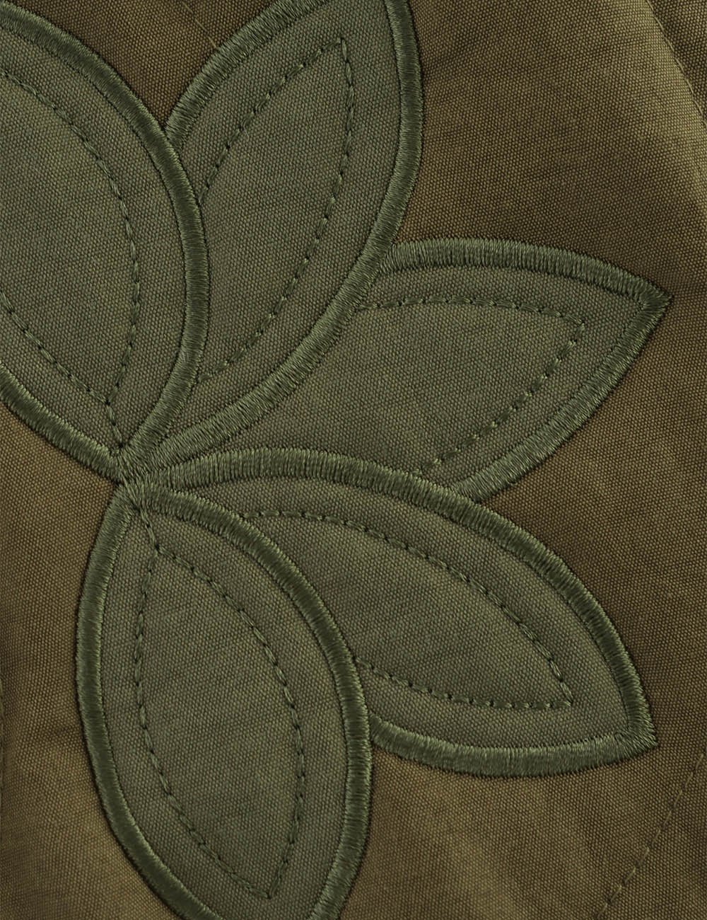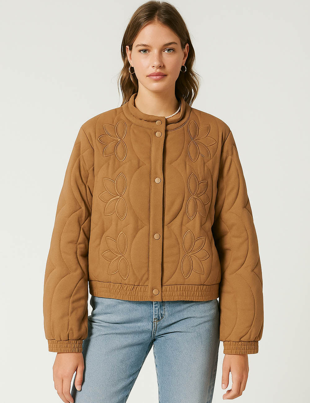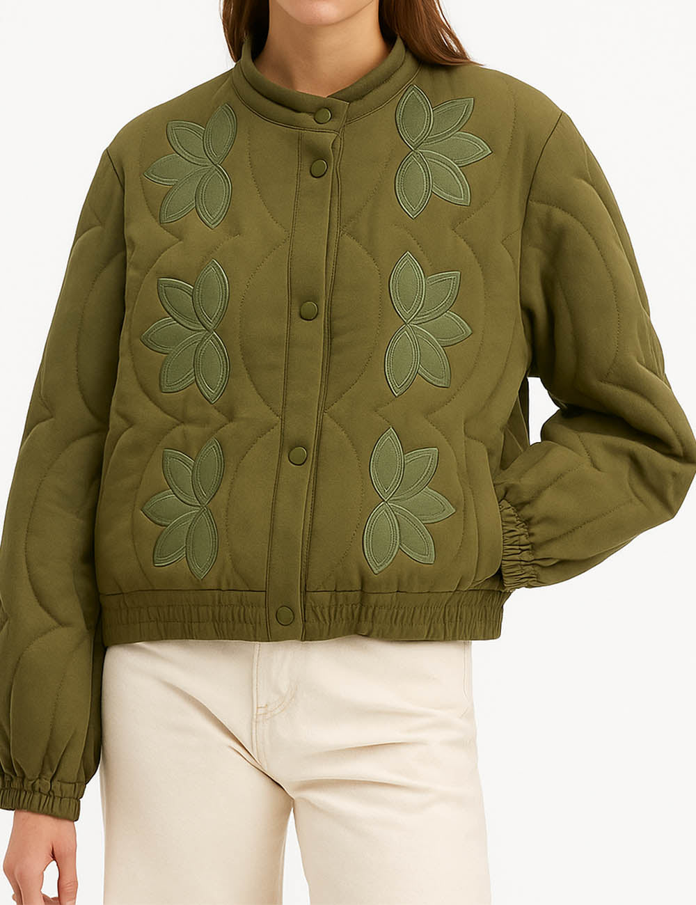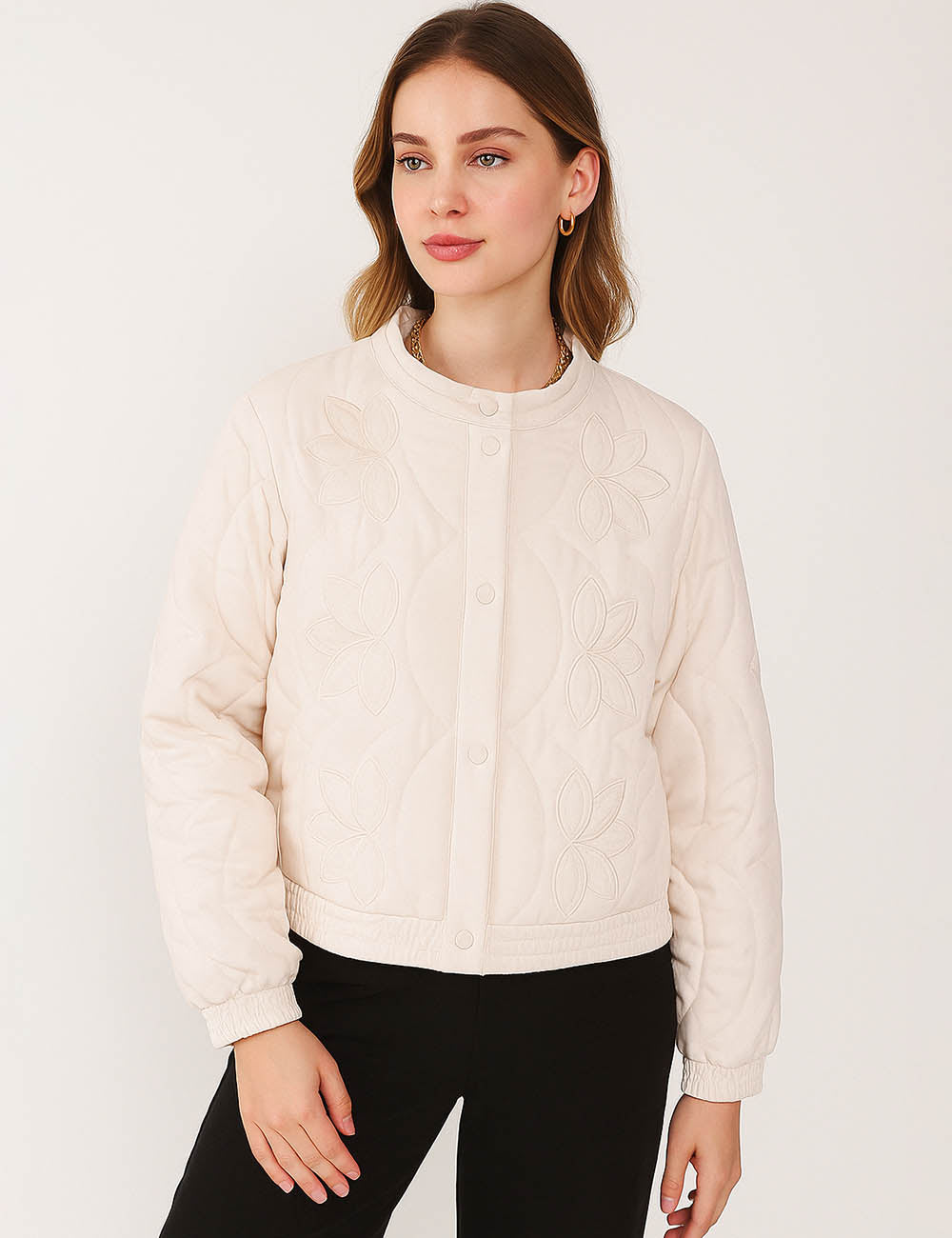 Ladies Floral Embroidery Stand Collar Quilted Cotton Jacket