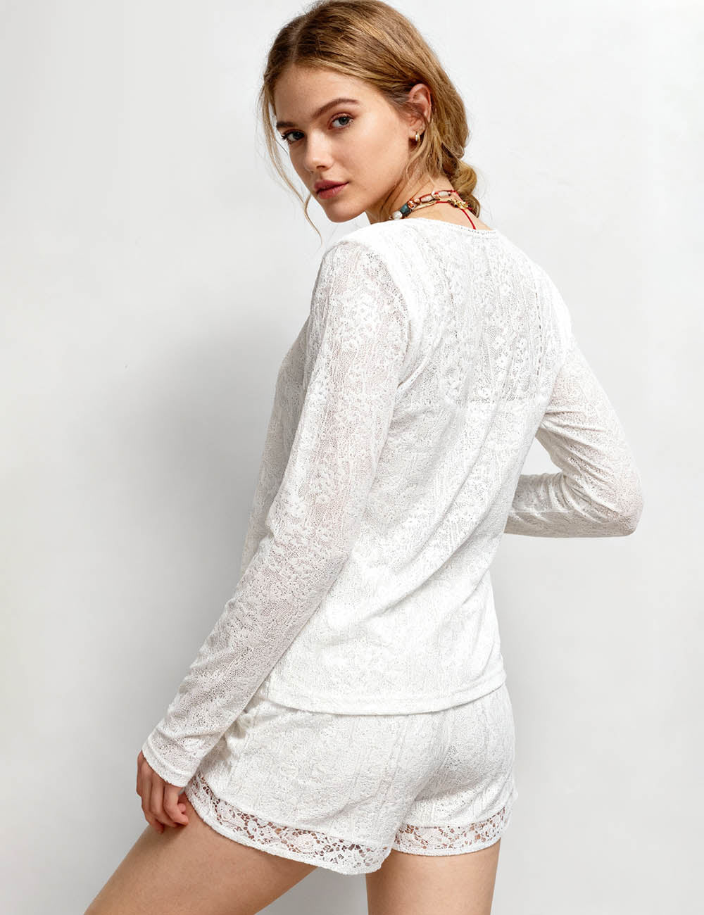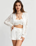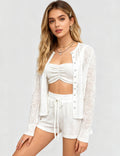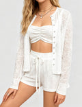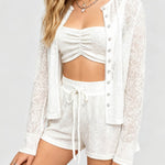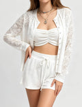 Ladies Floral Jacquard Cardigan Tube Top Drawstring Shorts 3PCS Set