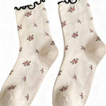 Ladies Floral Jacquard Lettuce Edge Knit Midi Calf Socks