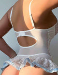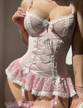 Ladies Floral Lace Corsets String Tie Leg Straps Chemise Set 8MY96617