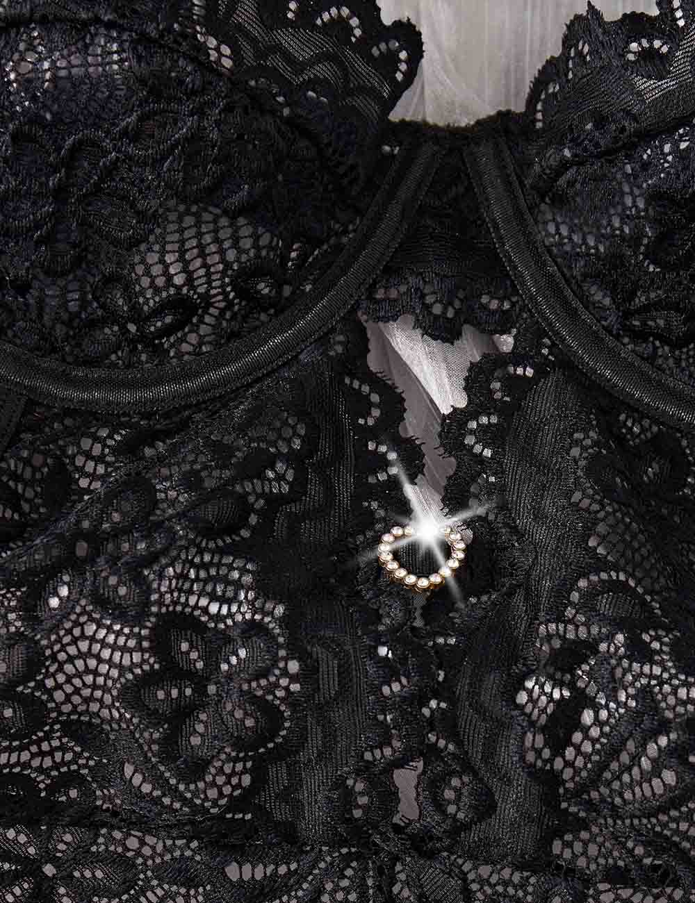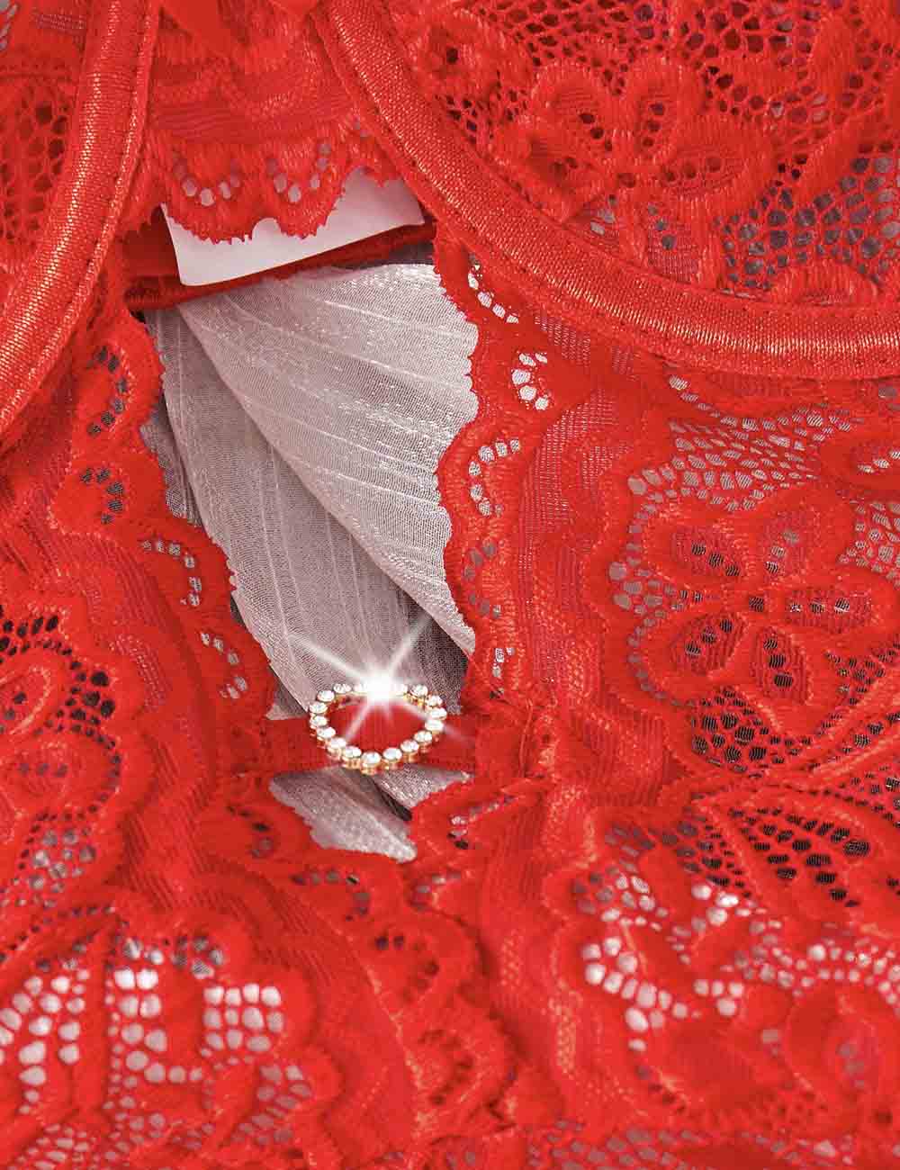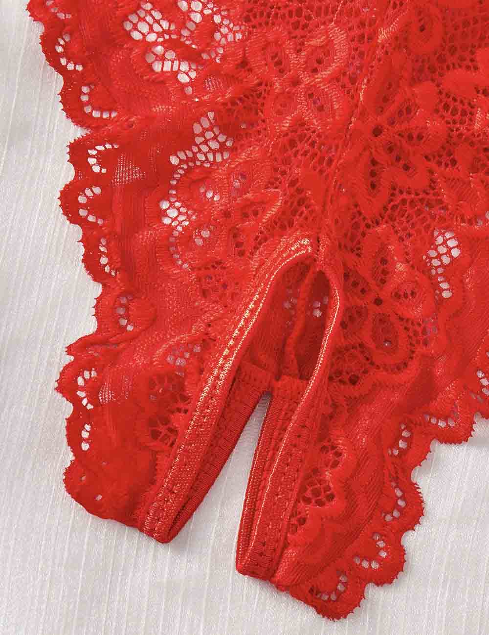 Ladies Floral Lace Hollow Out Spicy Teddy Set 8HF4185