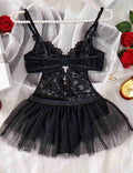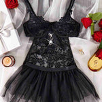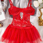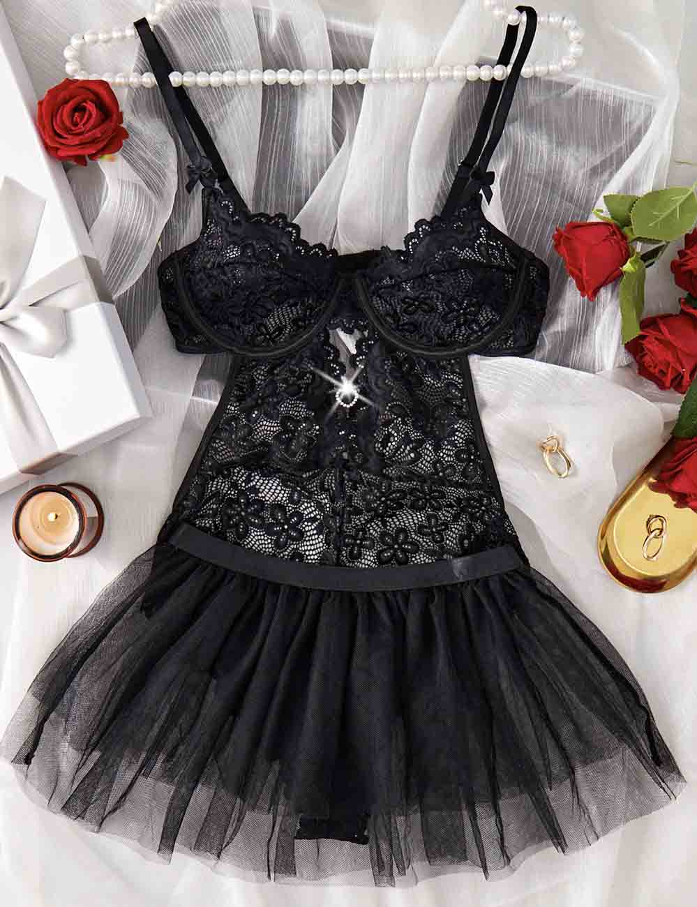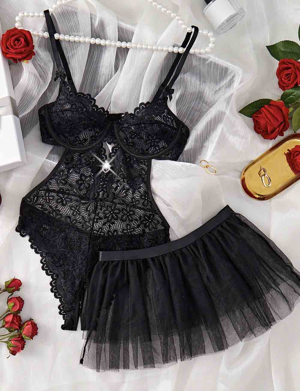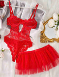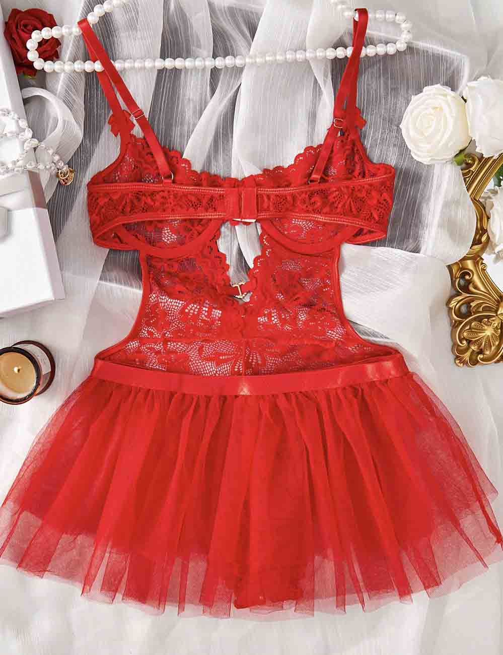 Ladies Floral Lace Hollow Out Spicy Teddy Set 8HF4185