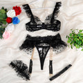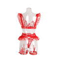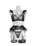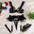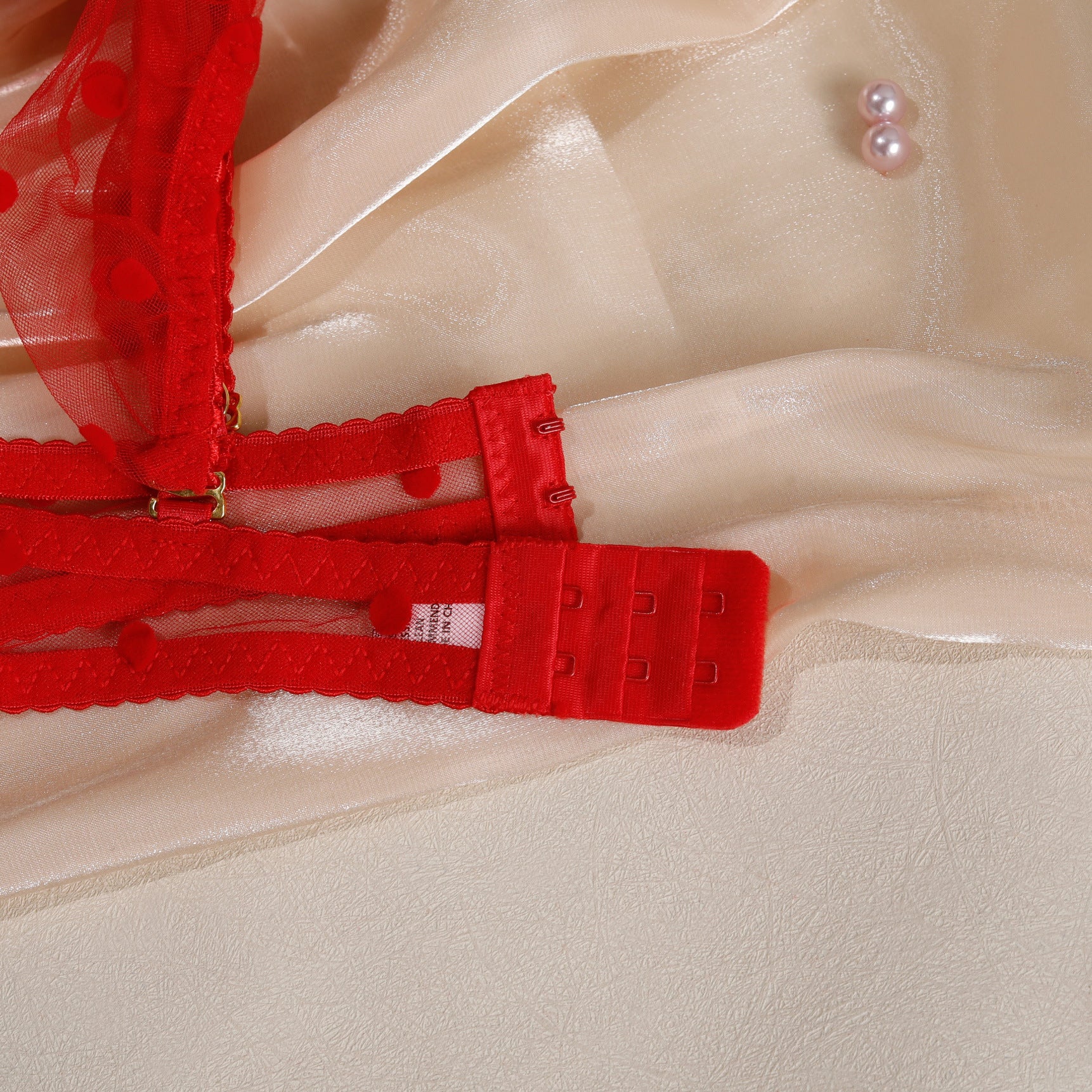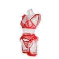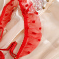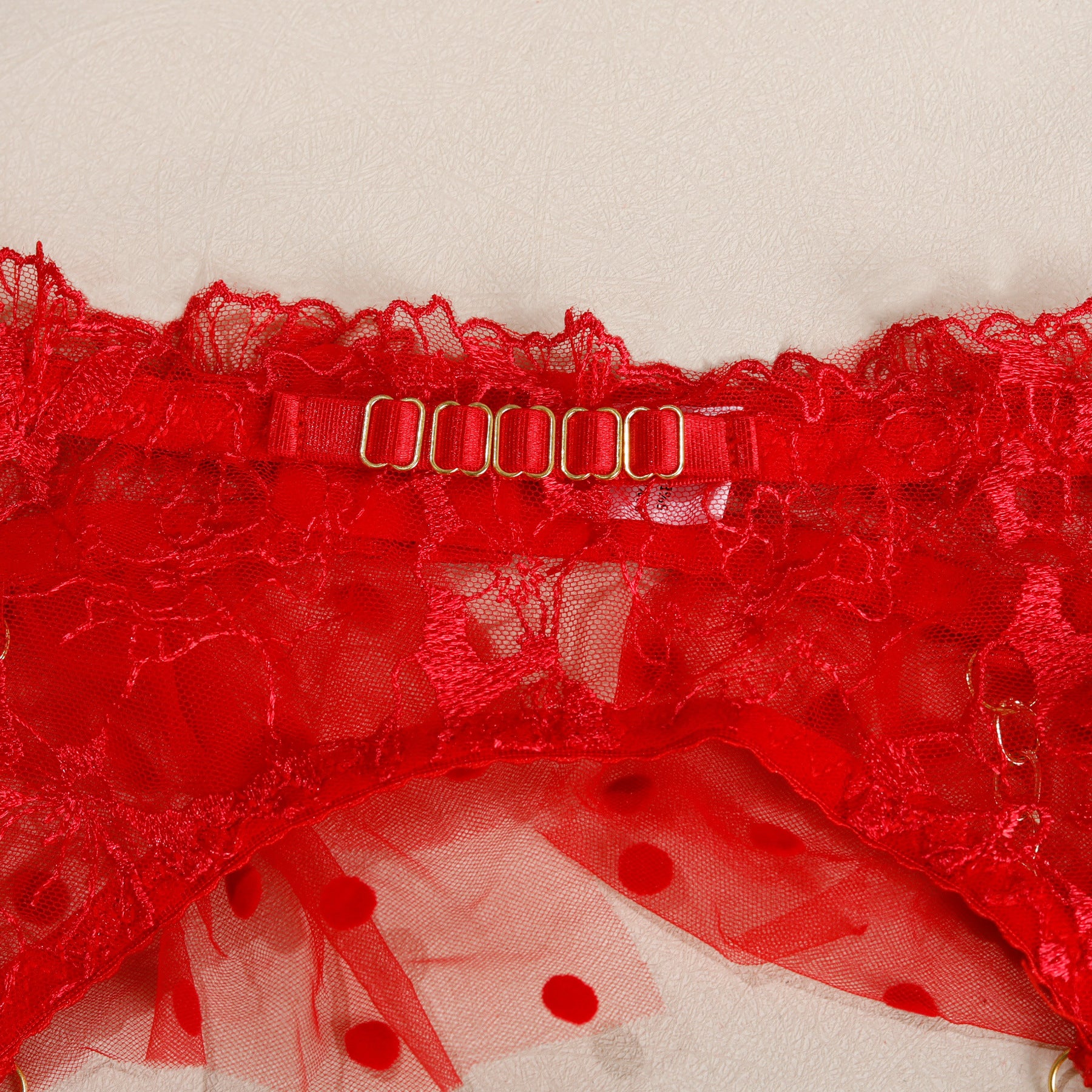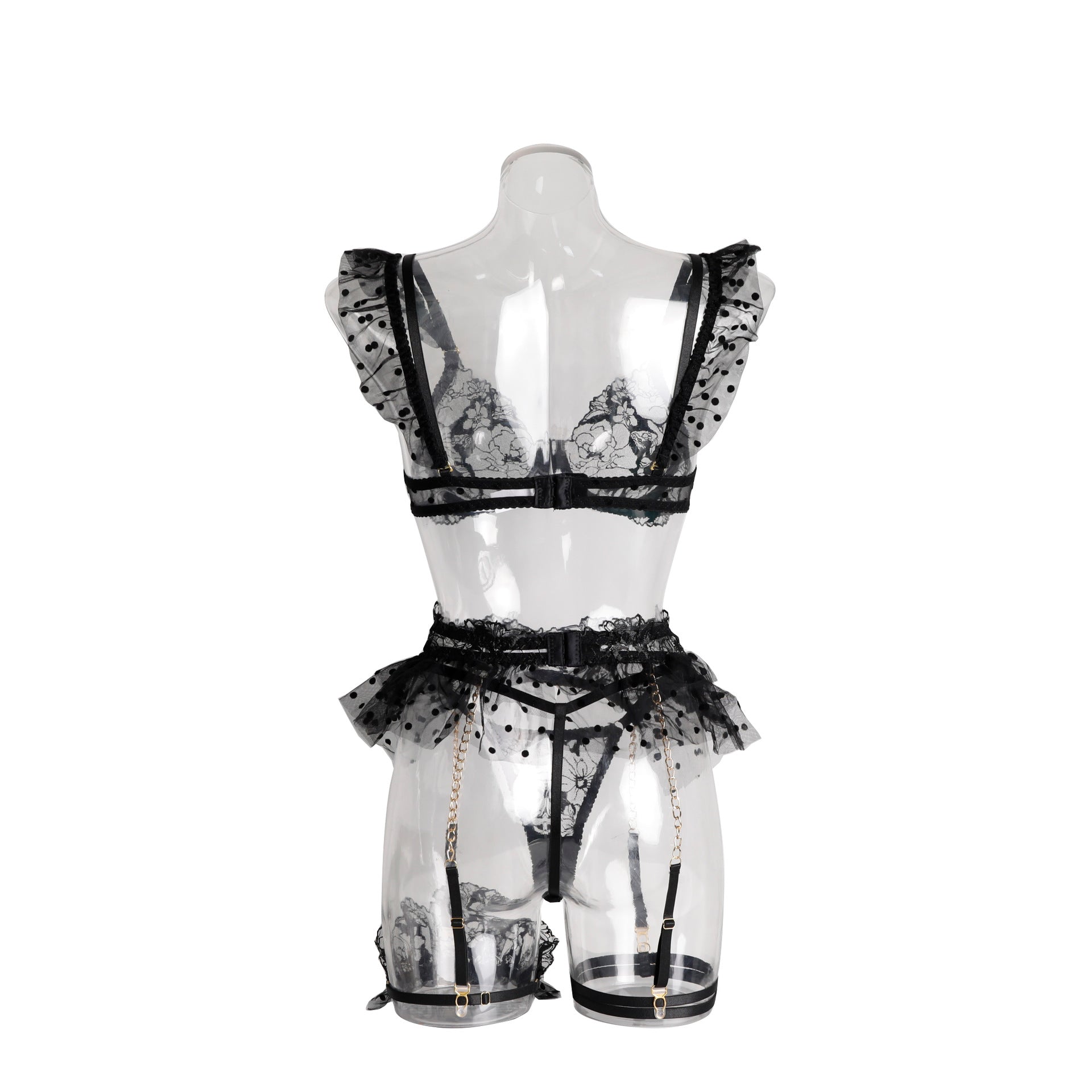 Ladies Floral Lace Polka Mesh 3PCS Lingeire Set SKLG4085