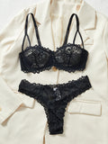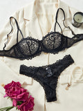 Ladies Floral Lace See Sheer Lingerie Set SKLG4151