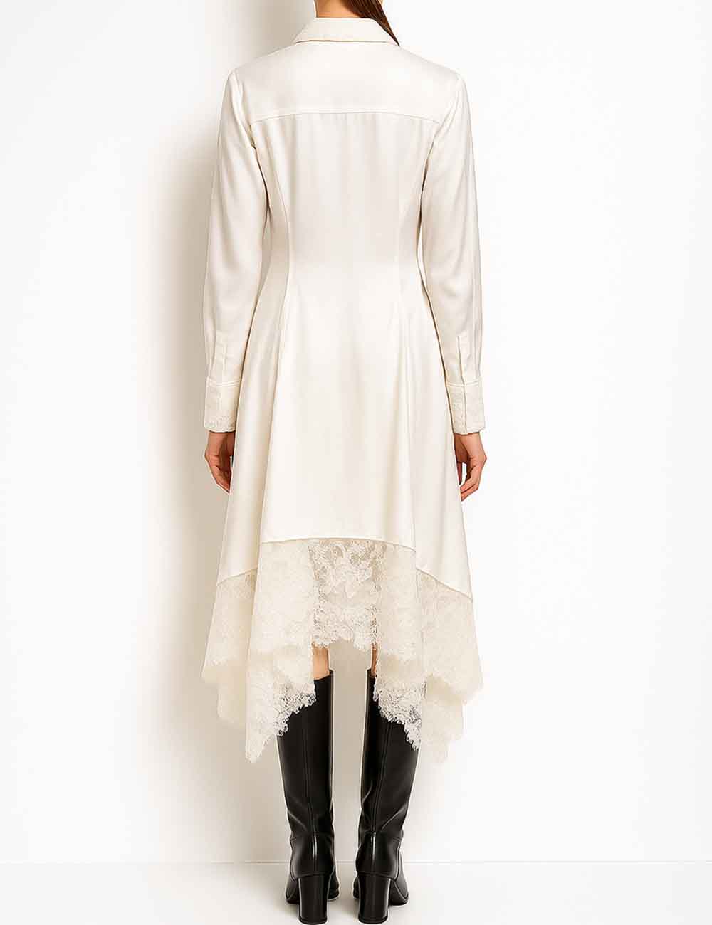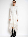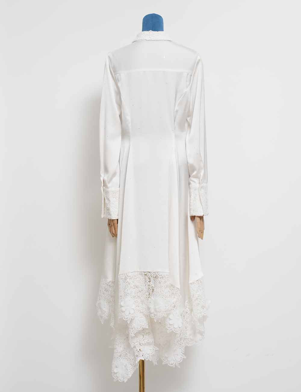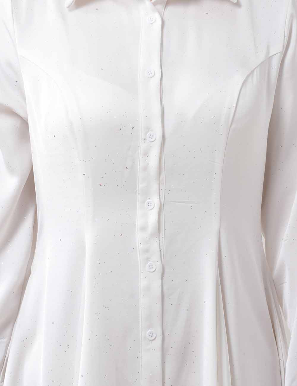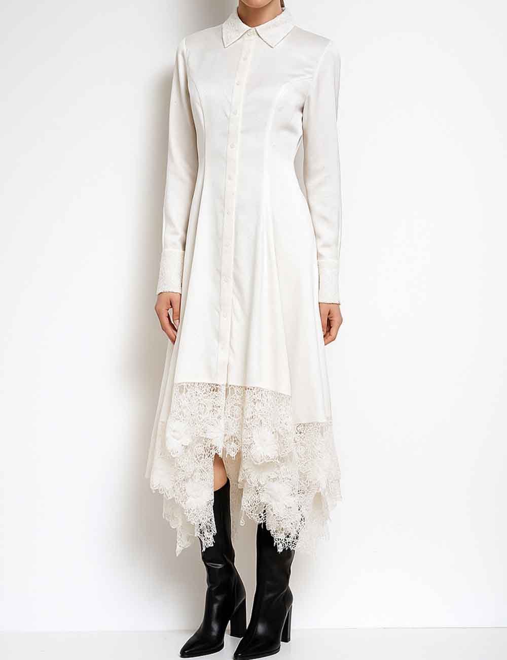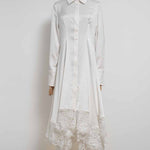 Ladies Floral Lace Sequins Long Sleeves Maxi Shirt Dress