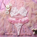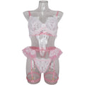 Ladies Floral Lace Skirt Garter Belt 3PCS Lingerie Set SKLG4084