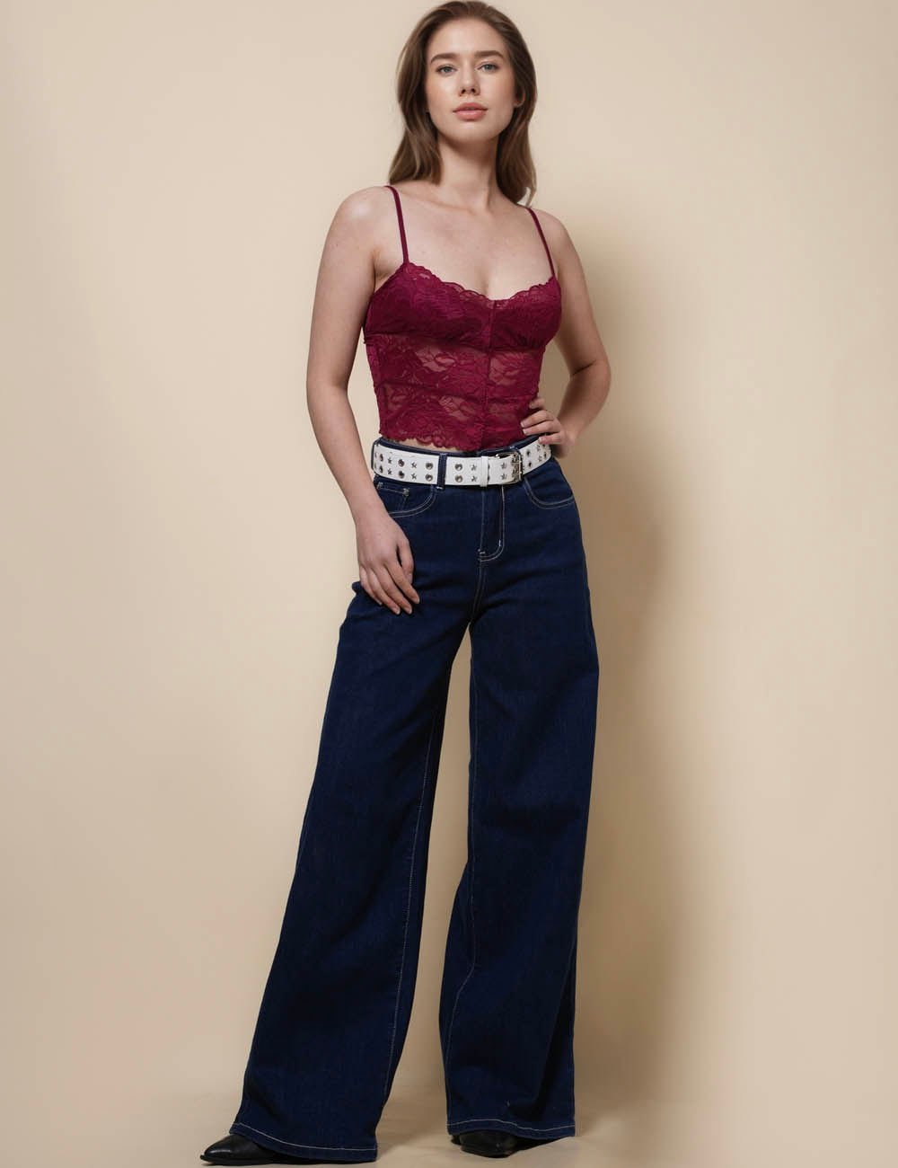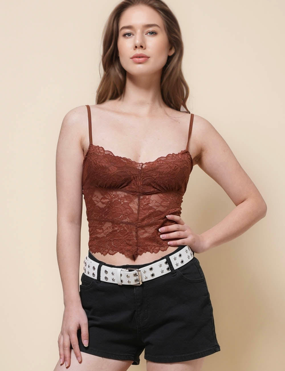 Ladies Floral Lace Strap Shoulder Basic Cami SKT41298