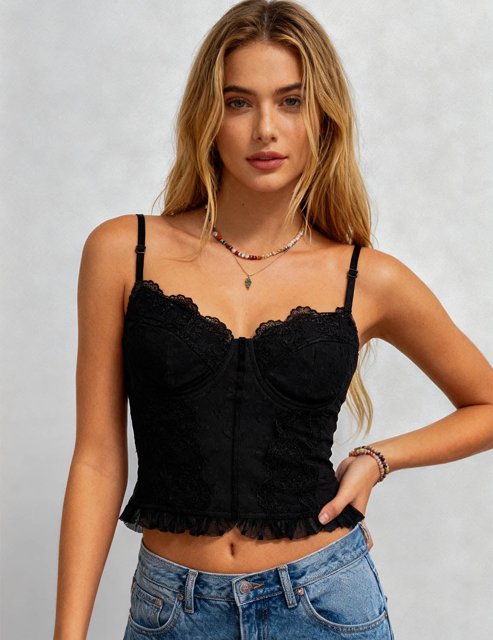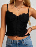 Ladies Floral Lace Top Dot Jacquard Padded Cami Top