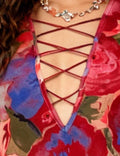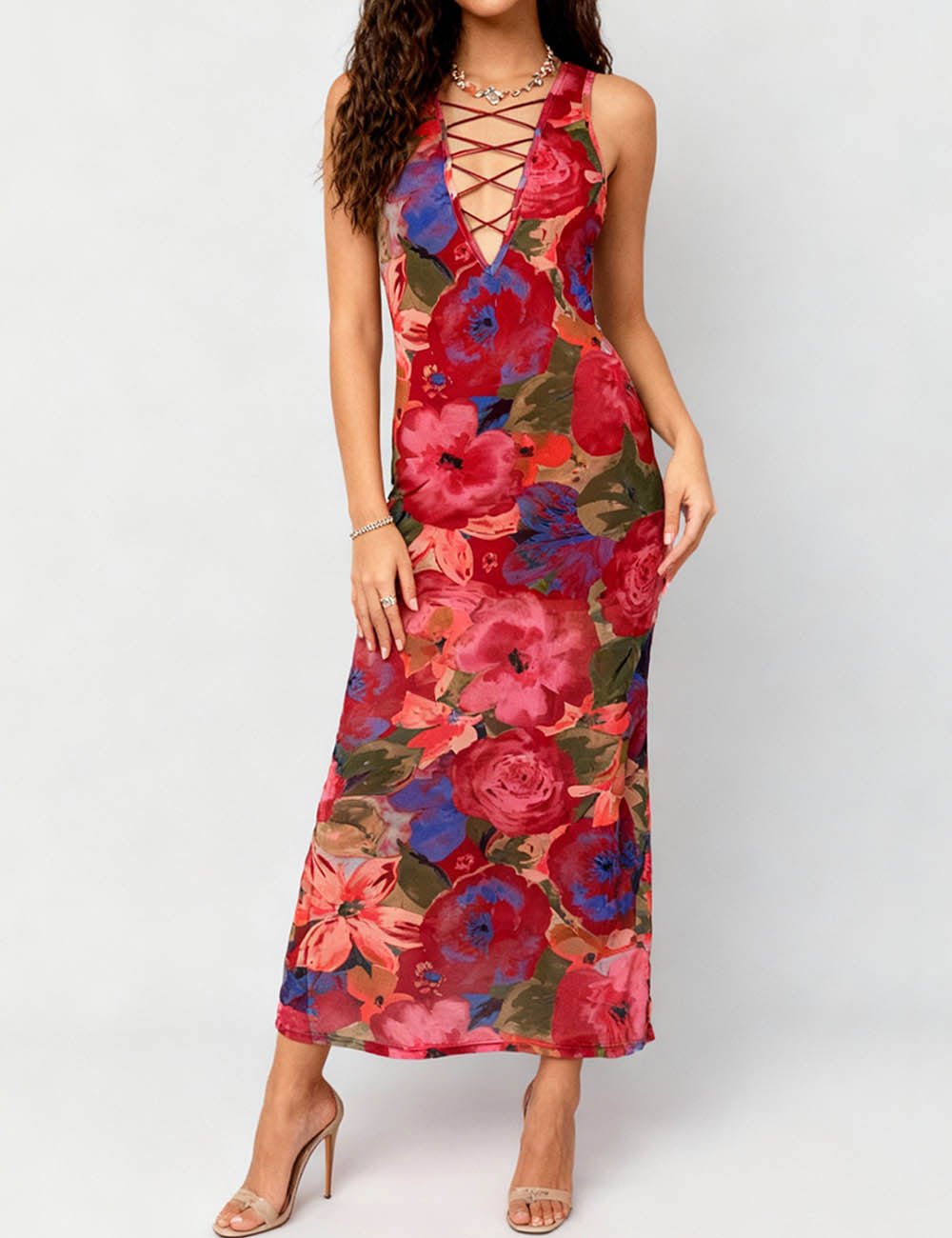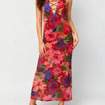 Ladies Floral Lace-Up Front Sleeveless Bodycon Maxi Dress