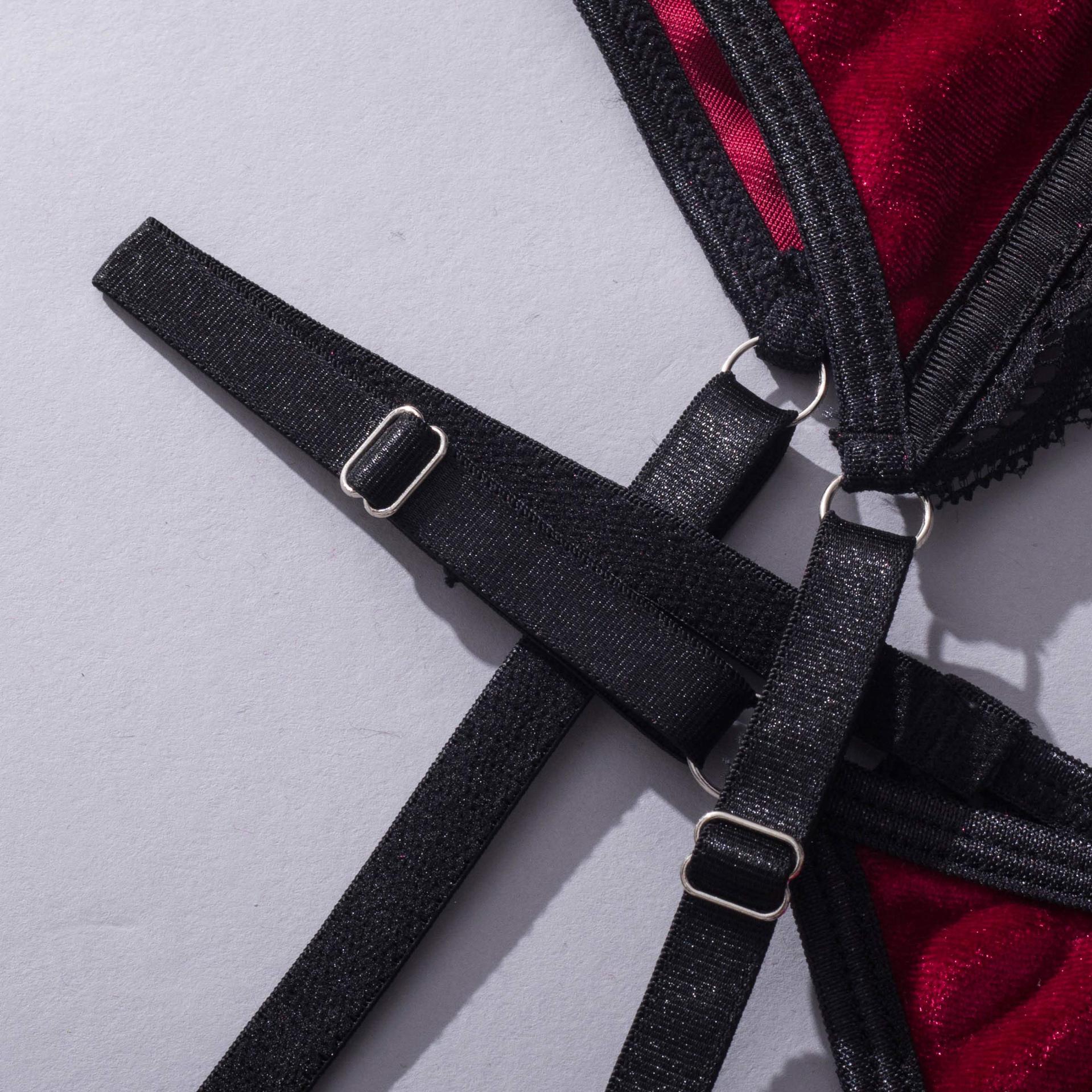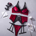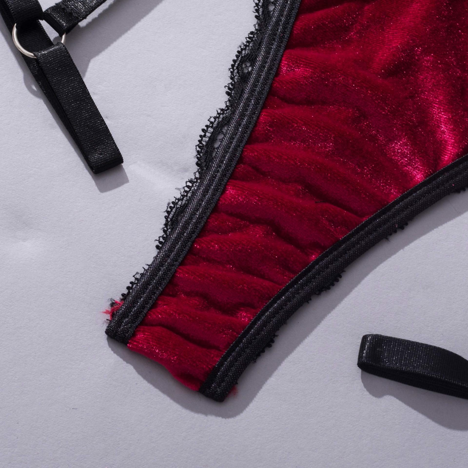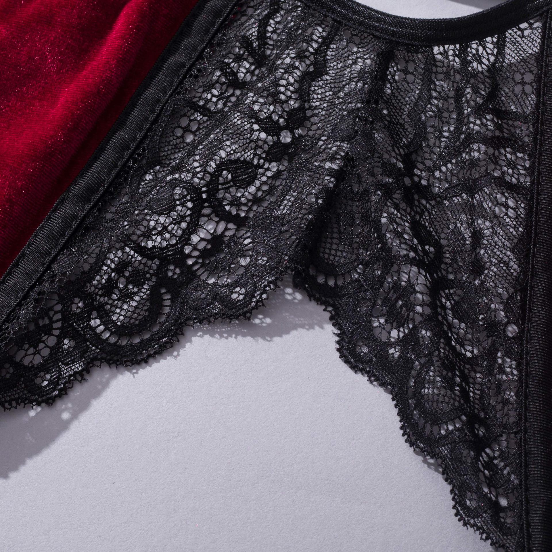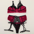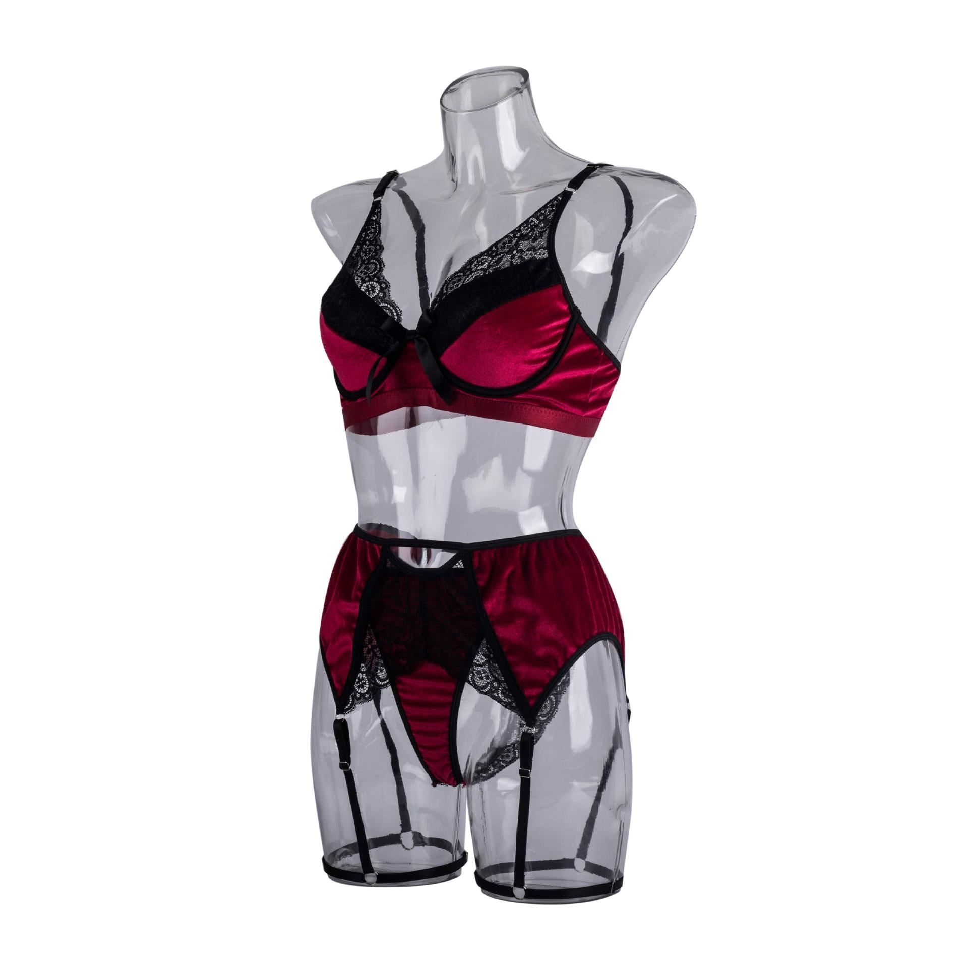 Ladies Floral Lace Velvert 3PCS Lingerie Set SKLG4088