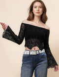 Ladies Floral One Shoulder Flared Sleeves Top SKT41033