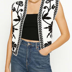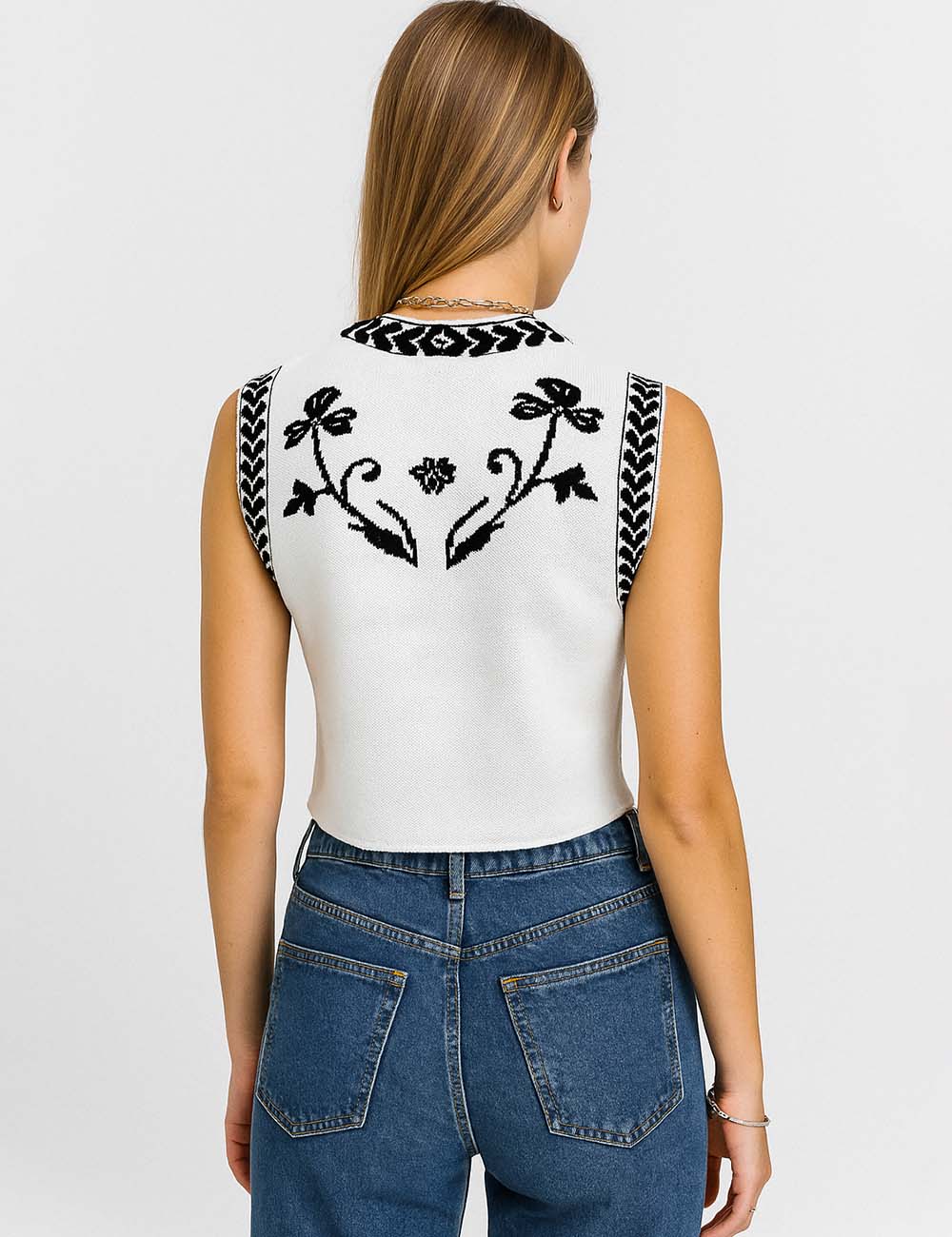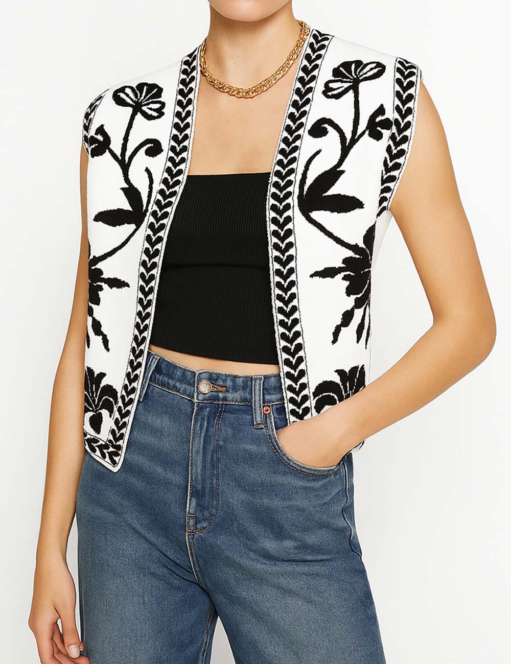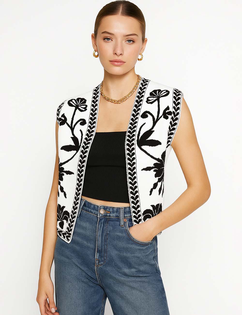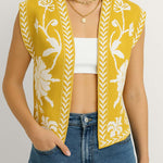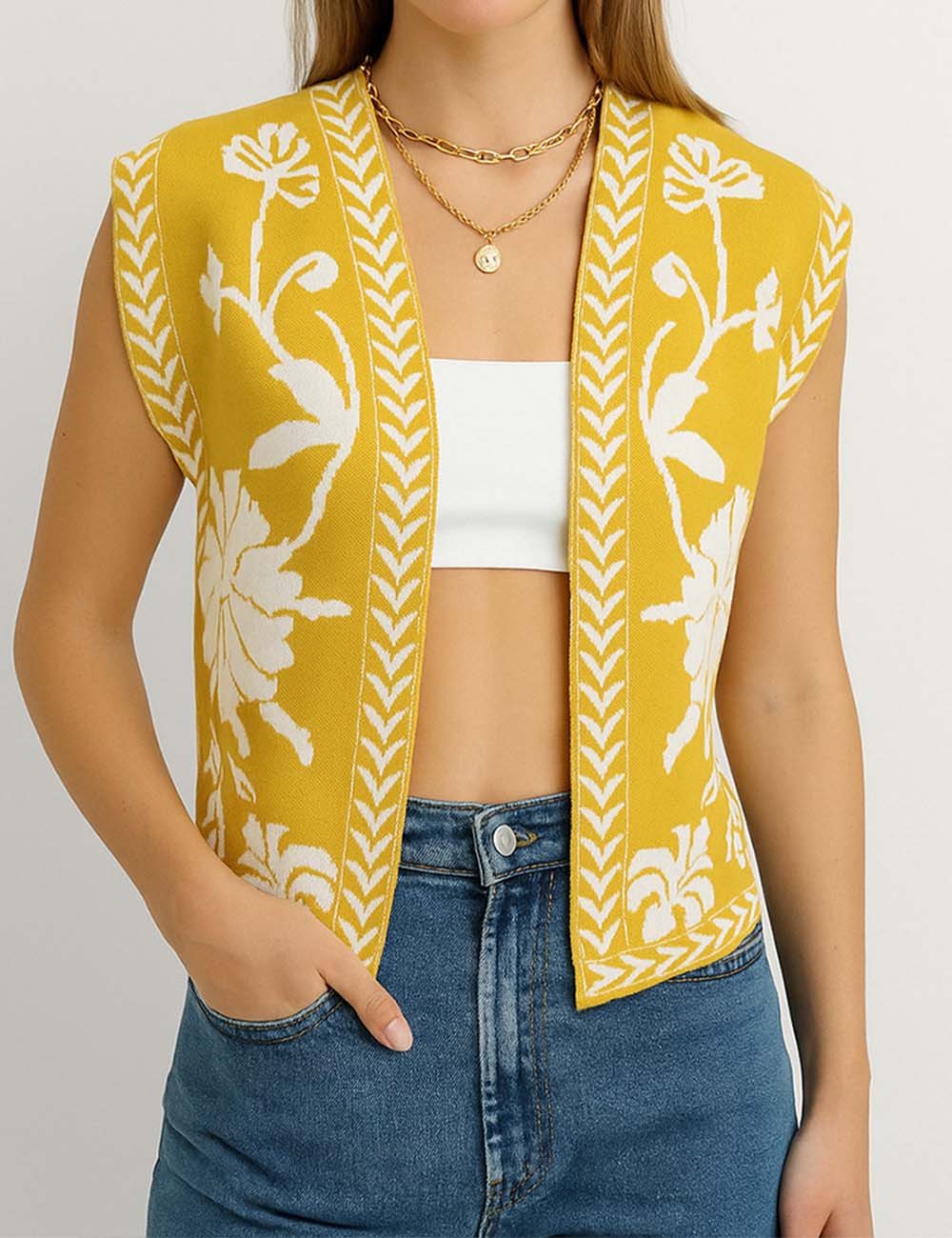 Ladies Floral Pattern Open Front Sleeveless Knit Vest
