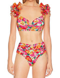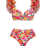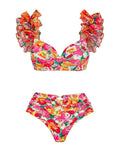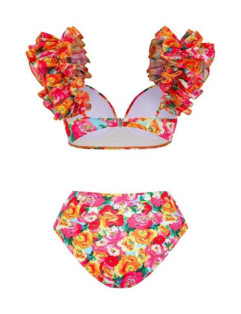 Ladies Floral Print 2PCS Bikini Set with Salong