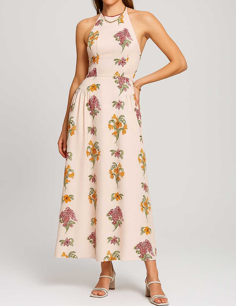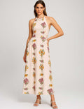 Ladies Floral Print Halter Sleeveless Maxi Dress