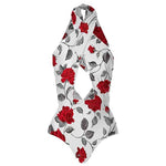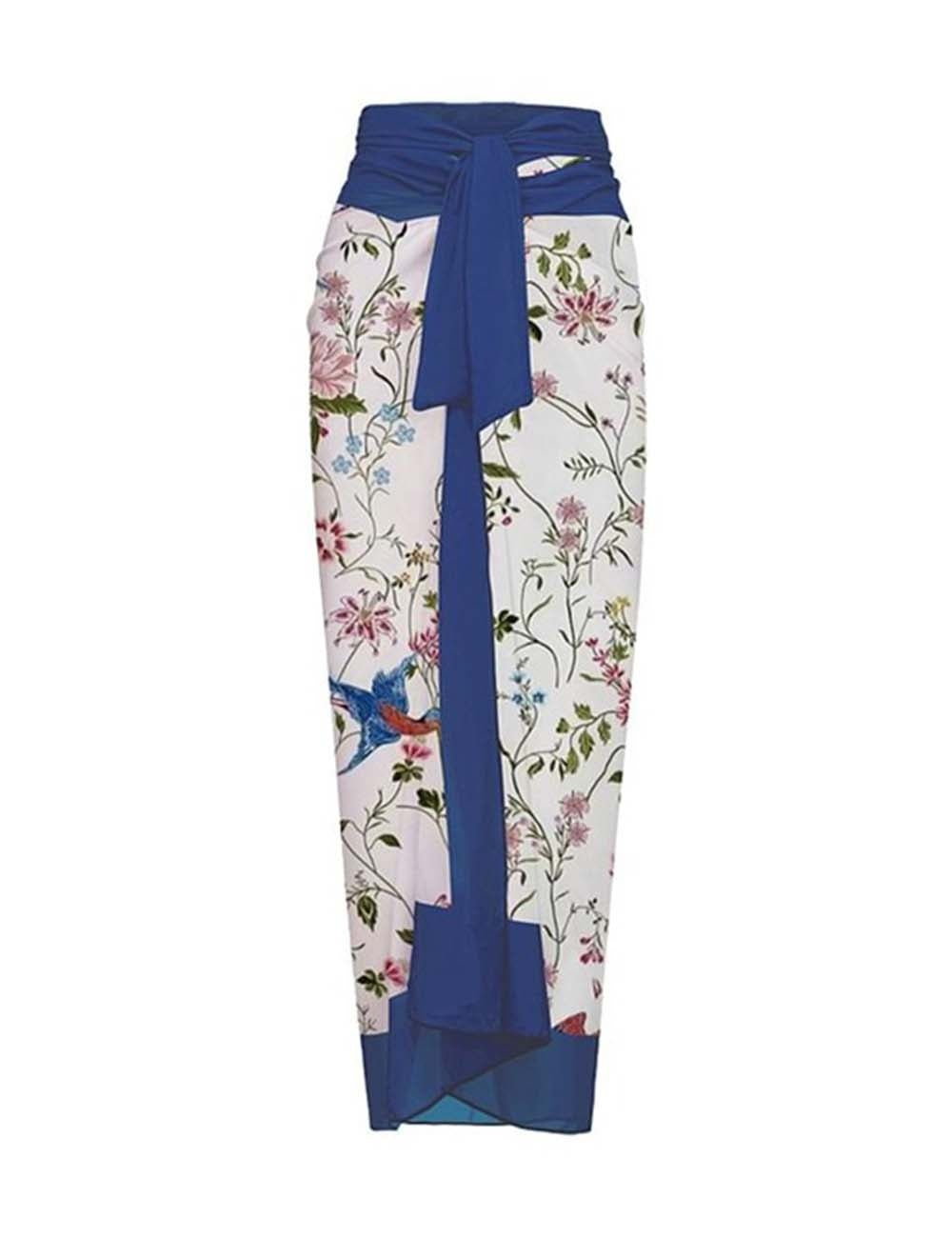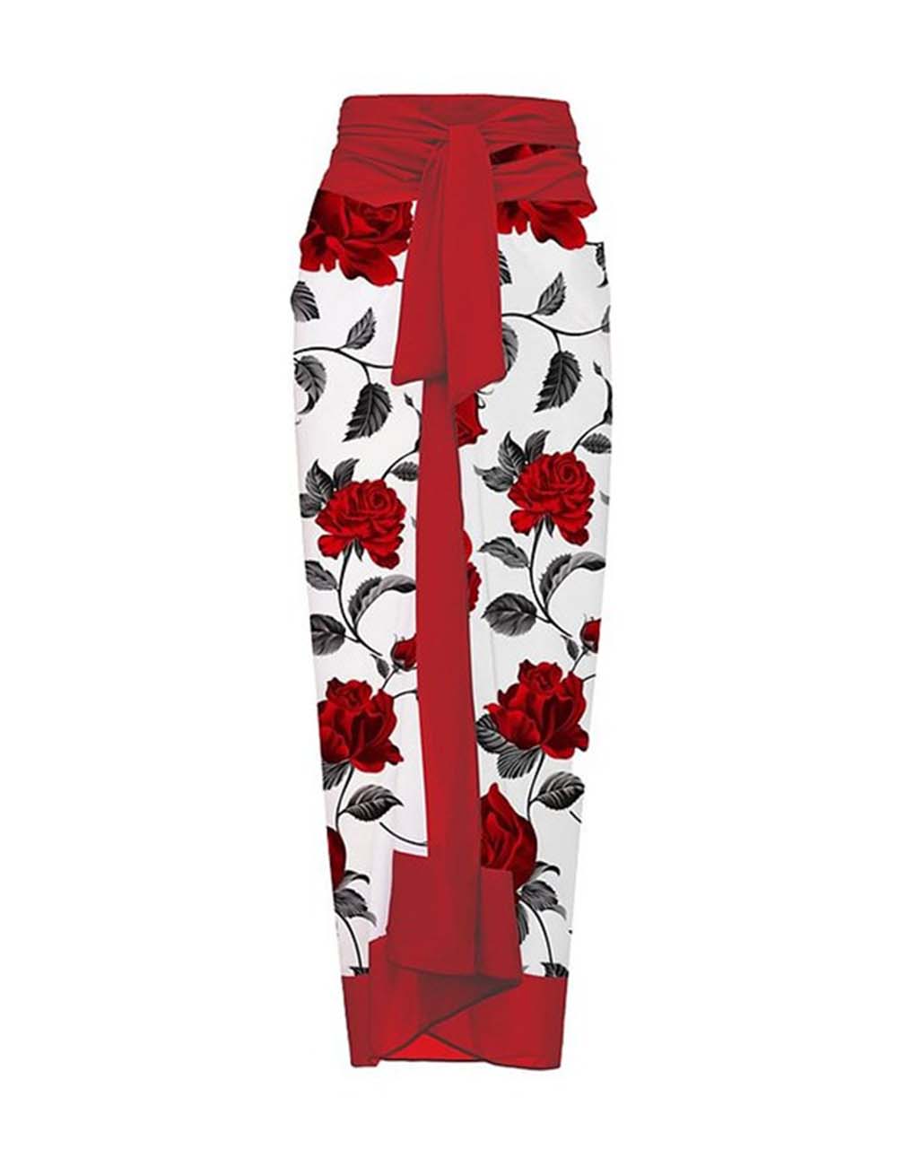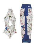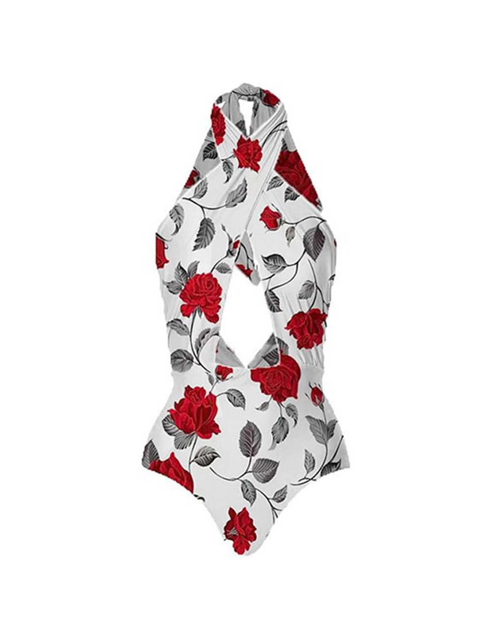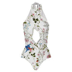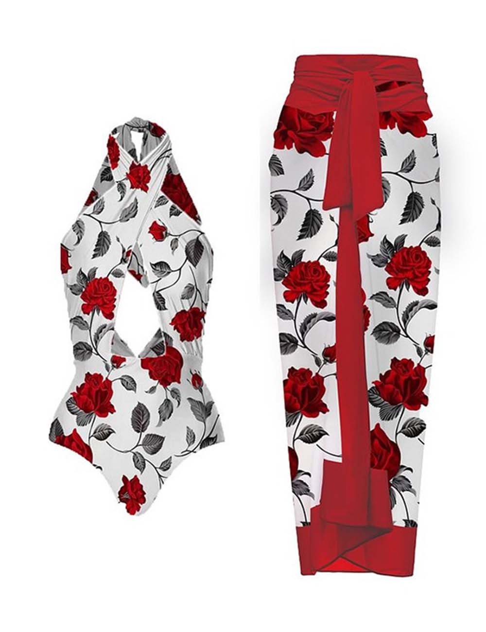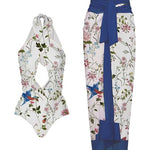 Ladies Floral Print Hollow Out One Piece Swimwear with Salong