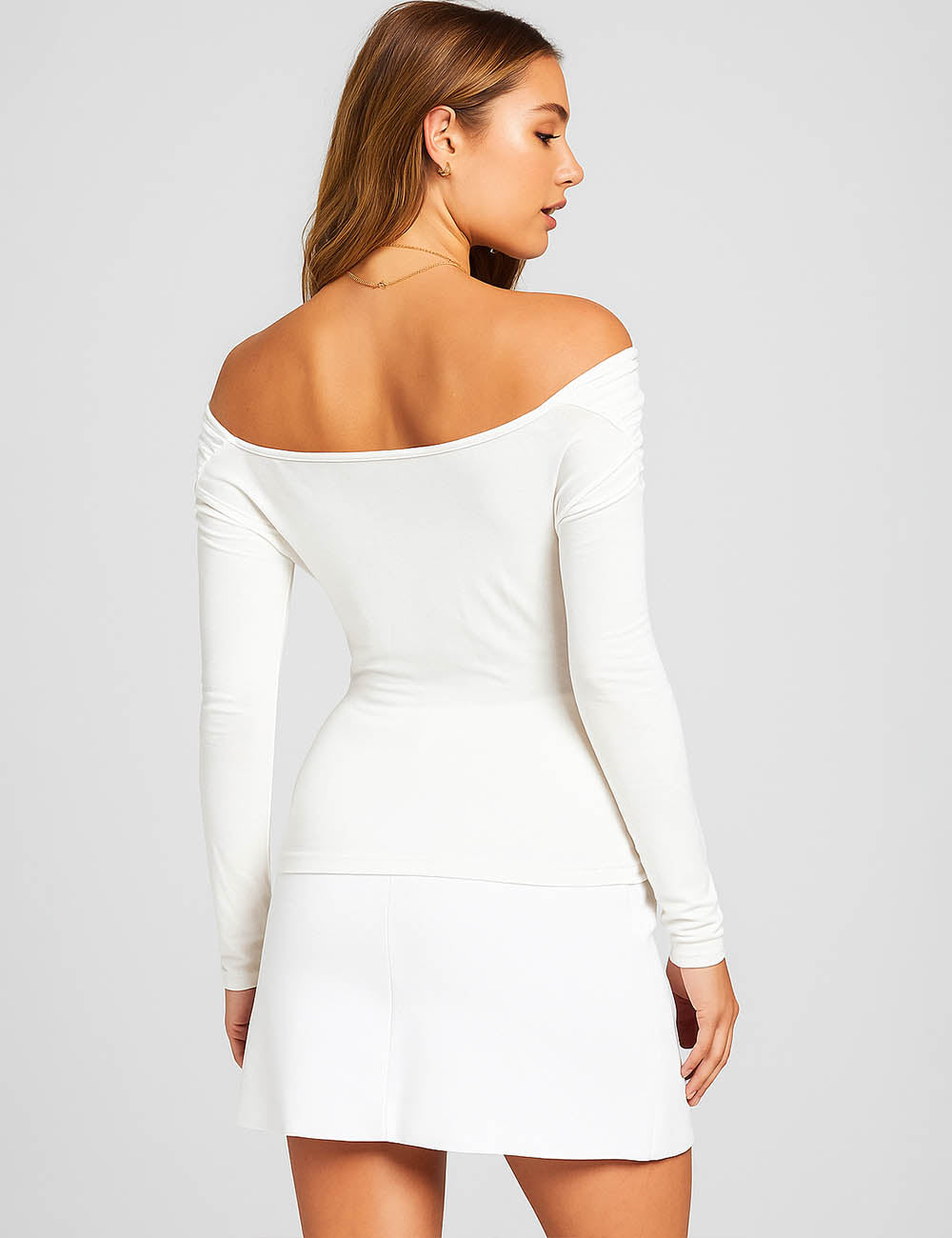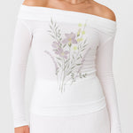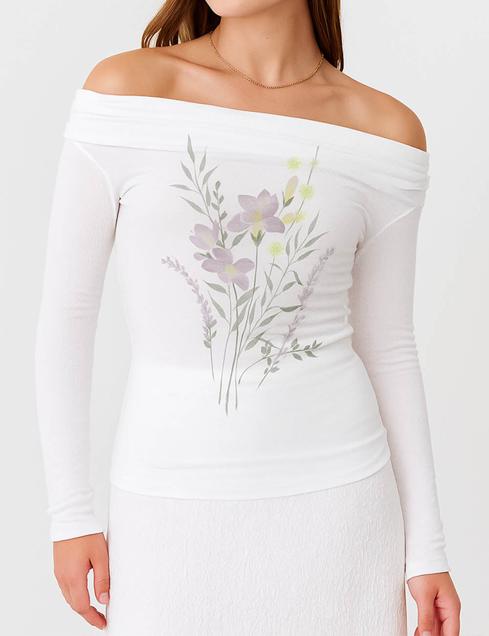 Ladies Floral Print Off-Shoulder Long Sleeves Tee