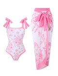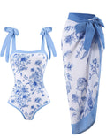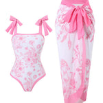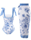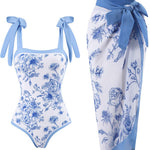 Ladies Floral Print One Piece Swimsuit with Wrap Tie Sarong