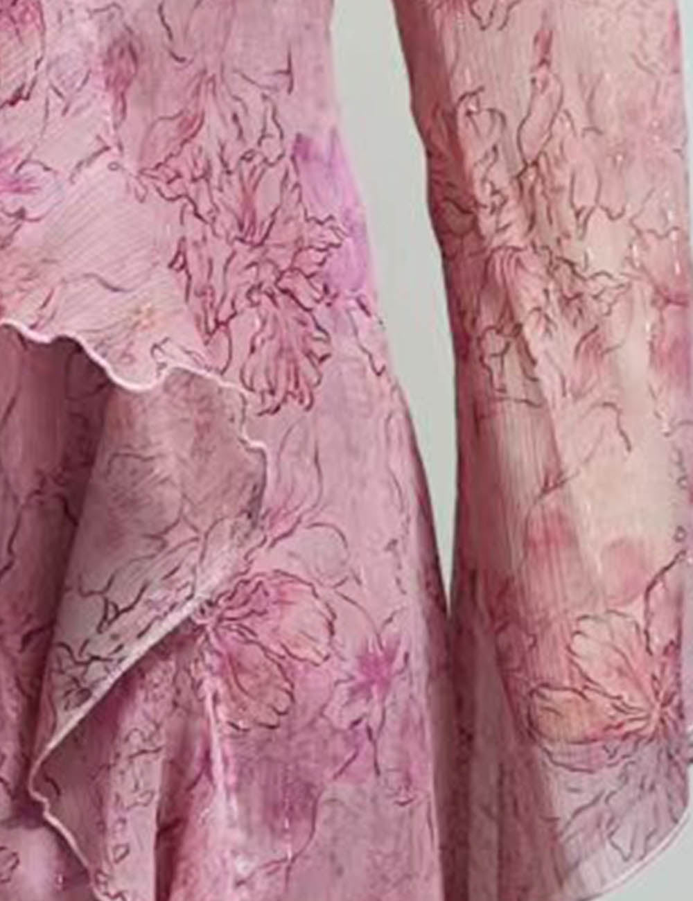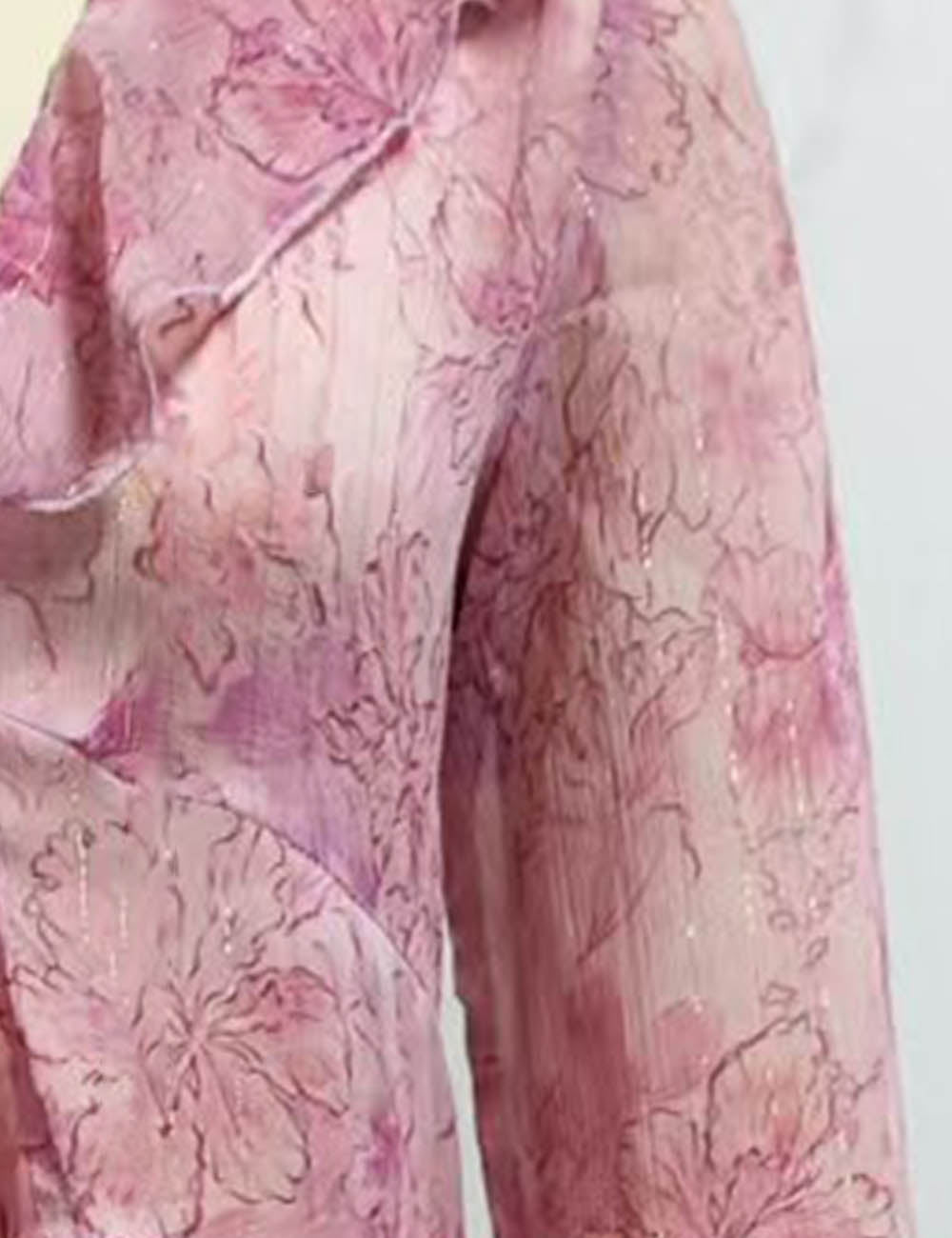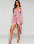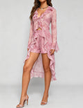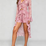 Ladies Floral Print Ruffle Lace-Up Cardigan & Shorts Set-