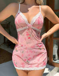 Ladies Floral Print See Through Chemise Set 8HF4094