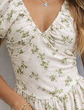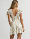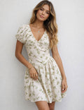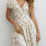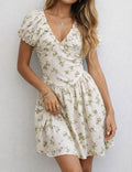 Ladies Floral Print V-Neck Short Sleeves Mini Dress