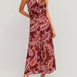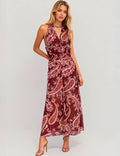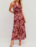 Ladies Floral Print V-Neck Sleeveless Ruched Maxi Dress