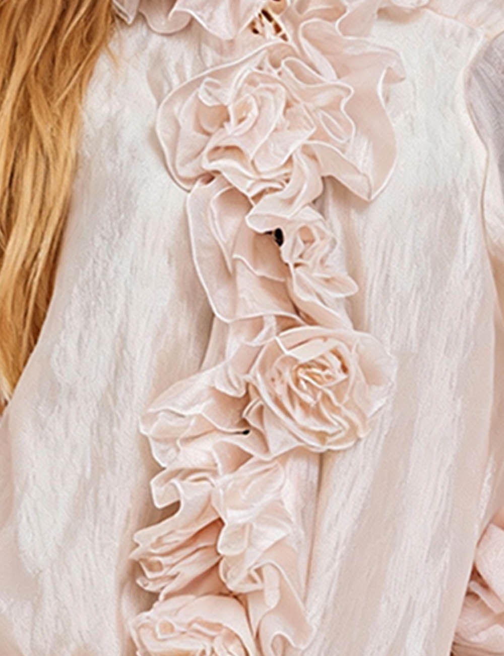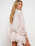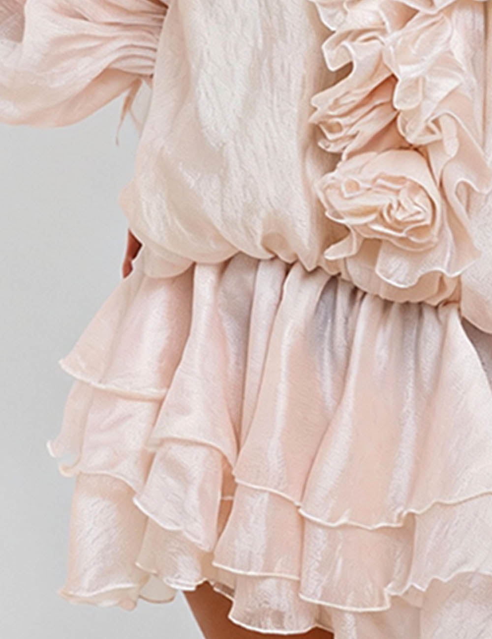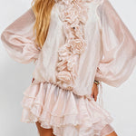 Ladies Floral Ruffle Tie Neck Sheer Chiffon Tiered Mini Dress